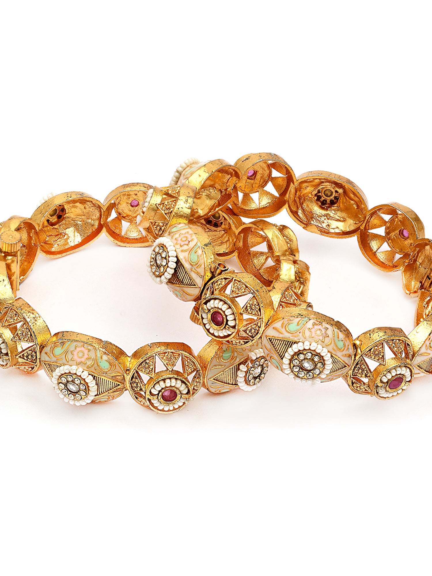 KARATCART Gold-Plated Multicolor Meenakari Floral Rajwadi Bangles for Women
