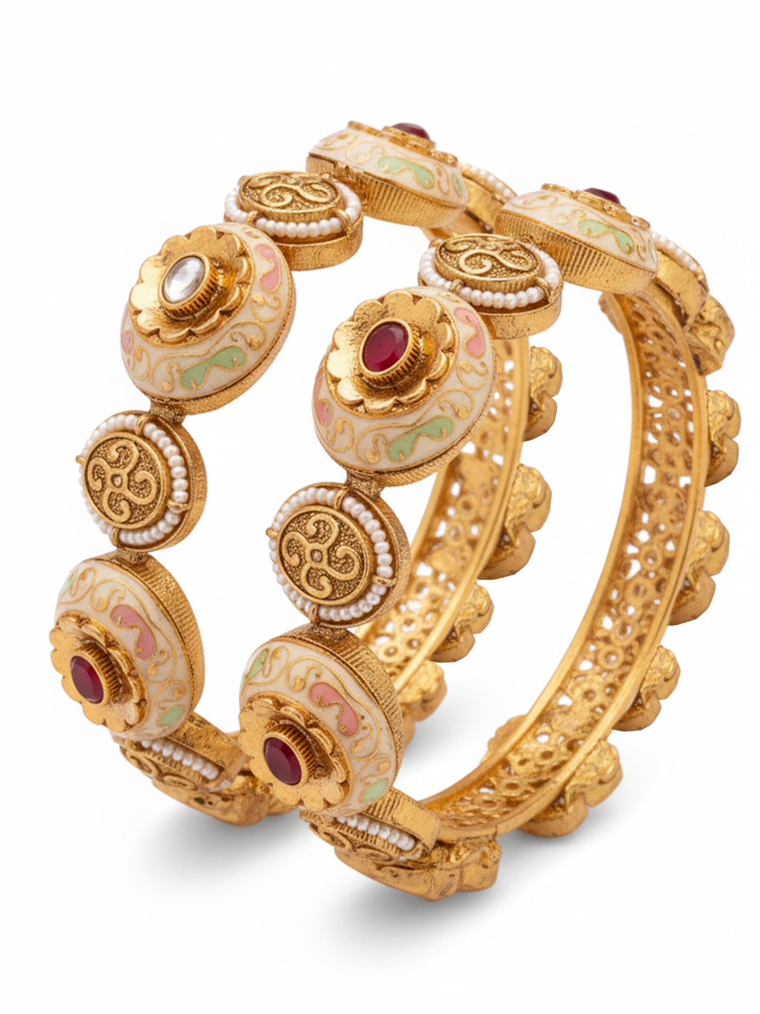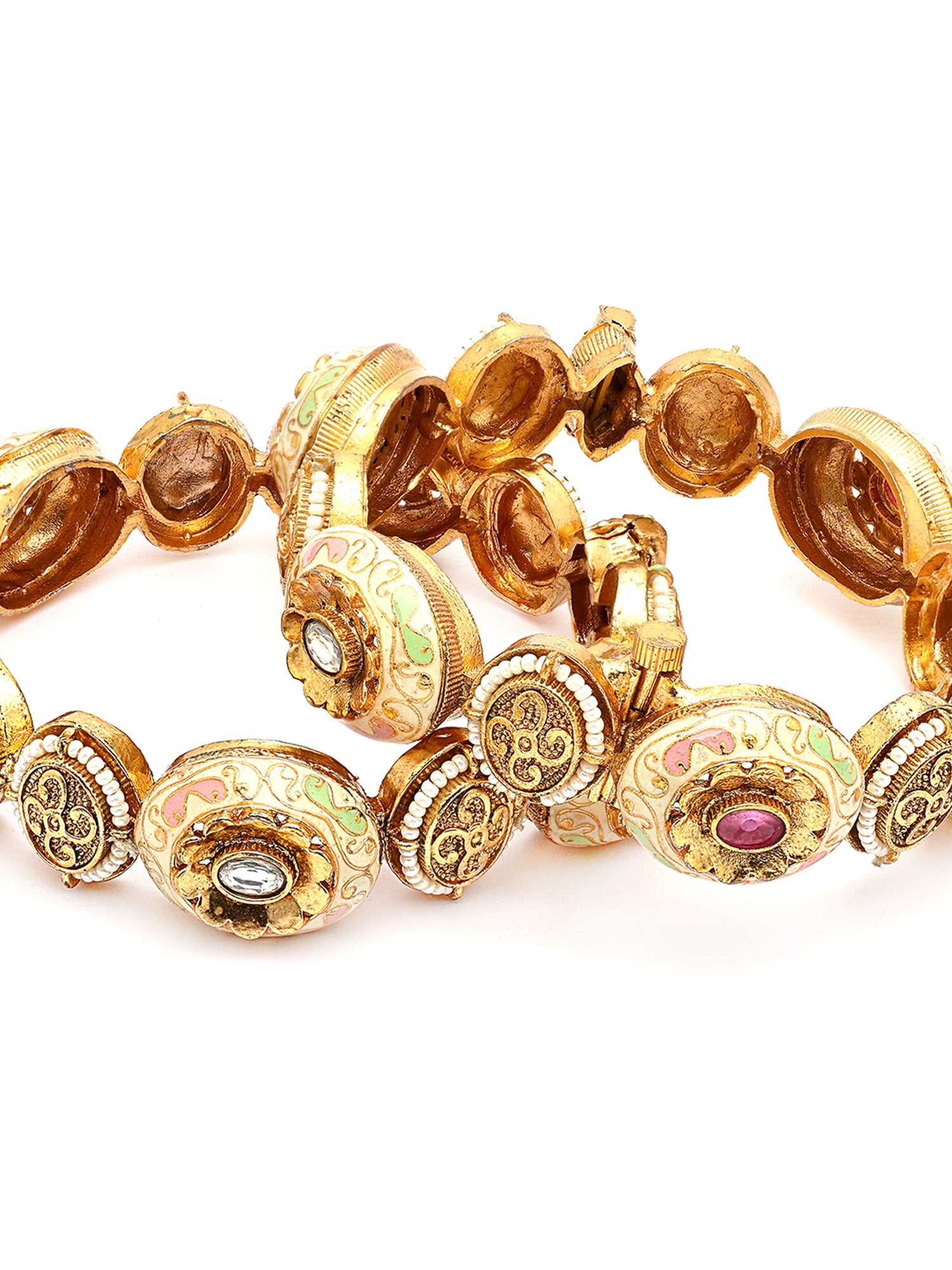 KARATCART Elegant Gold-Plated Floral Enamel Work Designer Bangles for Women