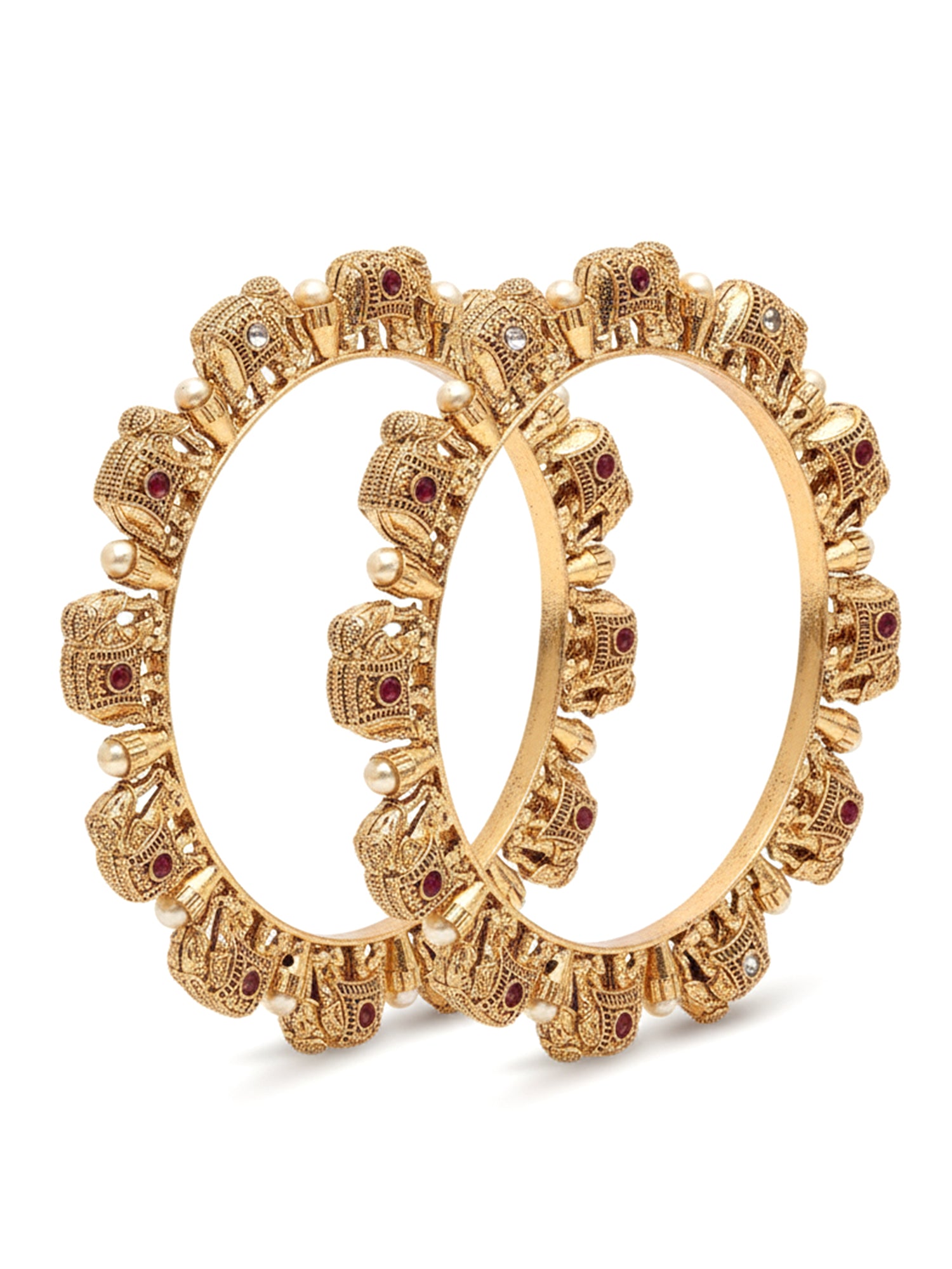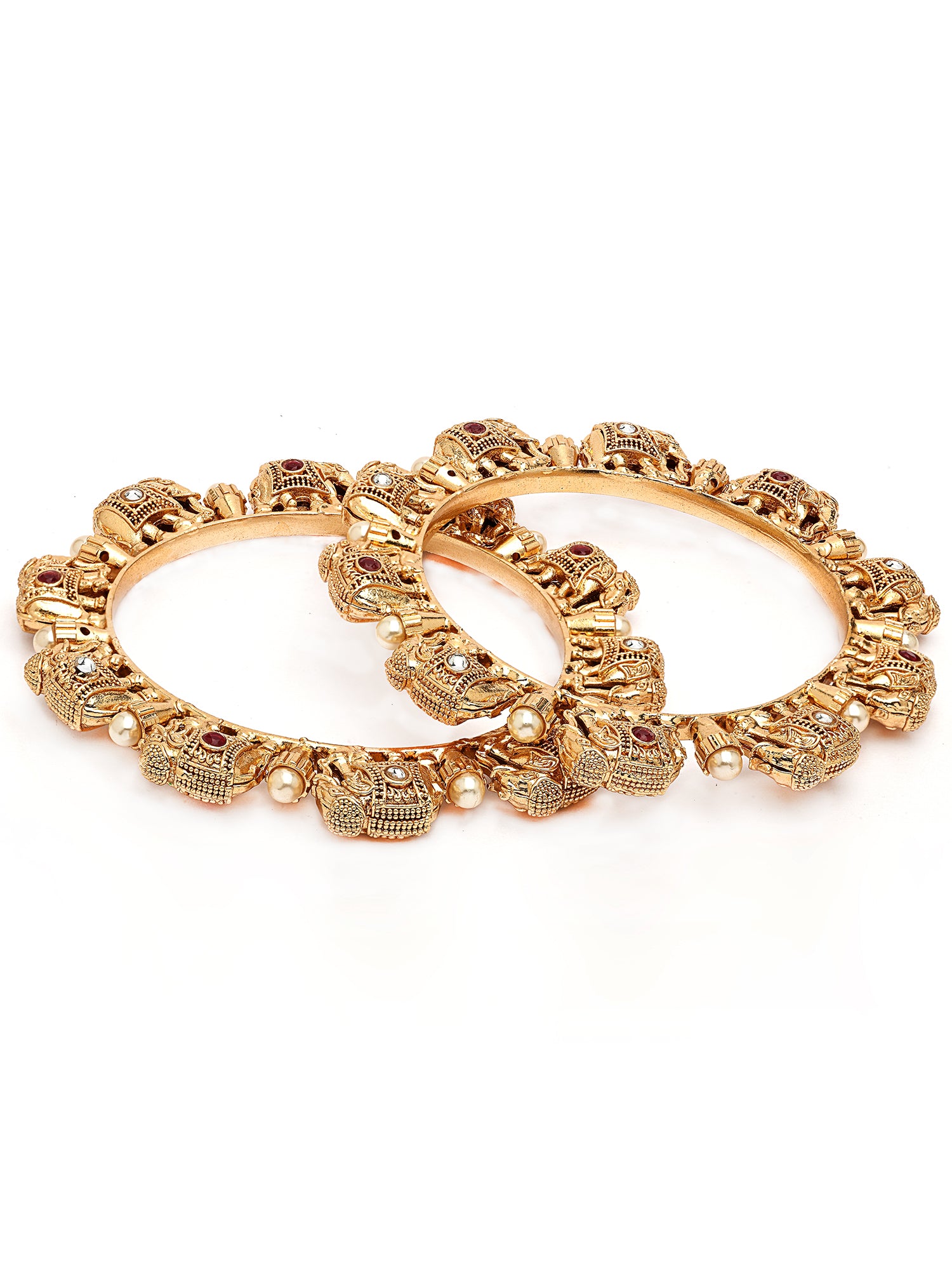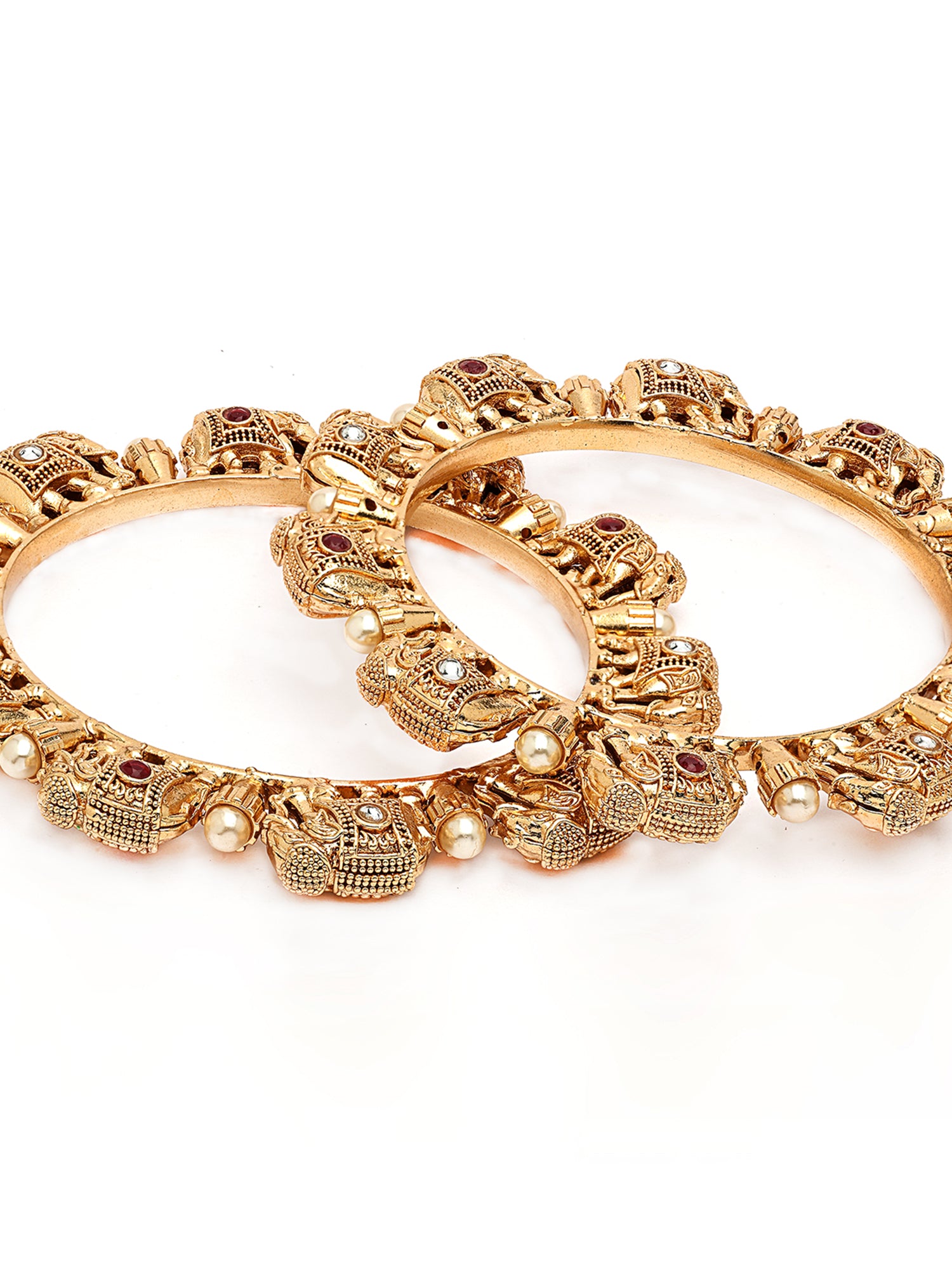 KARATCART Set of 2 Gold-Plated Elephant Design Bridal Bangles for Women