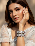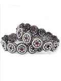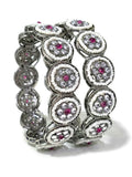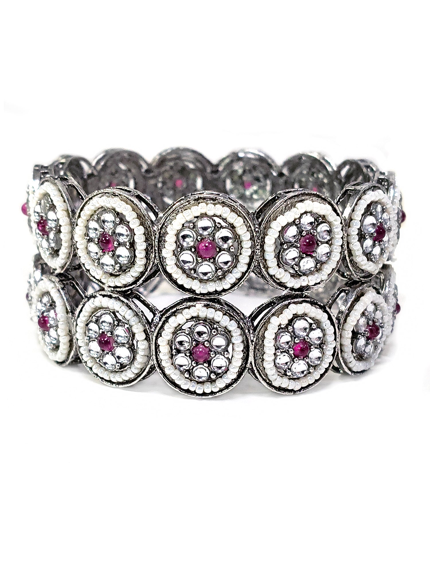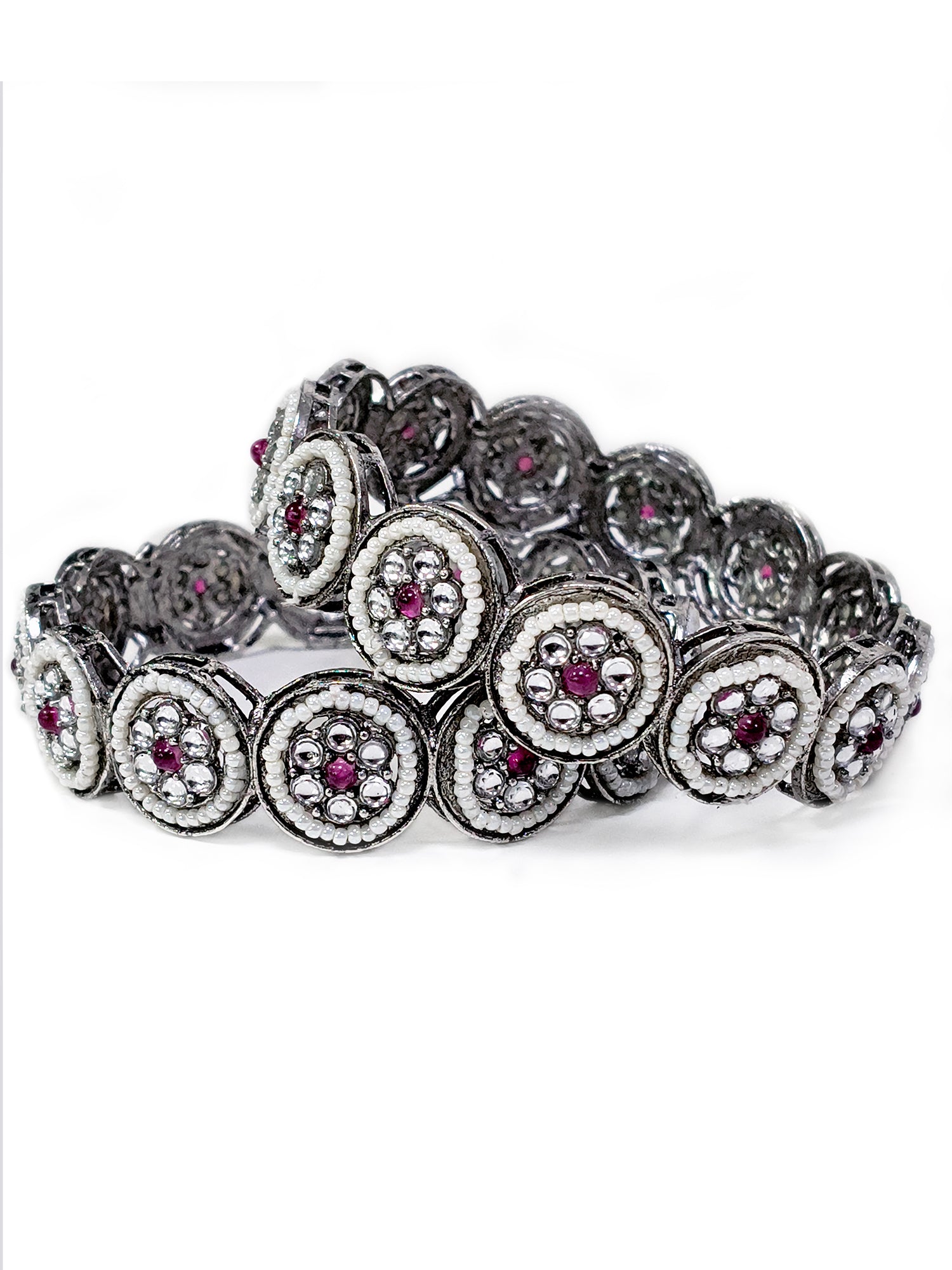 KARATCART Set of 2 Oxidised Silver Pearl and Red Stone Floral Bangles for Women