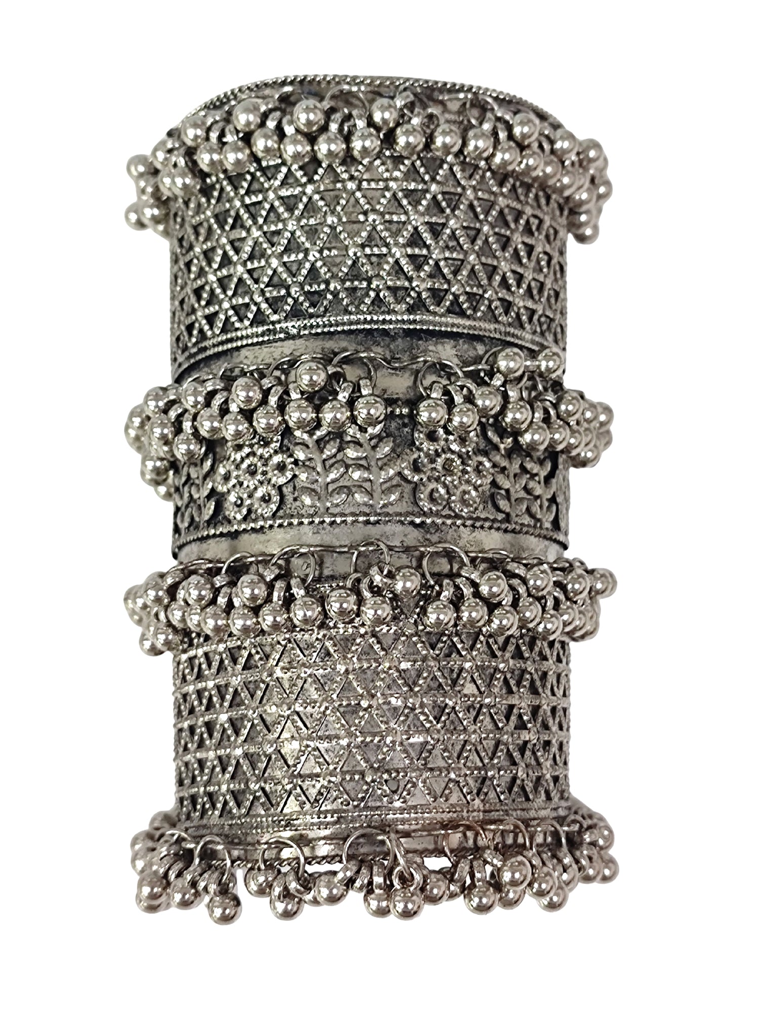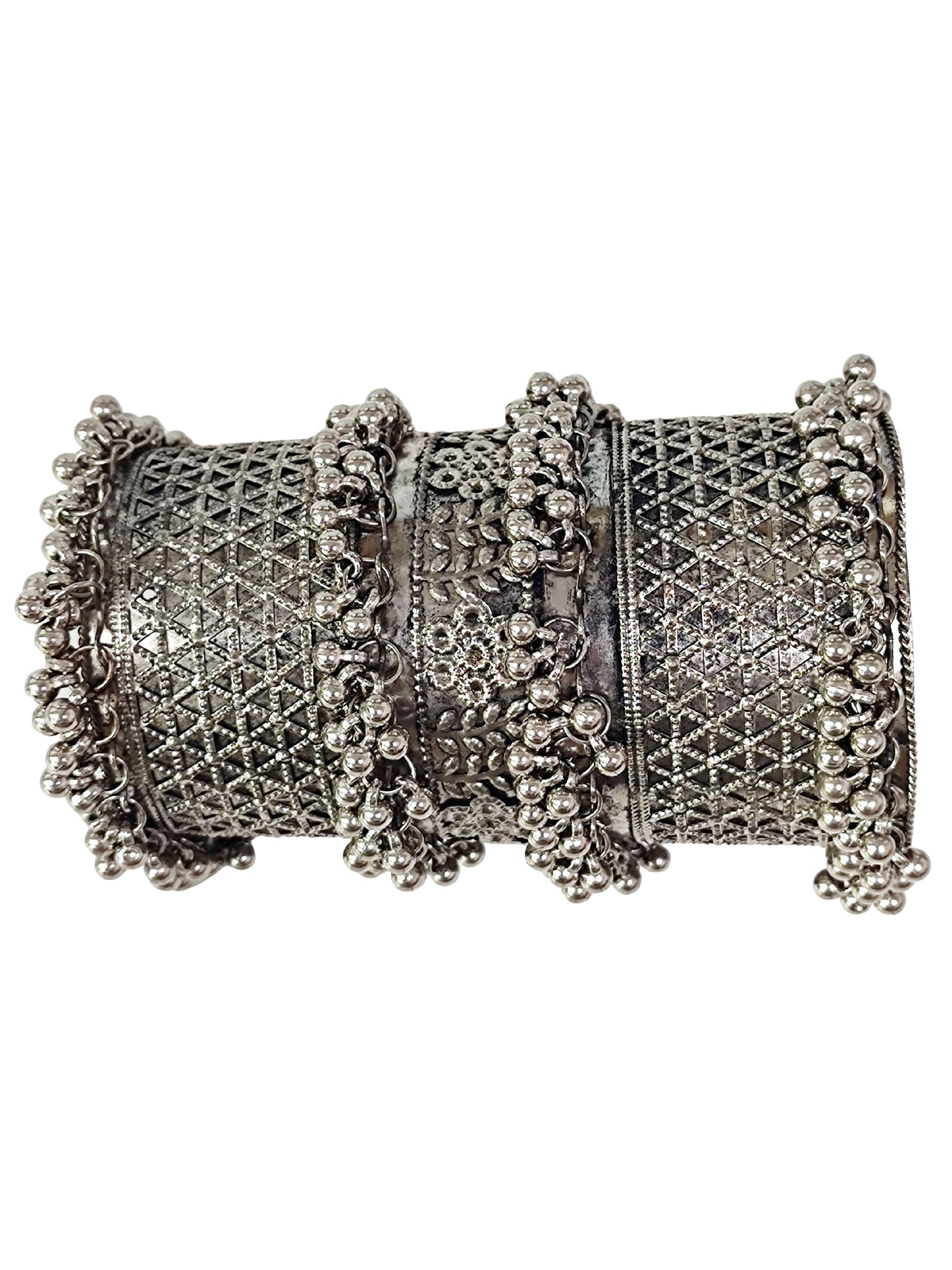 KARATCART Tribal-Inspired Oxidized Silver-Plated Handcrafted Cuff Bangle for Women