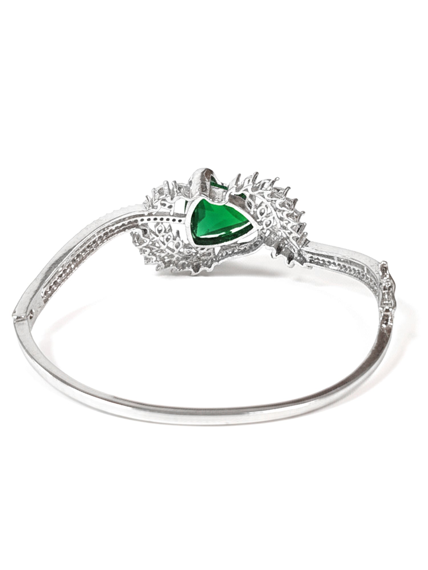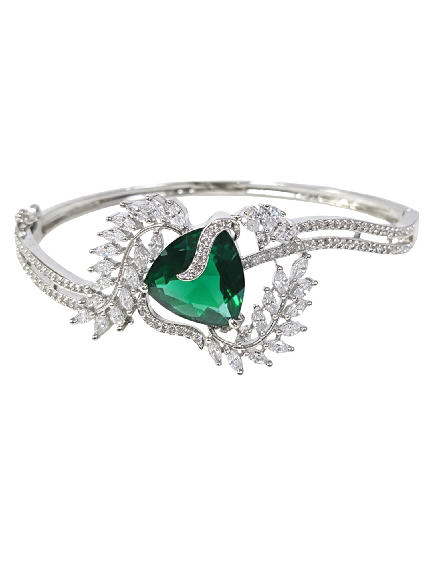 KARATCART Silver Plated Floral Green American Diamond Bracelet for Women