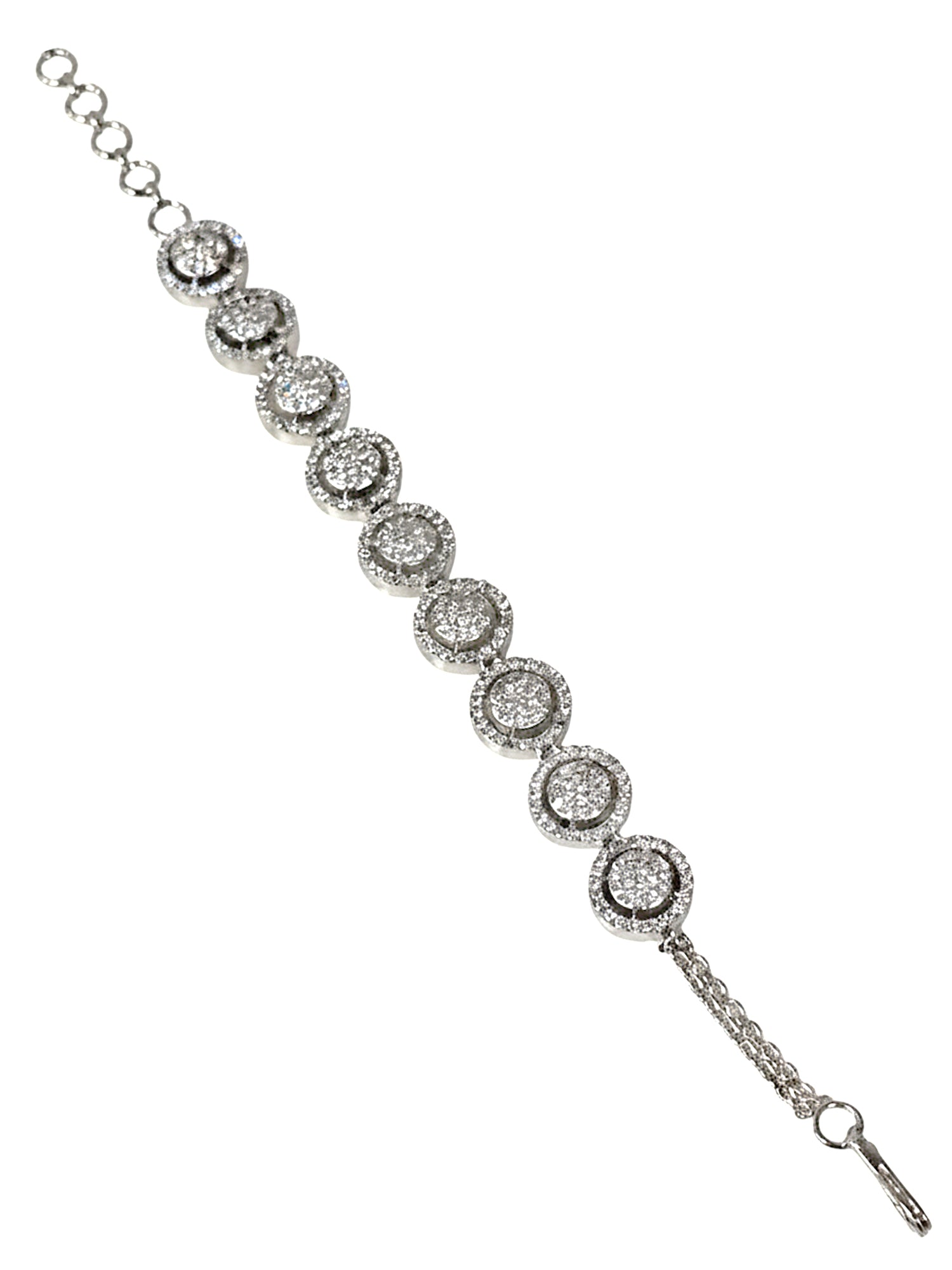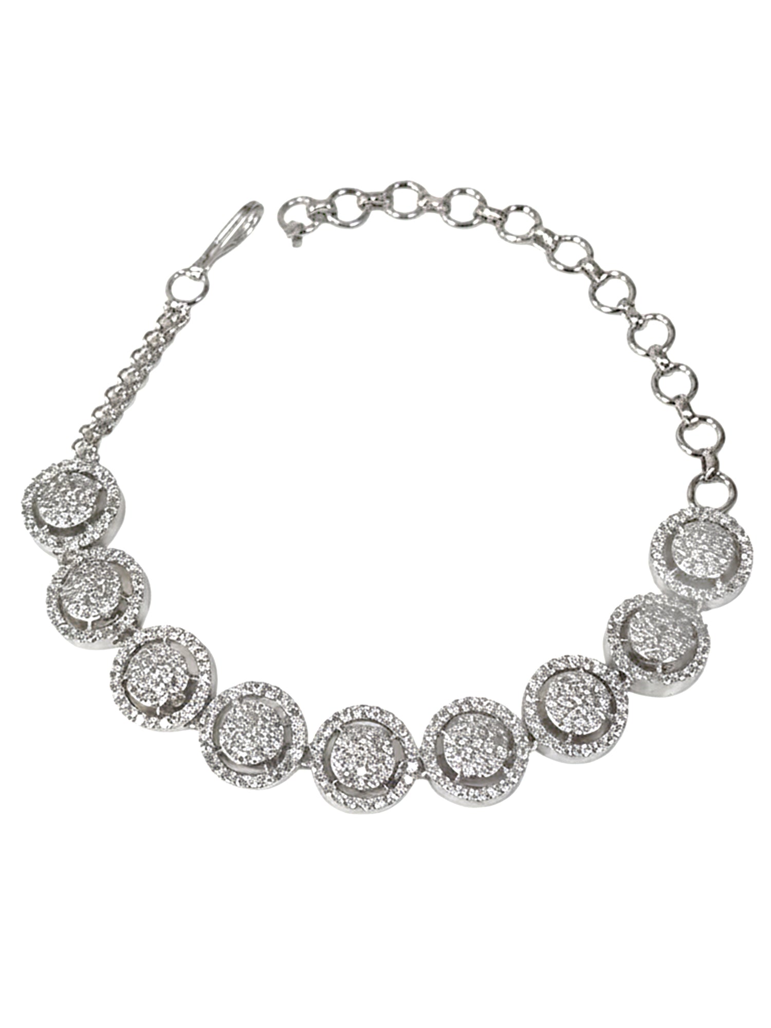 KARATCART Silver Plated Floral American Diamond Link Bracelet for Women