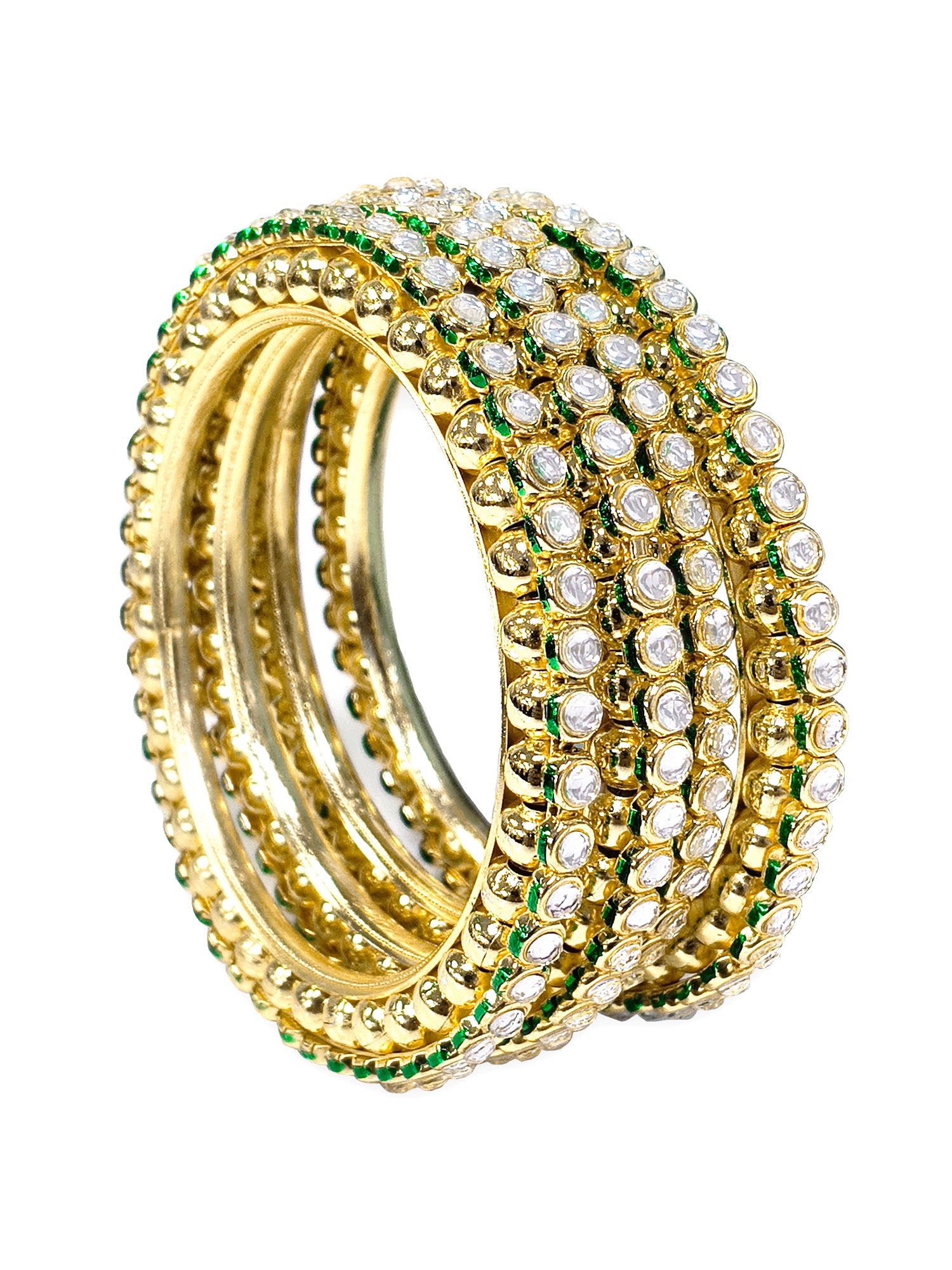 KARATCART Royal Rajwadi Style Set of 4 Gold-Plated Kundan Studded Bridal Bangles for Women