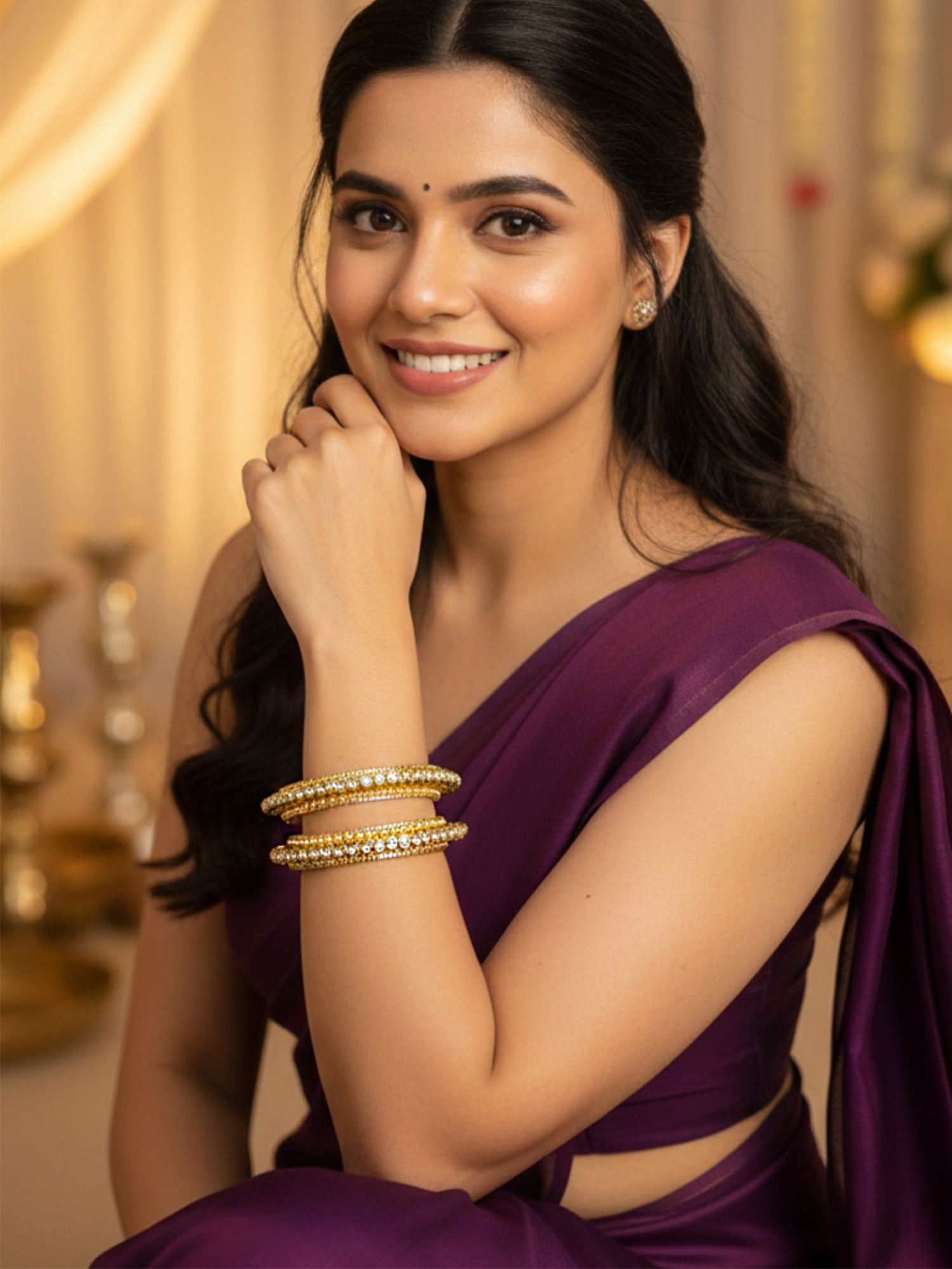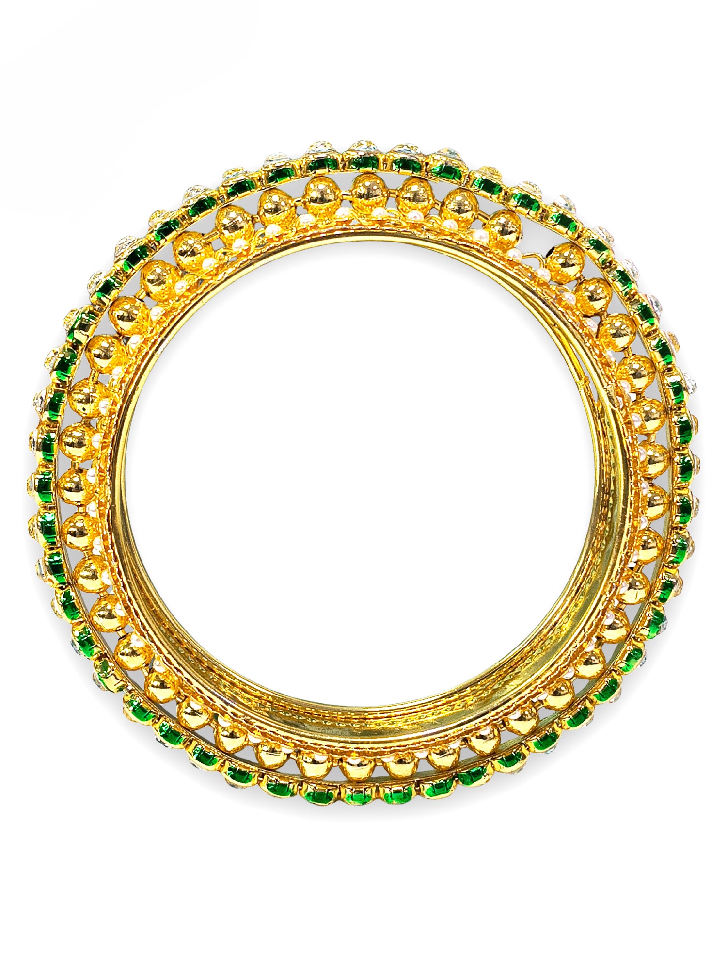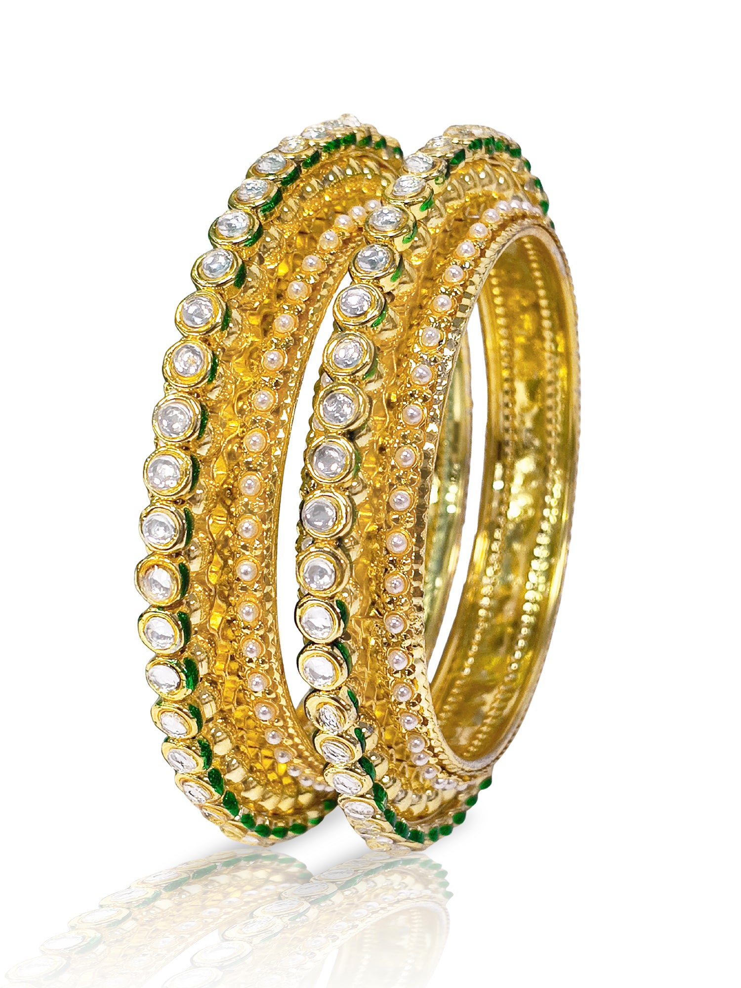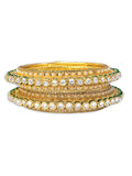 KARATCART Designer Rajwadi Style Gold-Plated Pearl and Stone Studded Bangle Set for Women