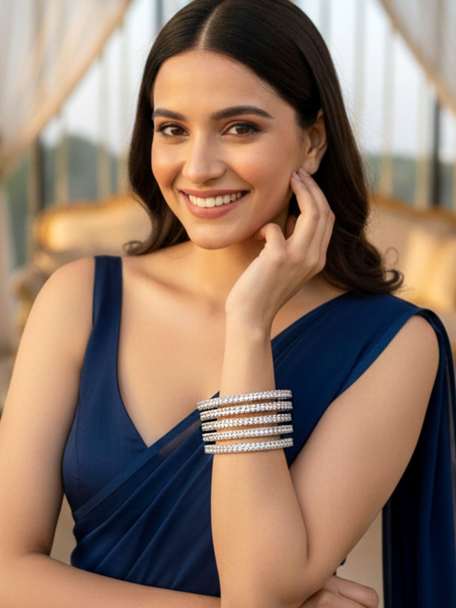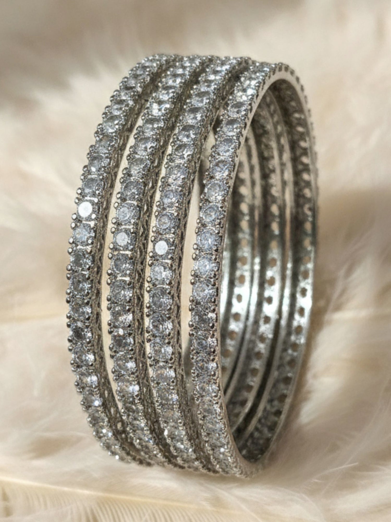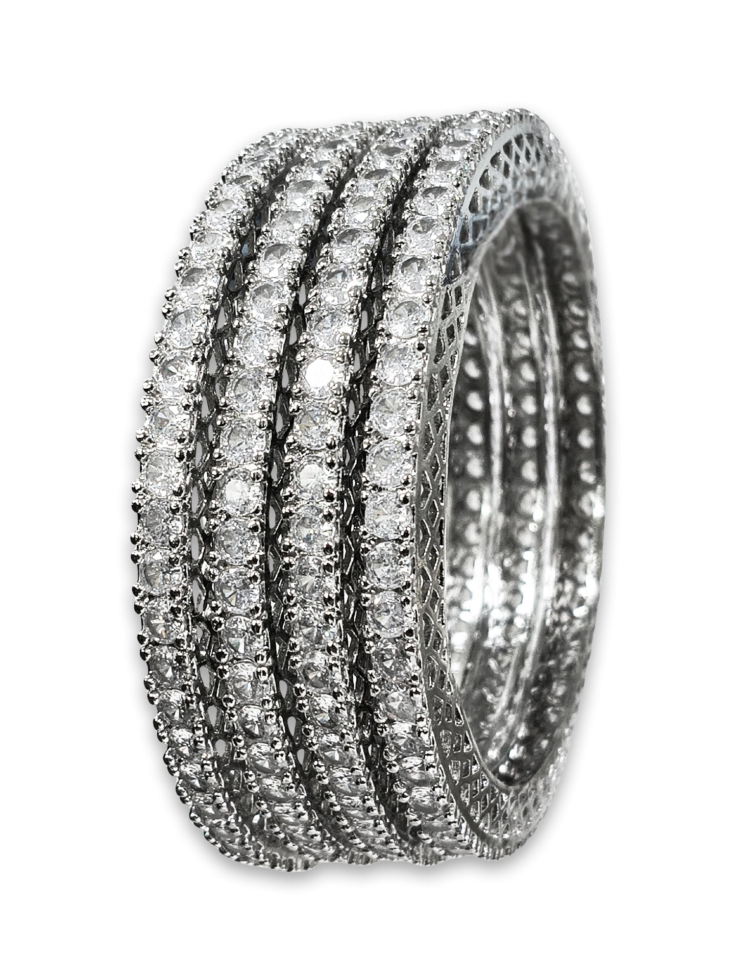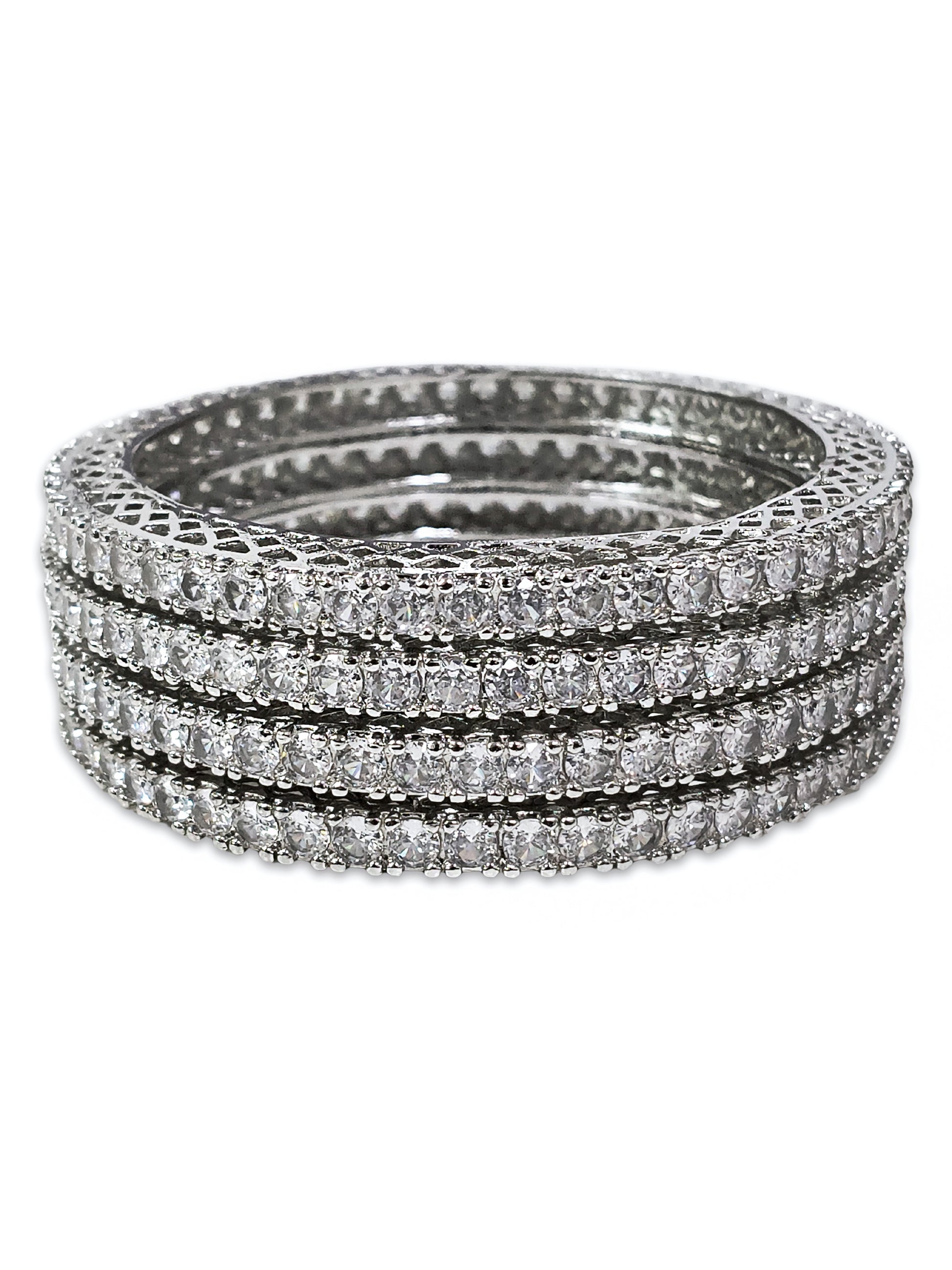 KARATCART Classic Set of 4 Silver Plated White American Diamond Bangles for Women