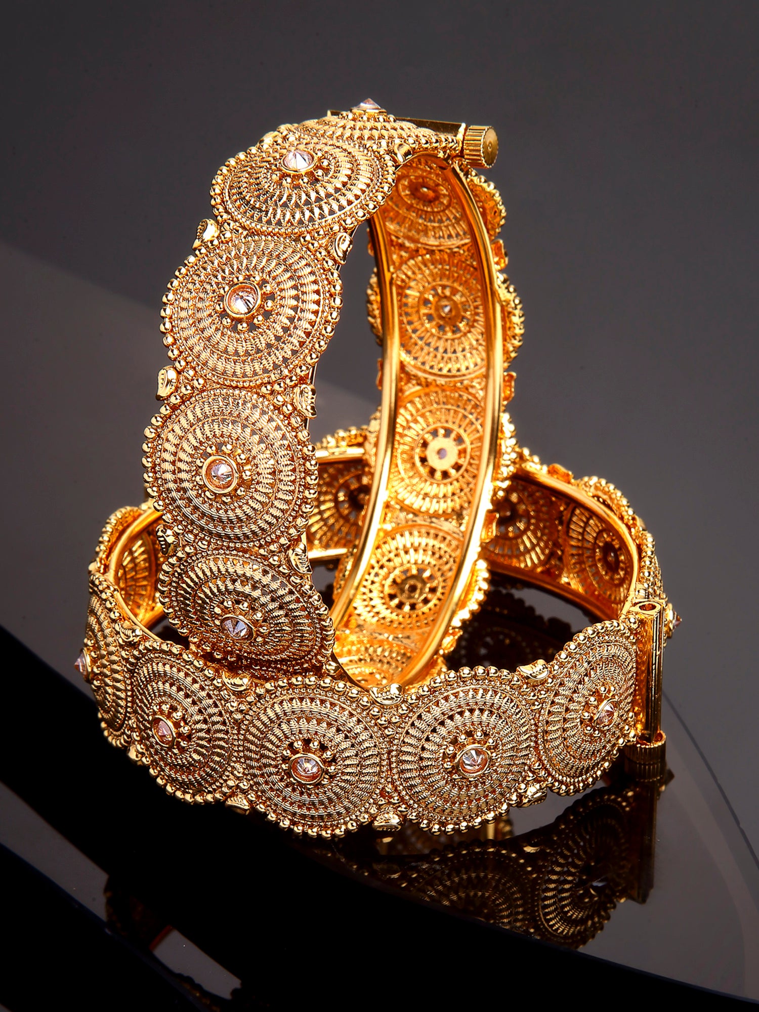 KARATCART Gold Plated Stone Jadau Gold Bangles for Women