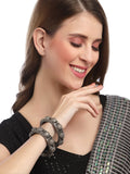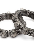 Karatcart Oxidised Silver Antique Dome Shape Openable Bangle for Women