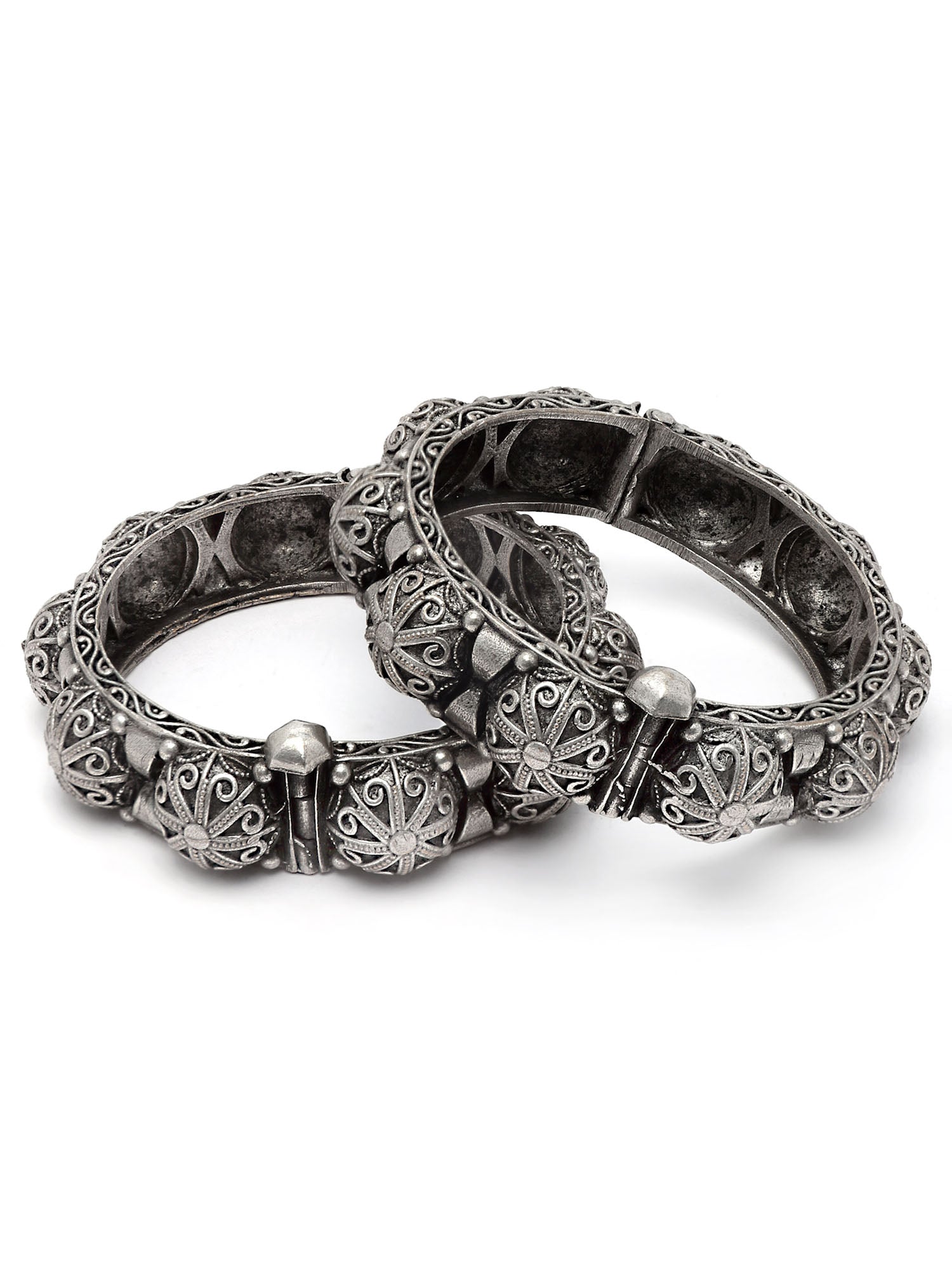 - Karatcart Oxidised Silver Antique Dome Shape Openable Bangle for Women. Our products are designed with high-quality material which makes them very skin-friendly.