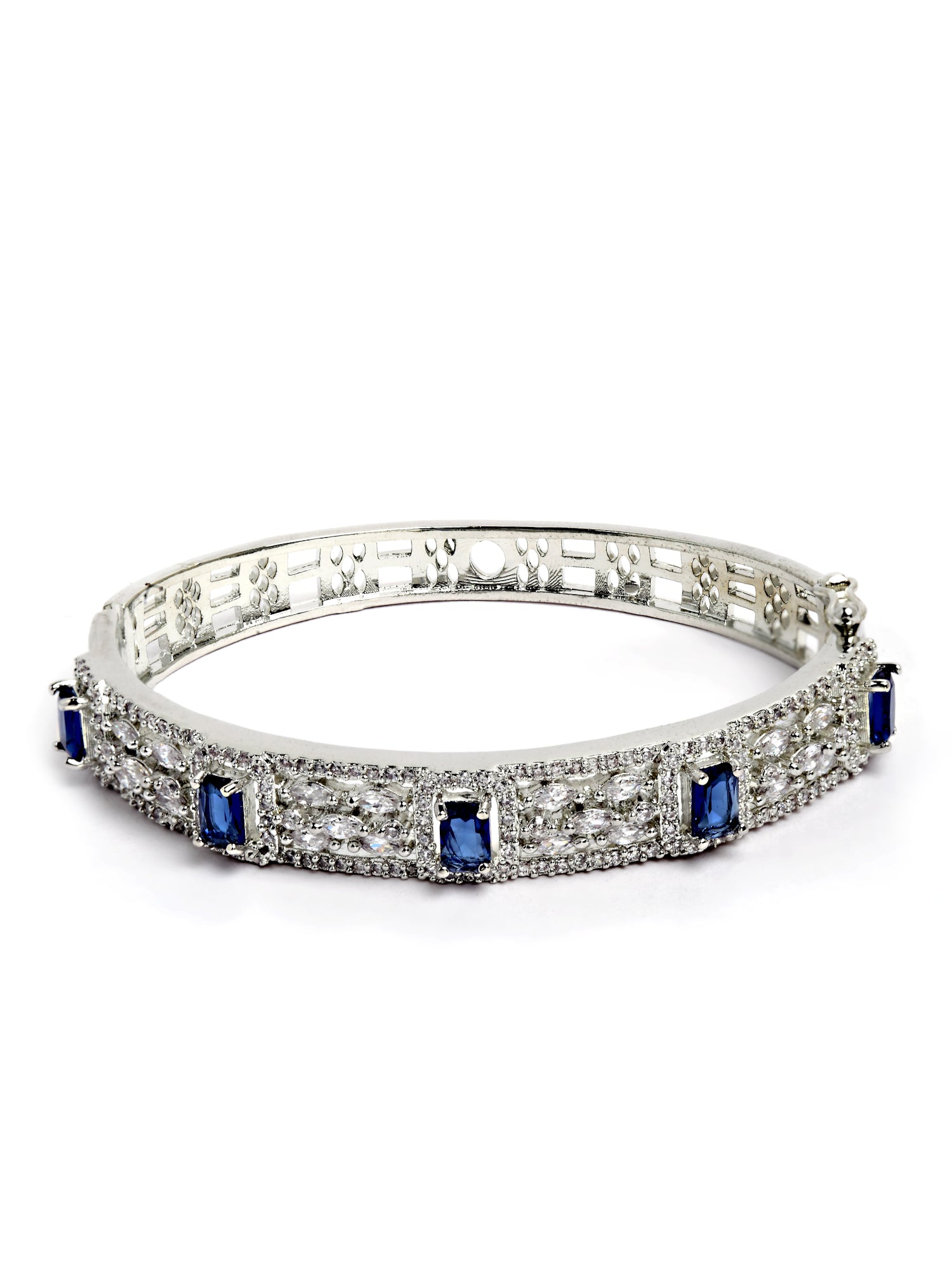 • Karatcart Silver Tone Blue American Diamond Studded Bracelet for Women. Our products are designed with high-quality material and these products are enhanced with plating that are skin-friendly & with love to reach your heart.