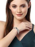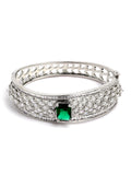 Karatcart Silver Tone Green American Diamond Studded Bracelet for Women