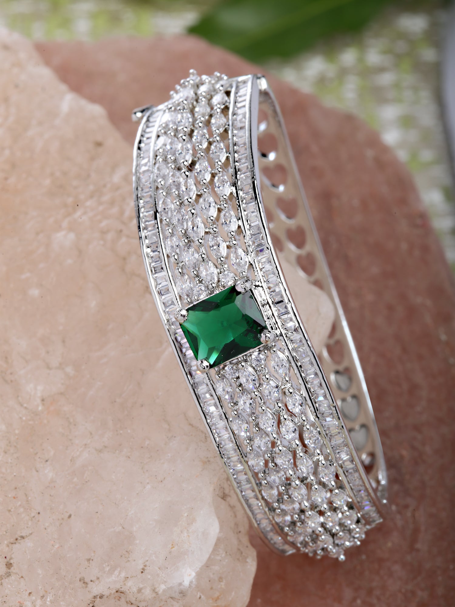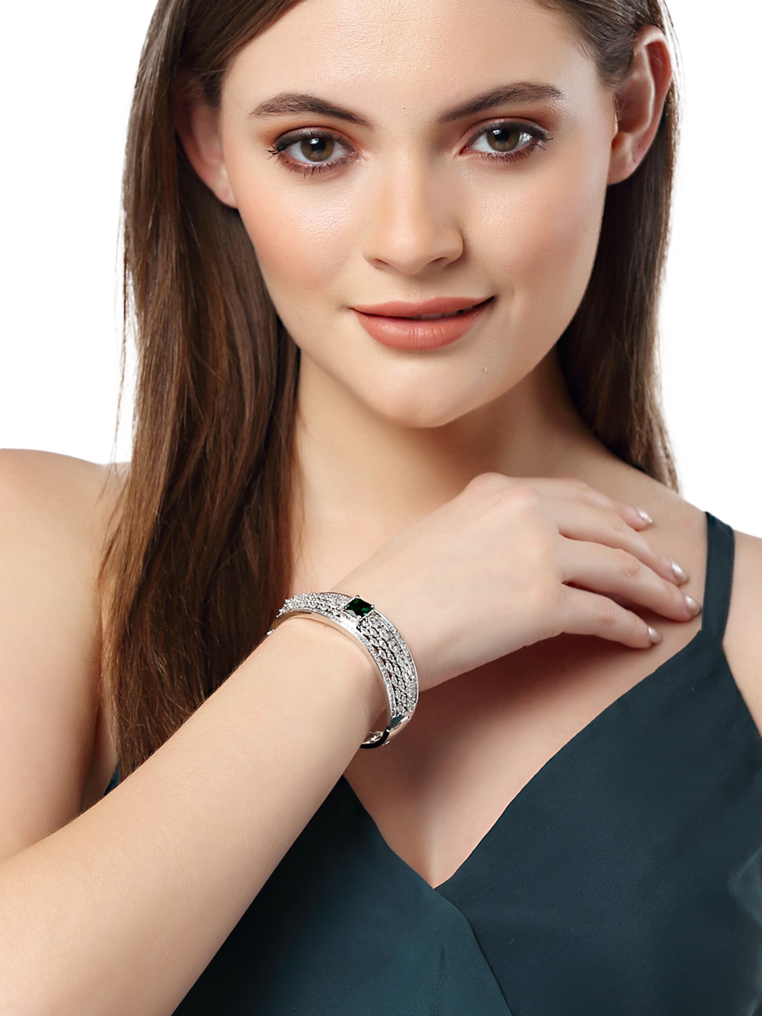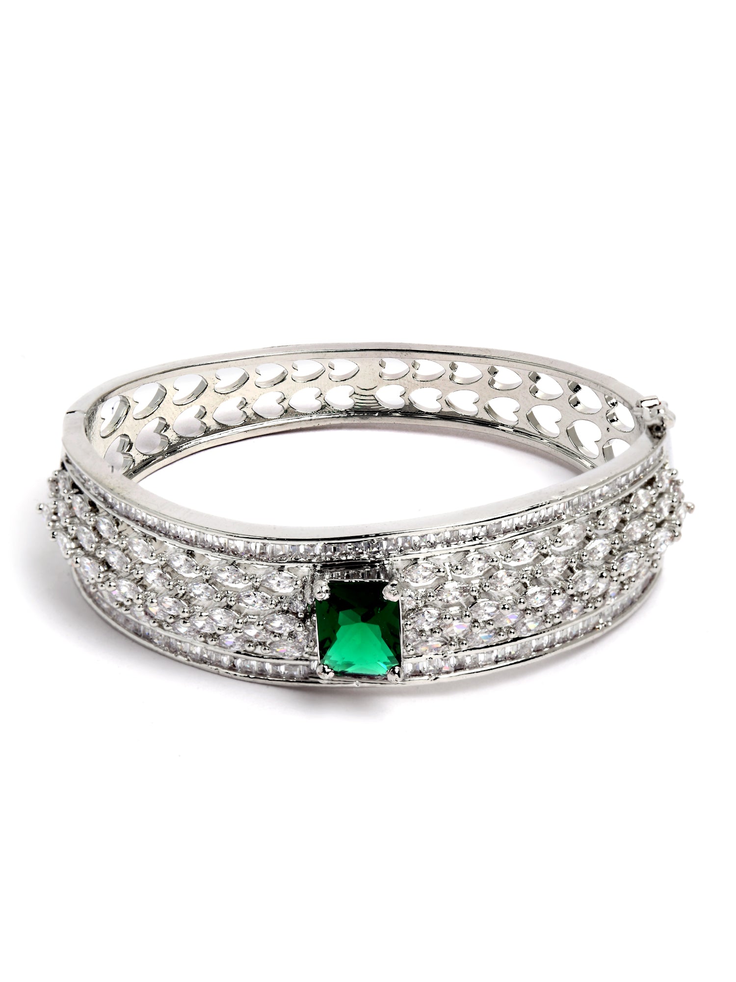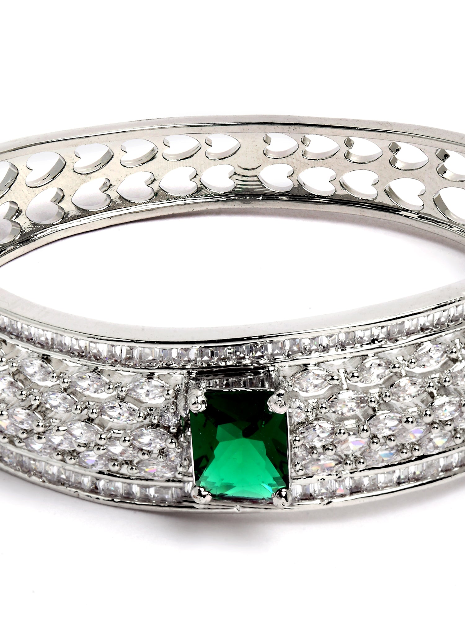 - Karatcart Silver Tone Green American Diamond Studded Bracelet for Women. Our products are designed with high-quality material and these products are enhanced with plating that are skin-friendly & with love to reach your heart.