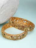 Karatcart Set of 2 Antique Gold Plated Rajwadi Temple Bangles for Women