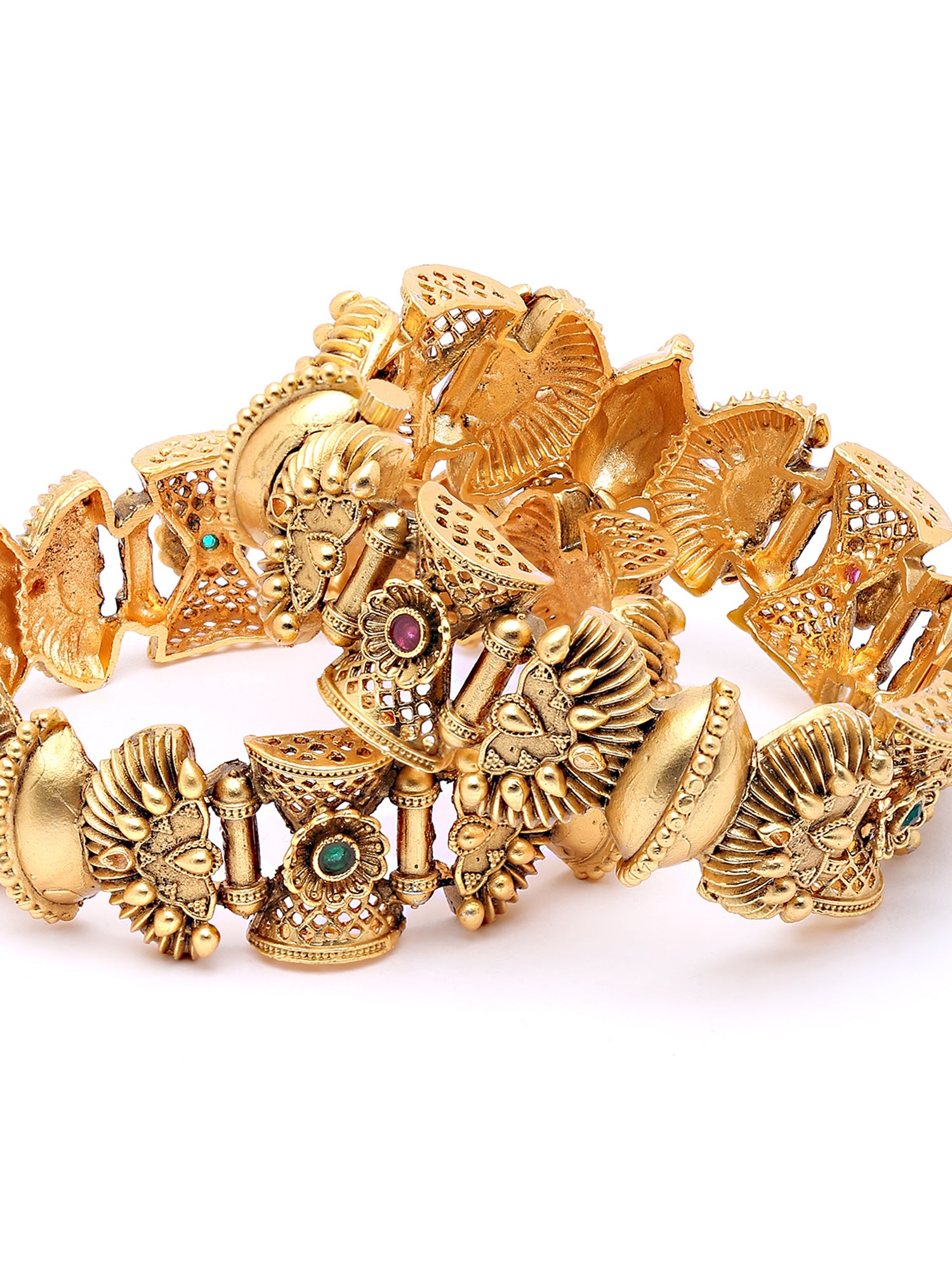 Karatcart Set of 2 Antique Gold Plated Rajwadi Bangles For Women