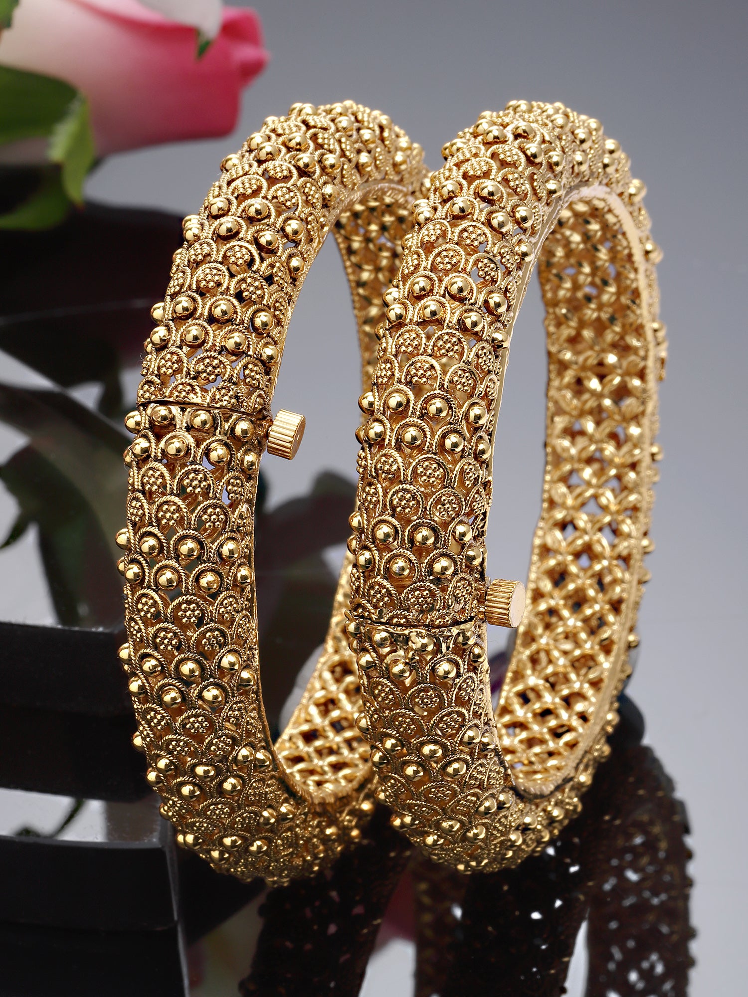 Karatcart Set of 2 Rajwadi Gold Plated Antique Temple Bangles for Women