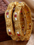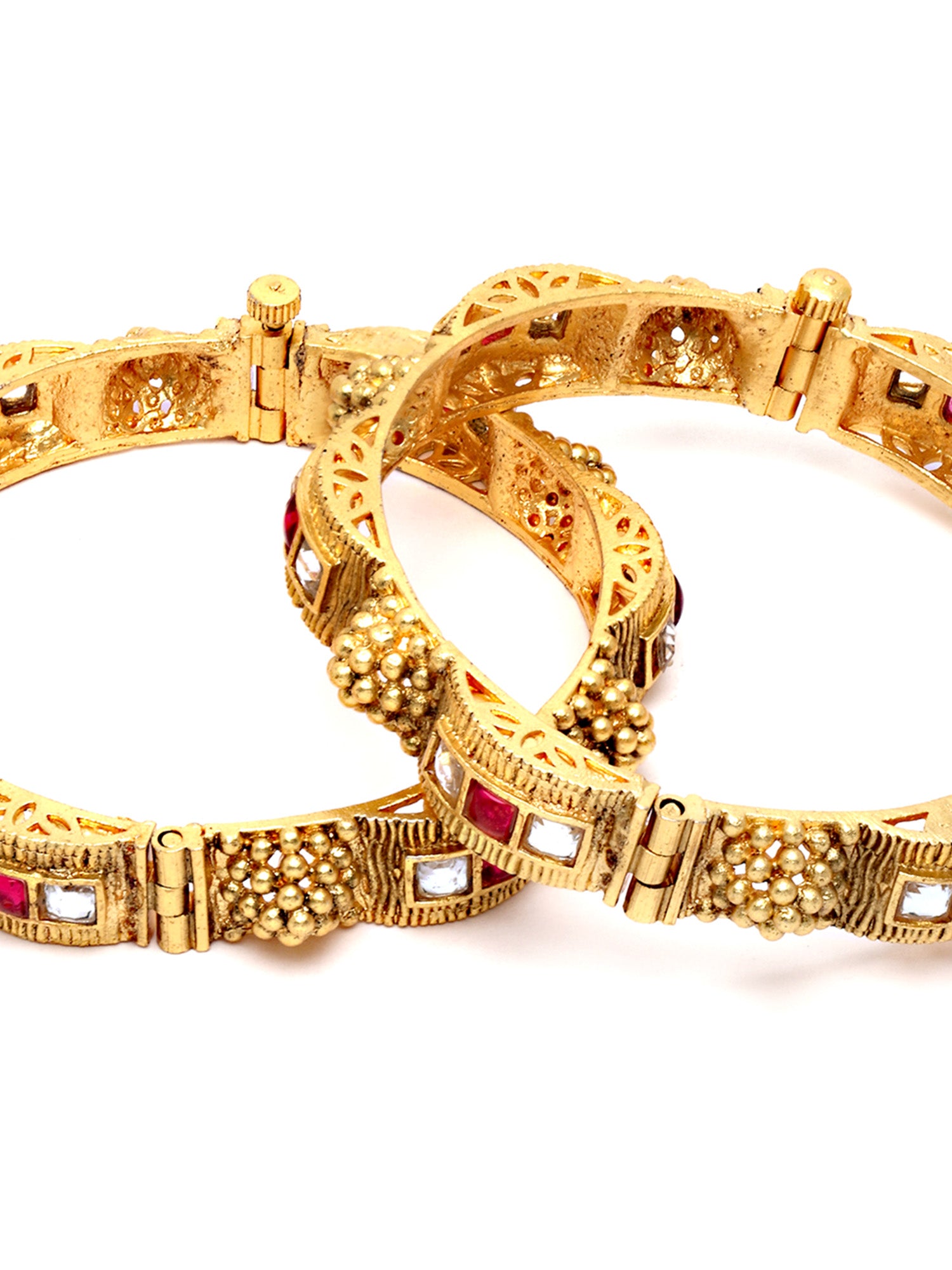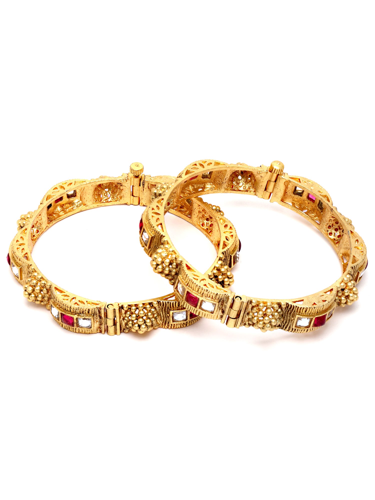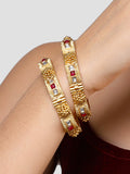 Karatcart Antique Gold Plated Floral Rajwadi Temple Bangles Set for Women