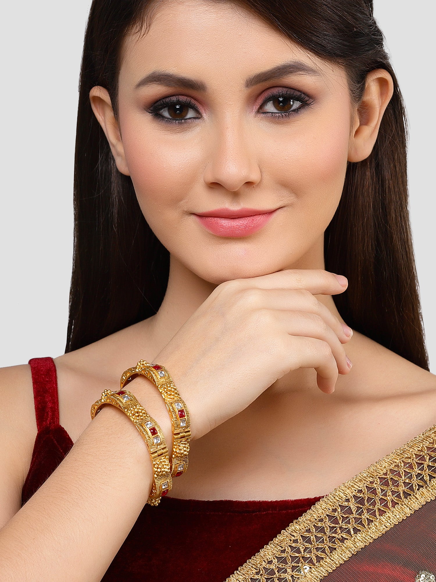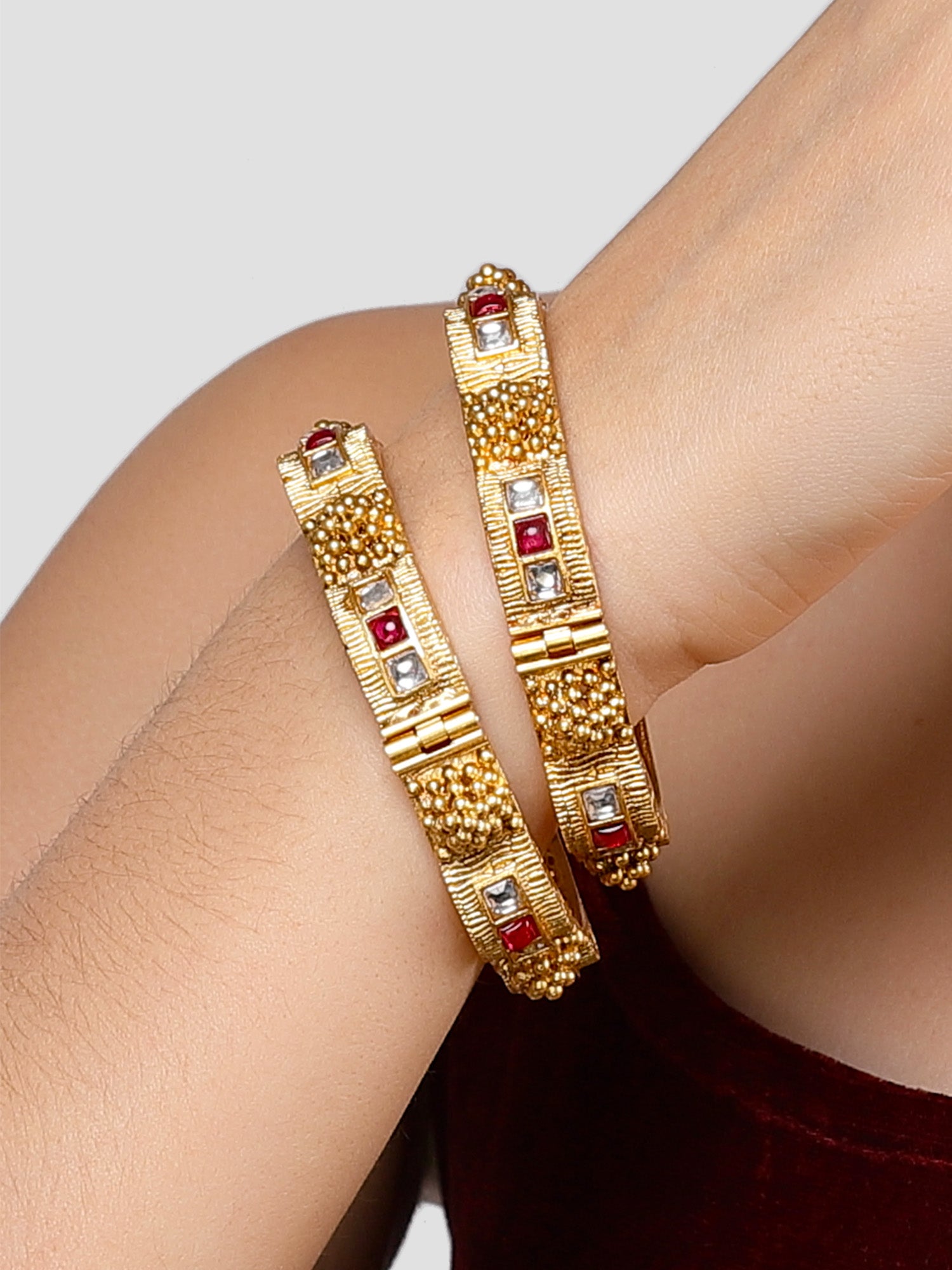 - This is a Gold Bangles by Brand Karatcart which has Stone stones. This is Gold Plated. We at KARATCART understand your desire to look the best on any day & we thrive in making any day an occasion. Every individual at Karatcart carries a passion for jewellery and it reflects in our beautiful designs as well as in our breathtaking craftsmanship. We create unique jewellery so you can make heads turn.