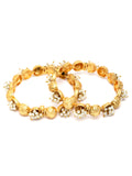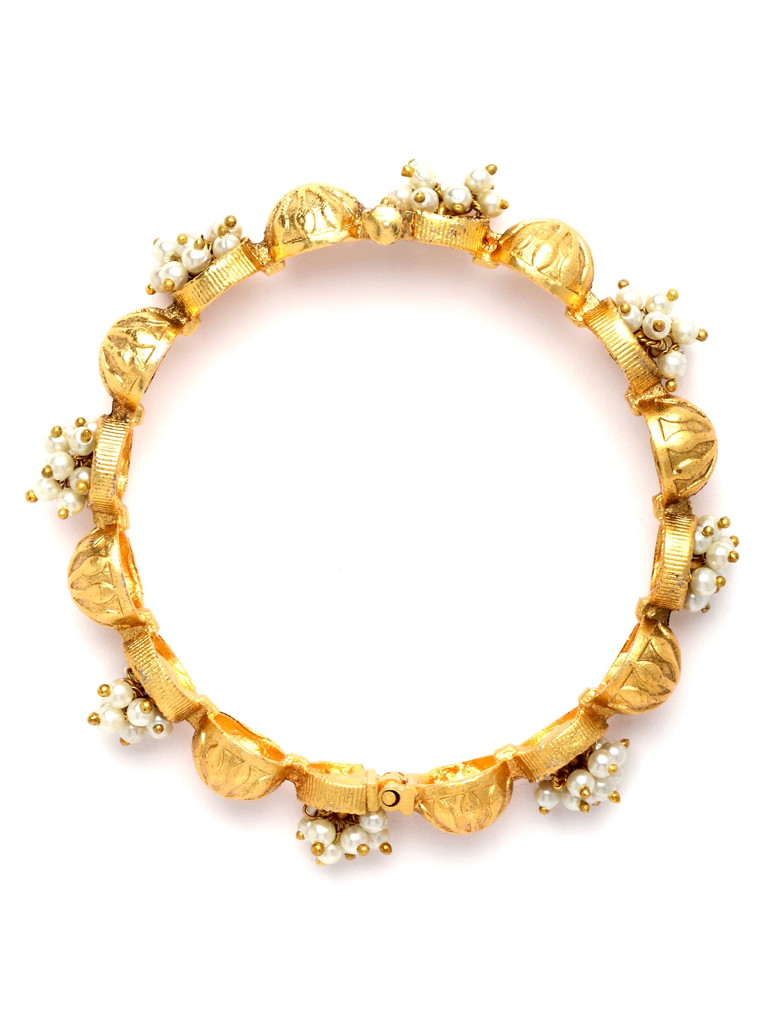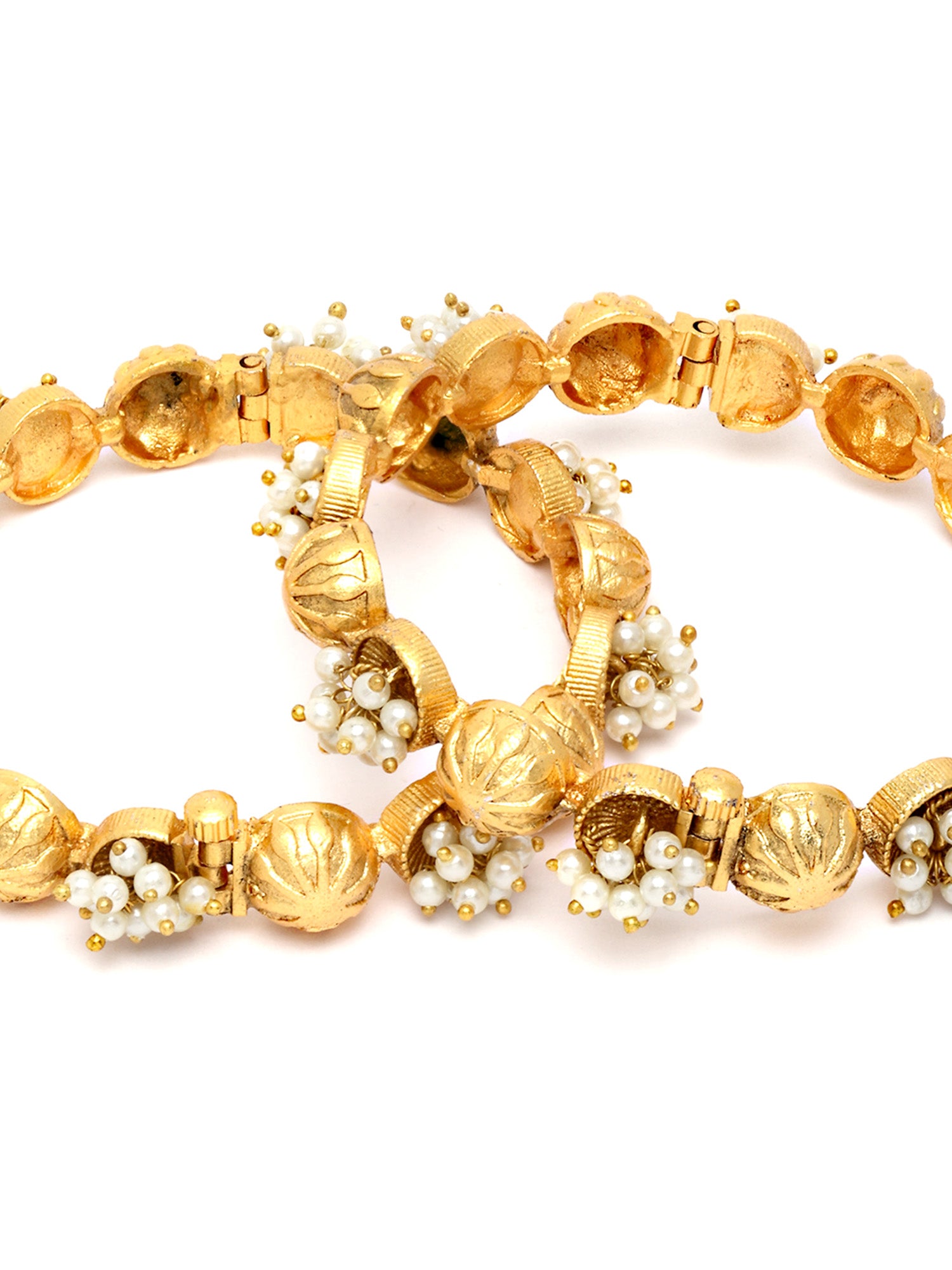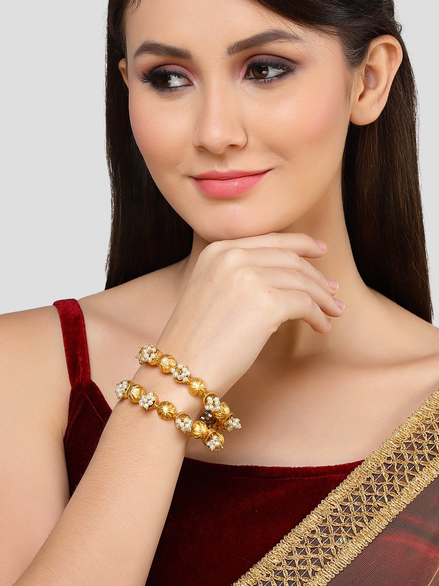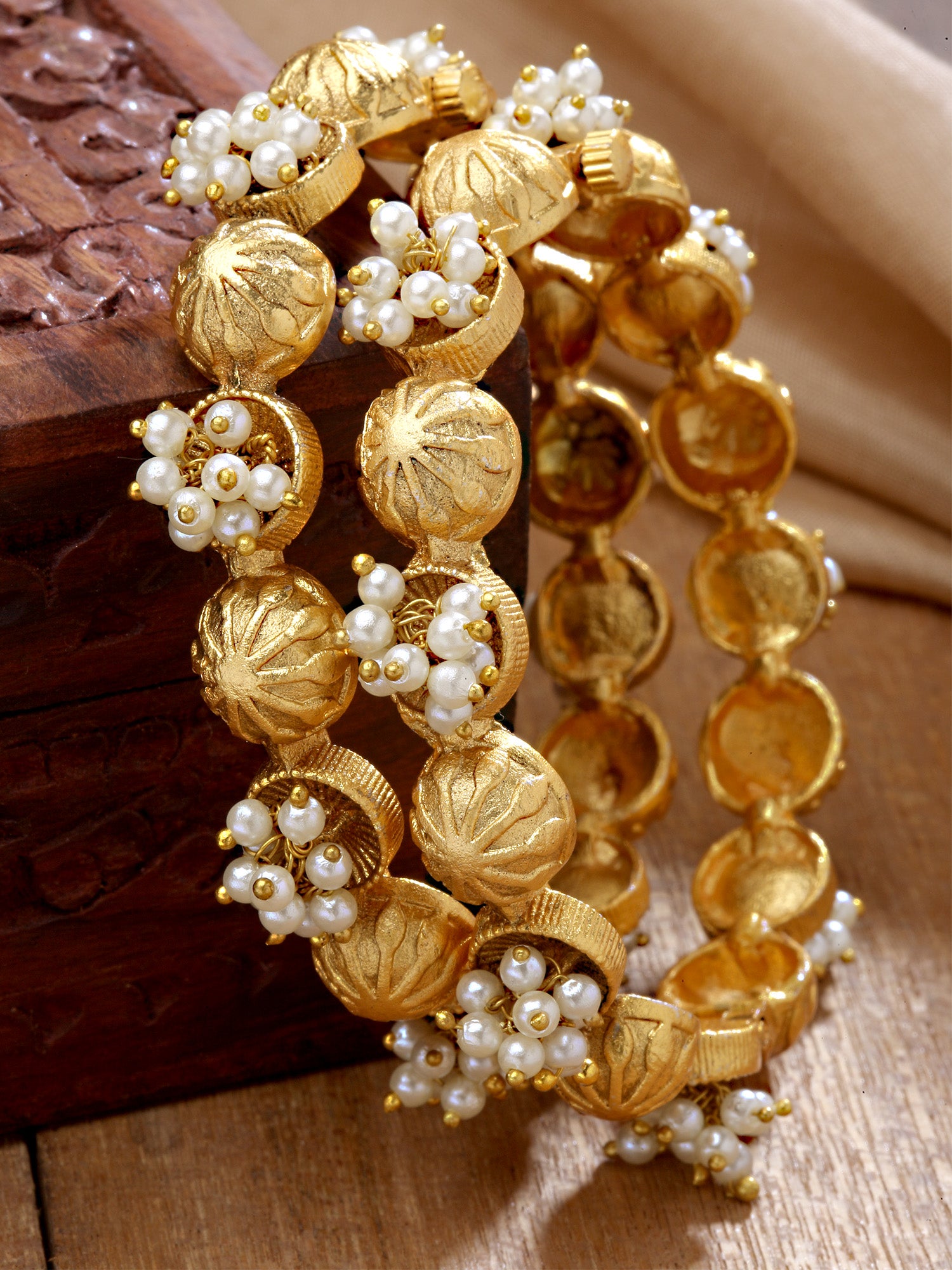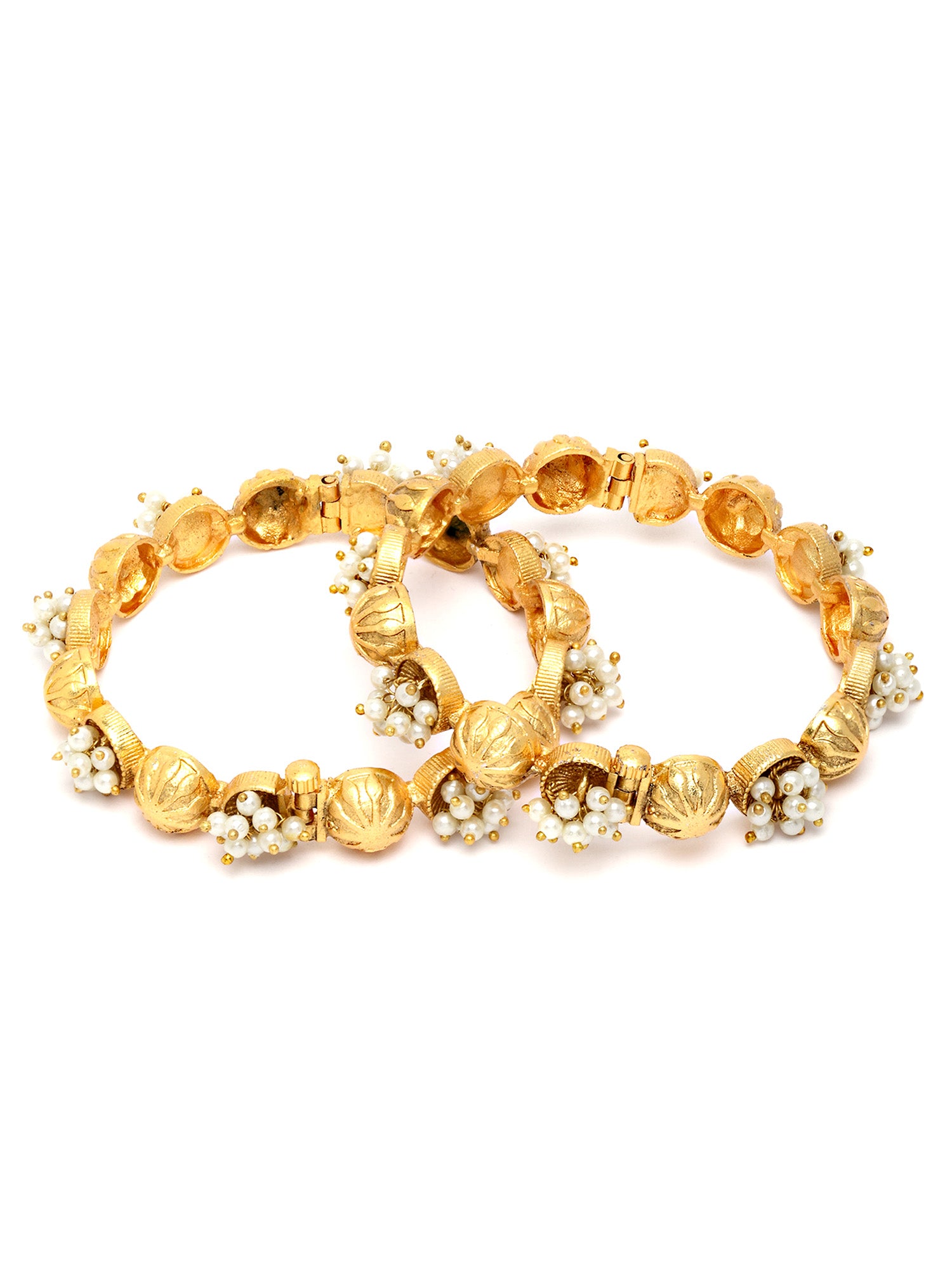 Karatcart Gold Plated Pearl Studded Floral Rajwadi Temple Bangles Set for Women
