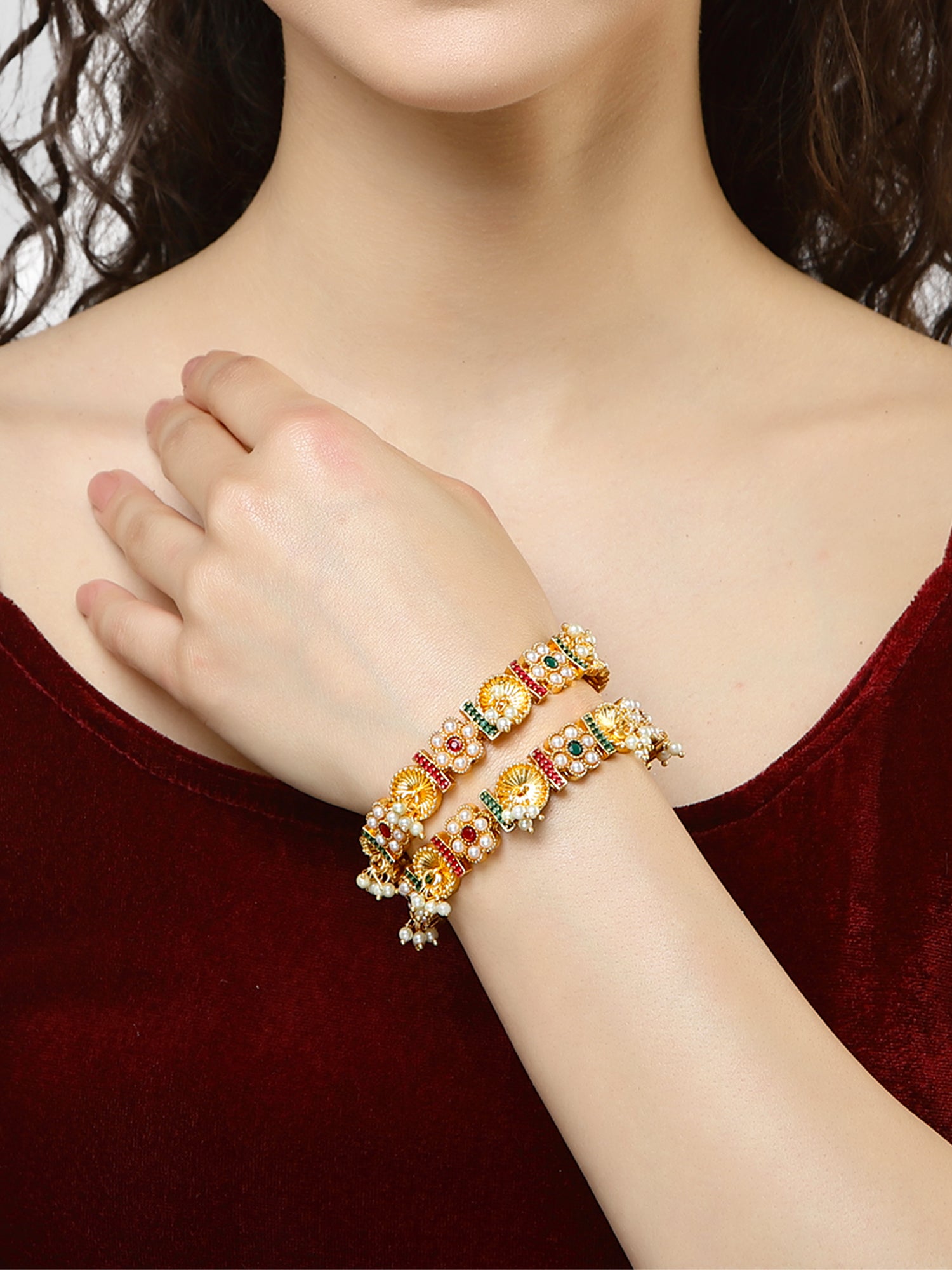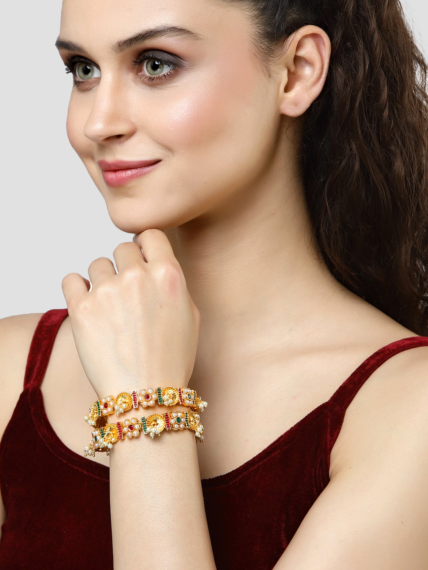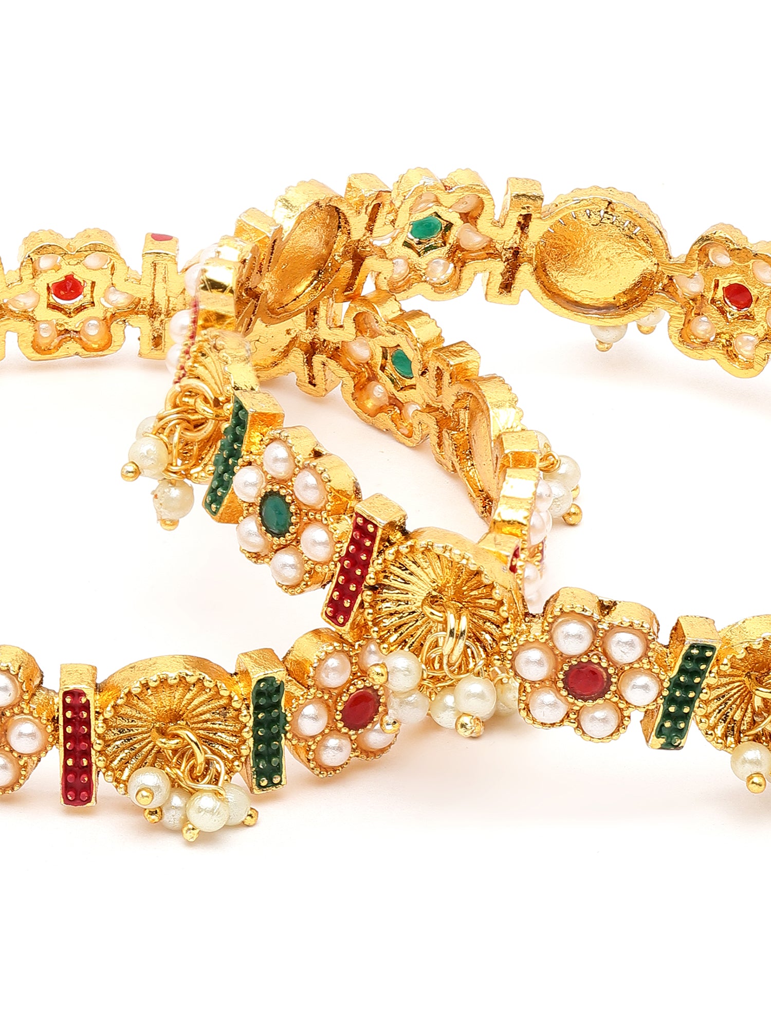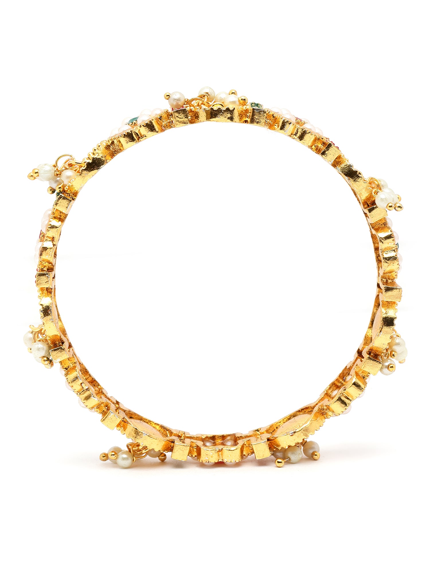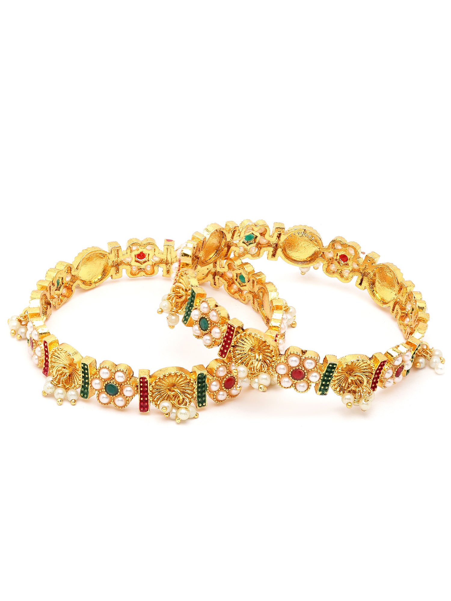 Karatcart Gold Plated Pearl Beads Rajwadi Temple Bangles for Women