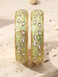 Karatcart Set of 2 Antique Light Green Meena Gold Plated Bangles for Women