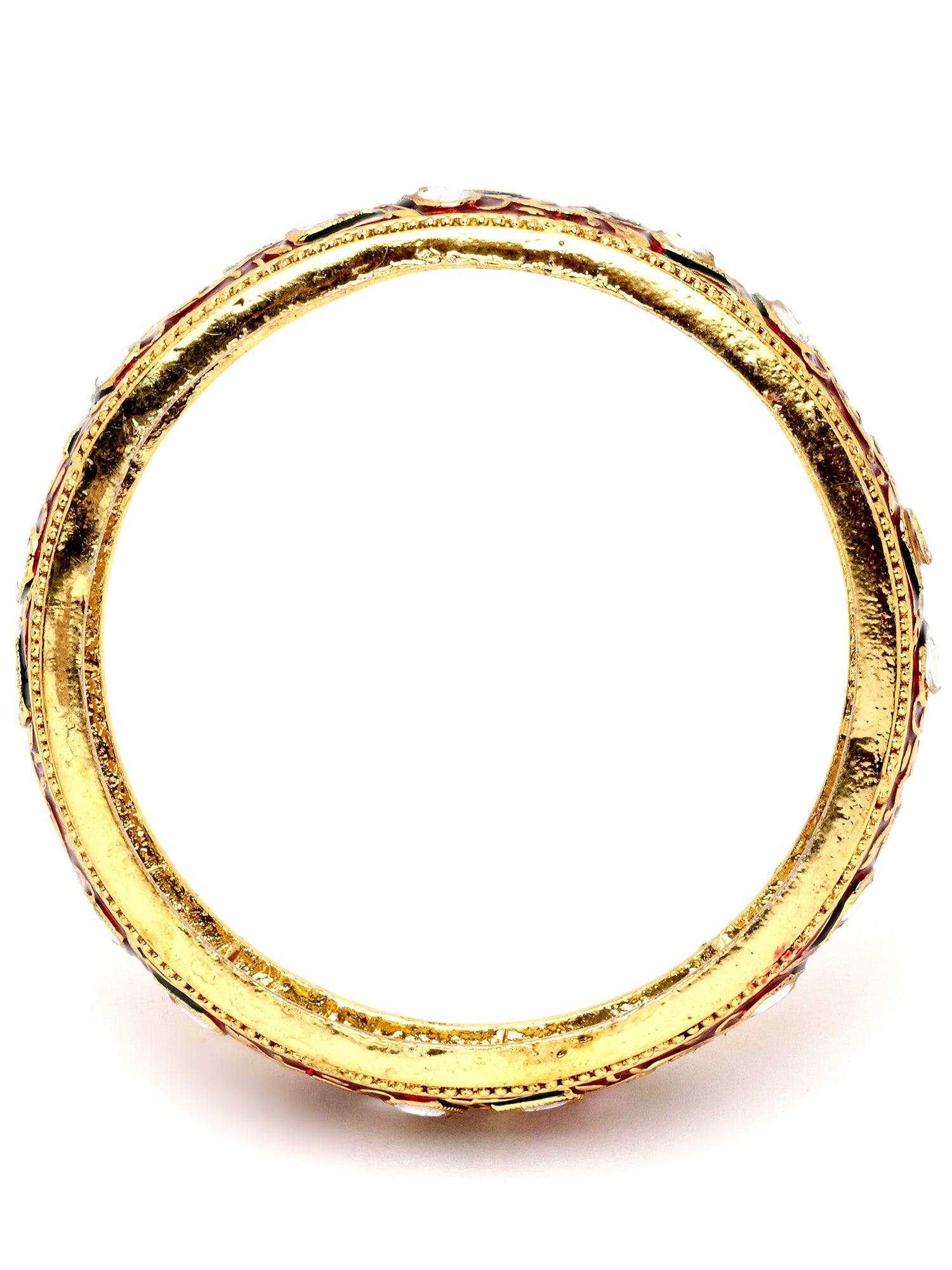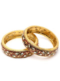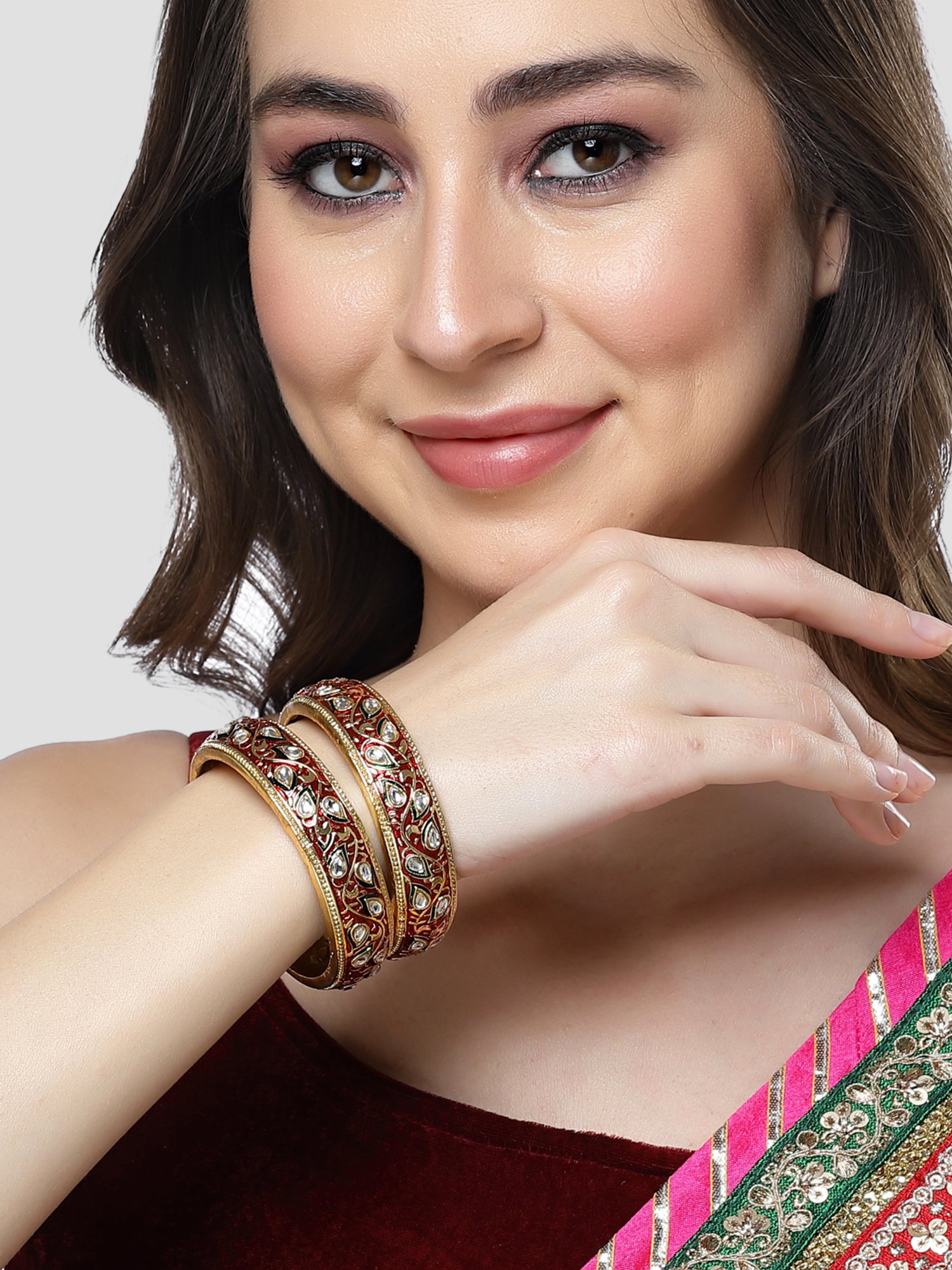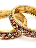 Karatcart Set of 2 Antique Red Meena Gold Plated Bangles for Women