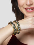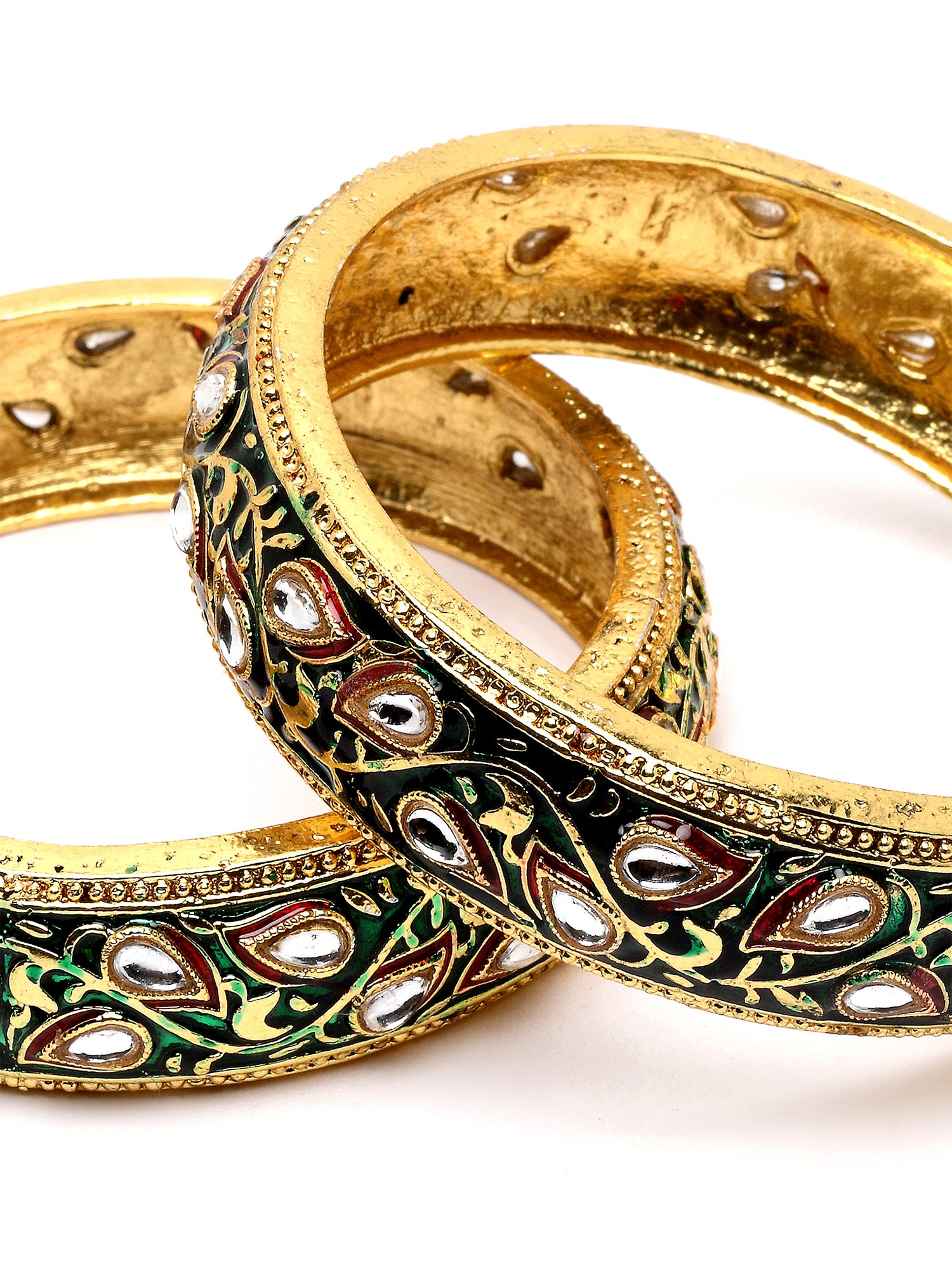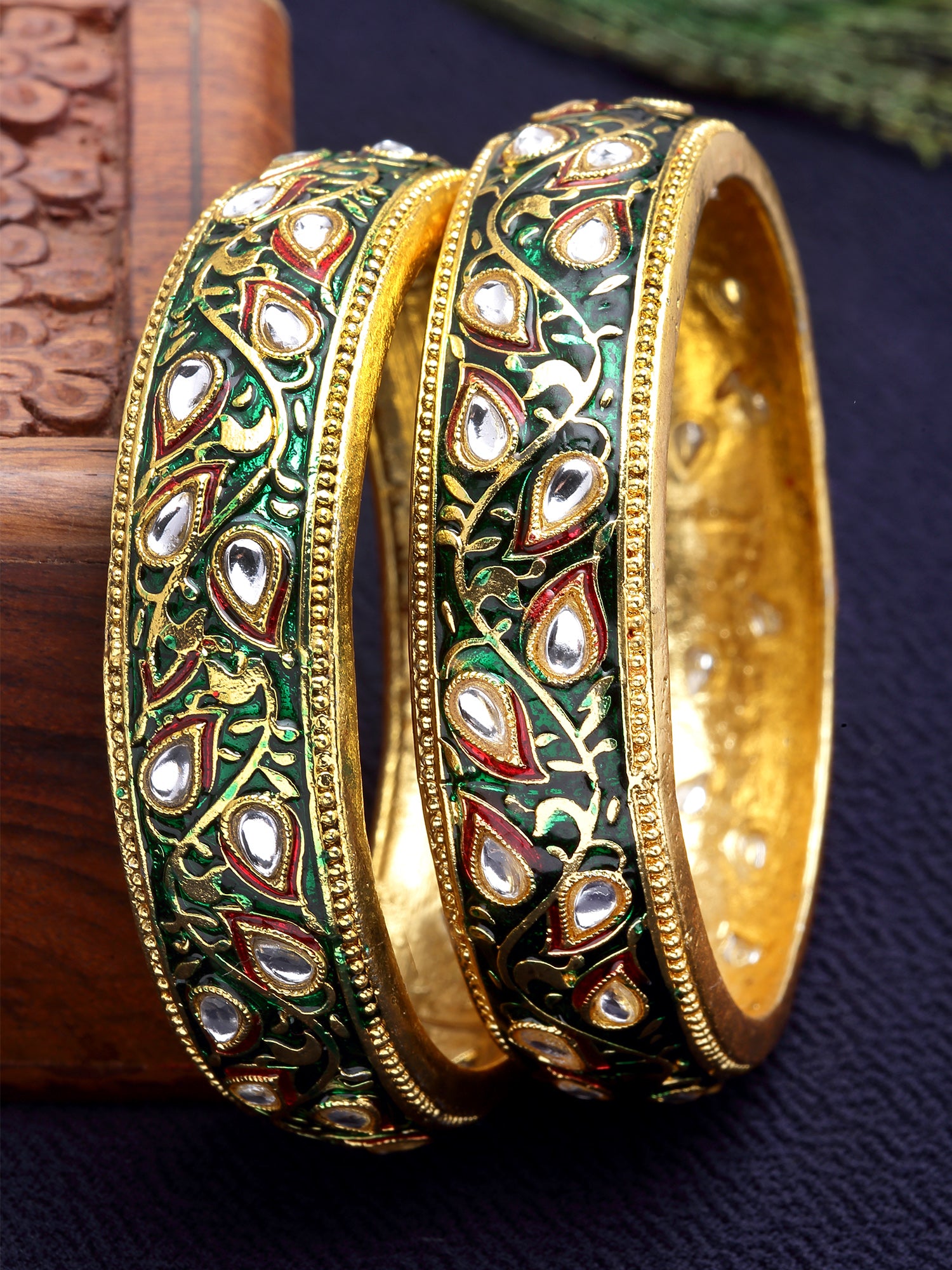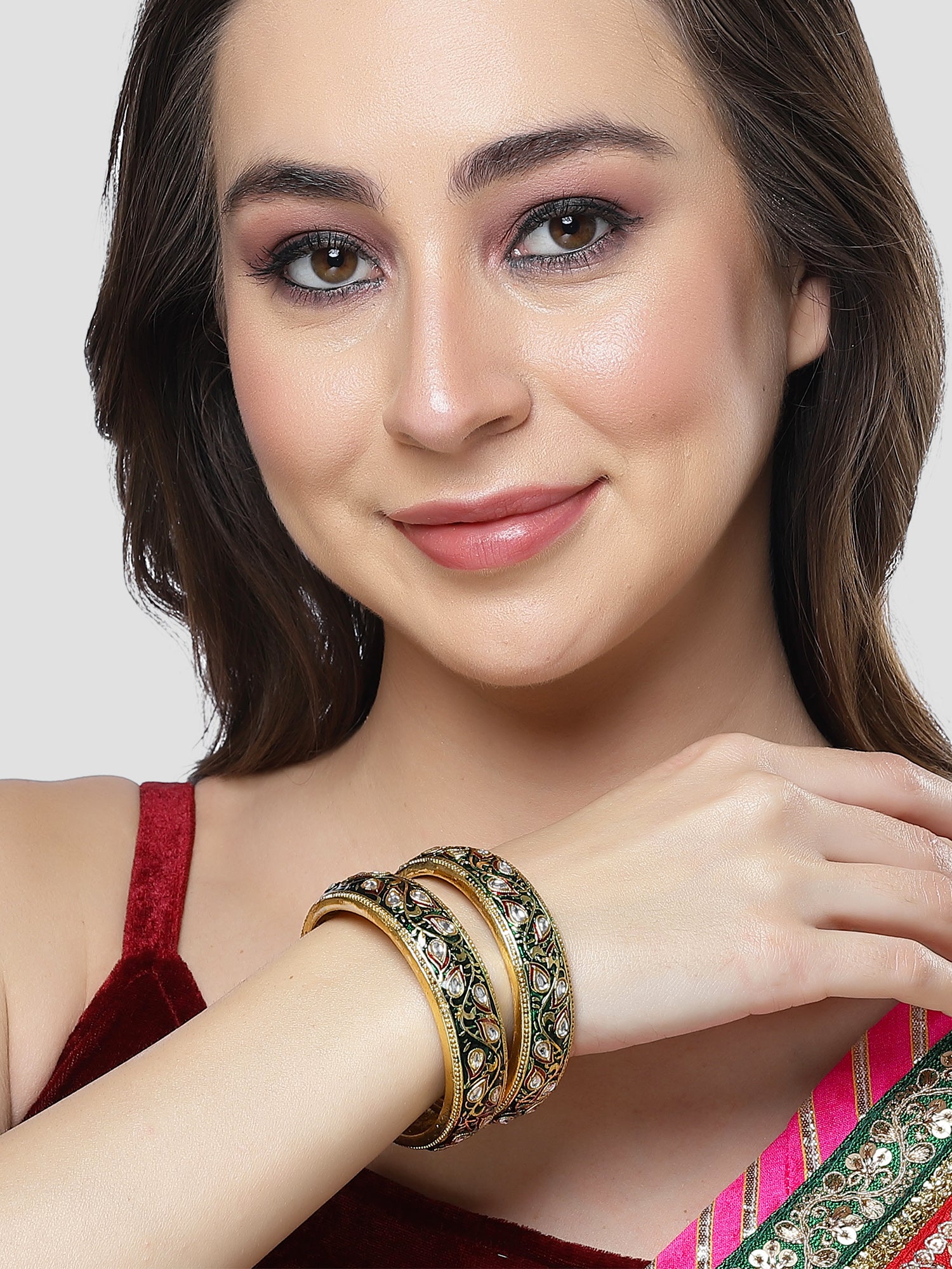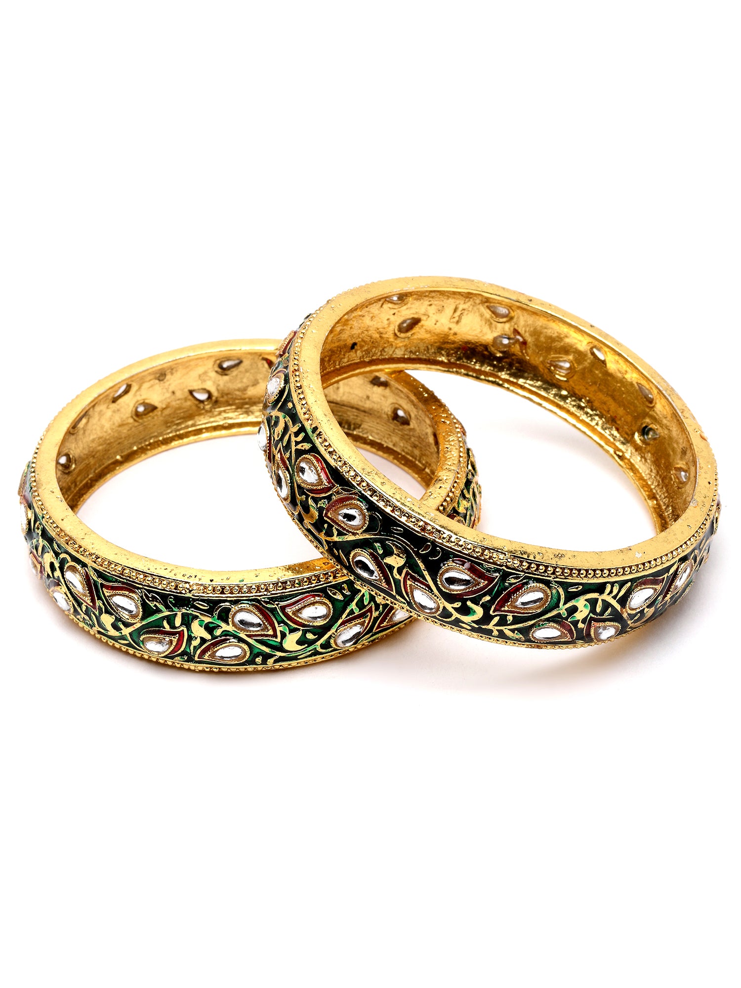 Karatcart Set of 2 Antique Green Meena Gold Plated Bangles for Women
