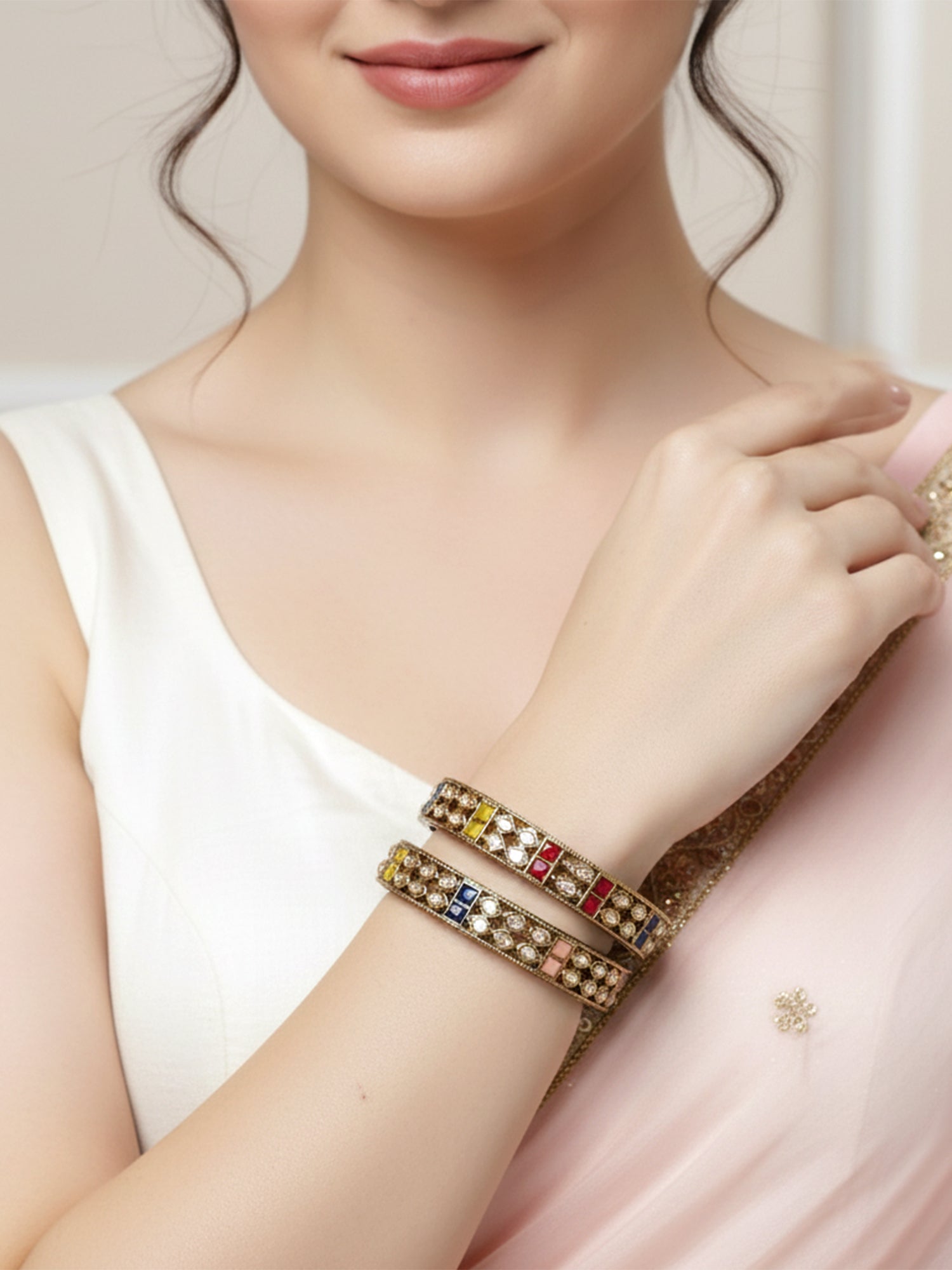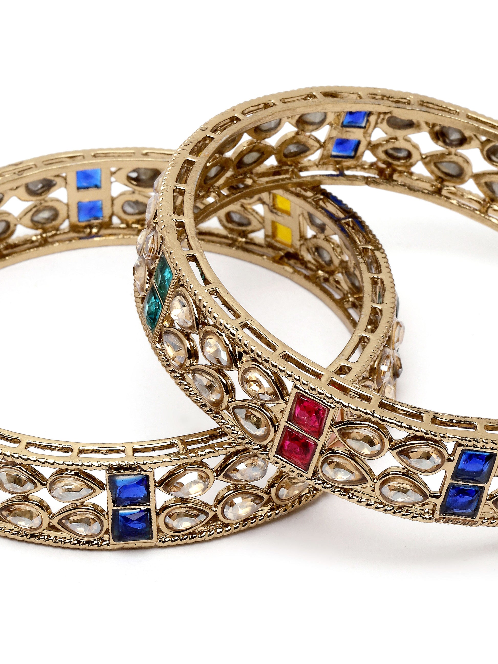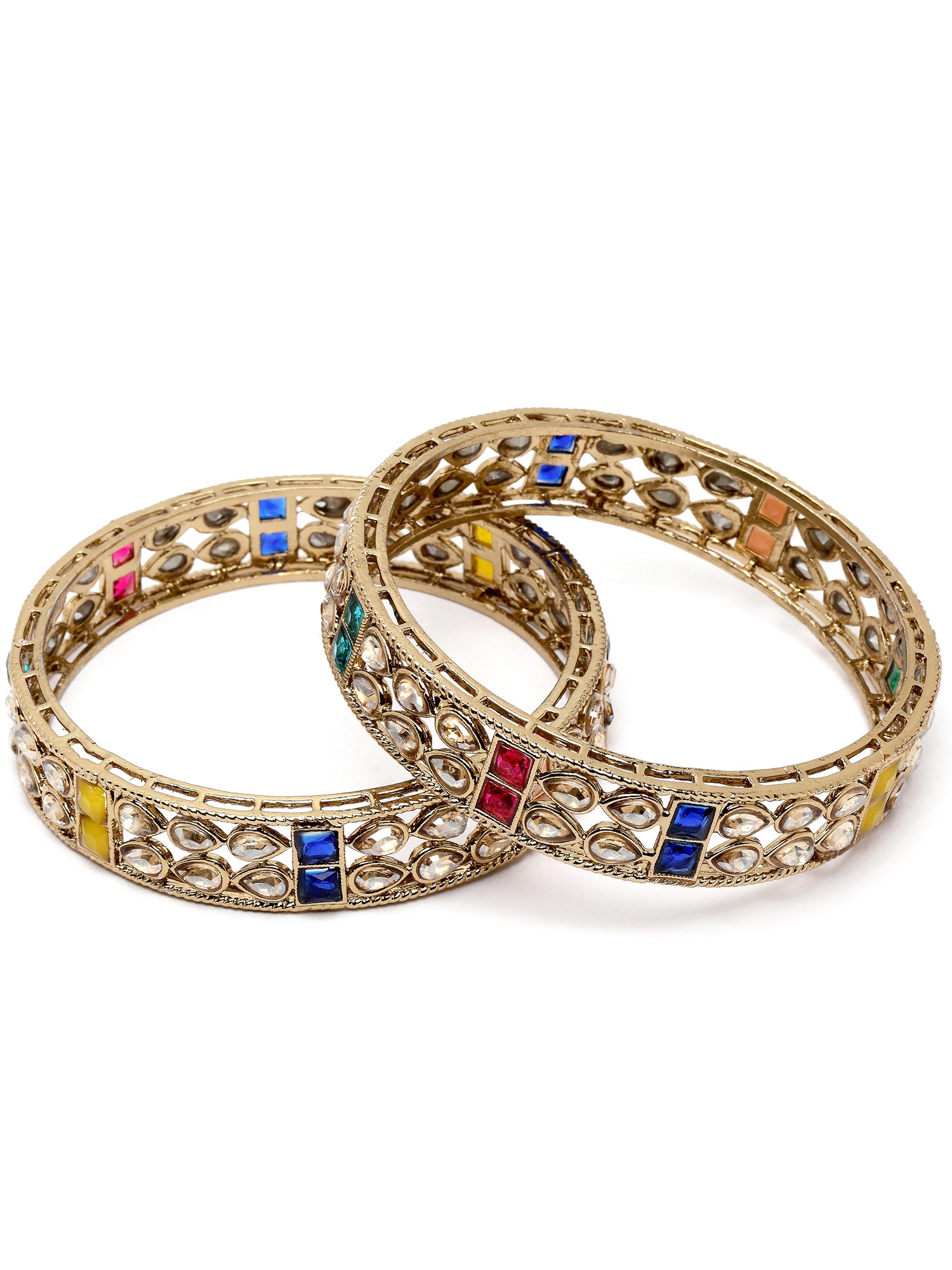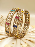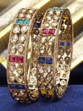 Karatcart Set of 2 Antique Gold Plated Drop Shape Multicolor Stone Rajwadi Bangles for Women