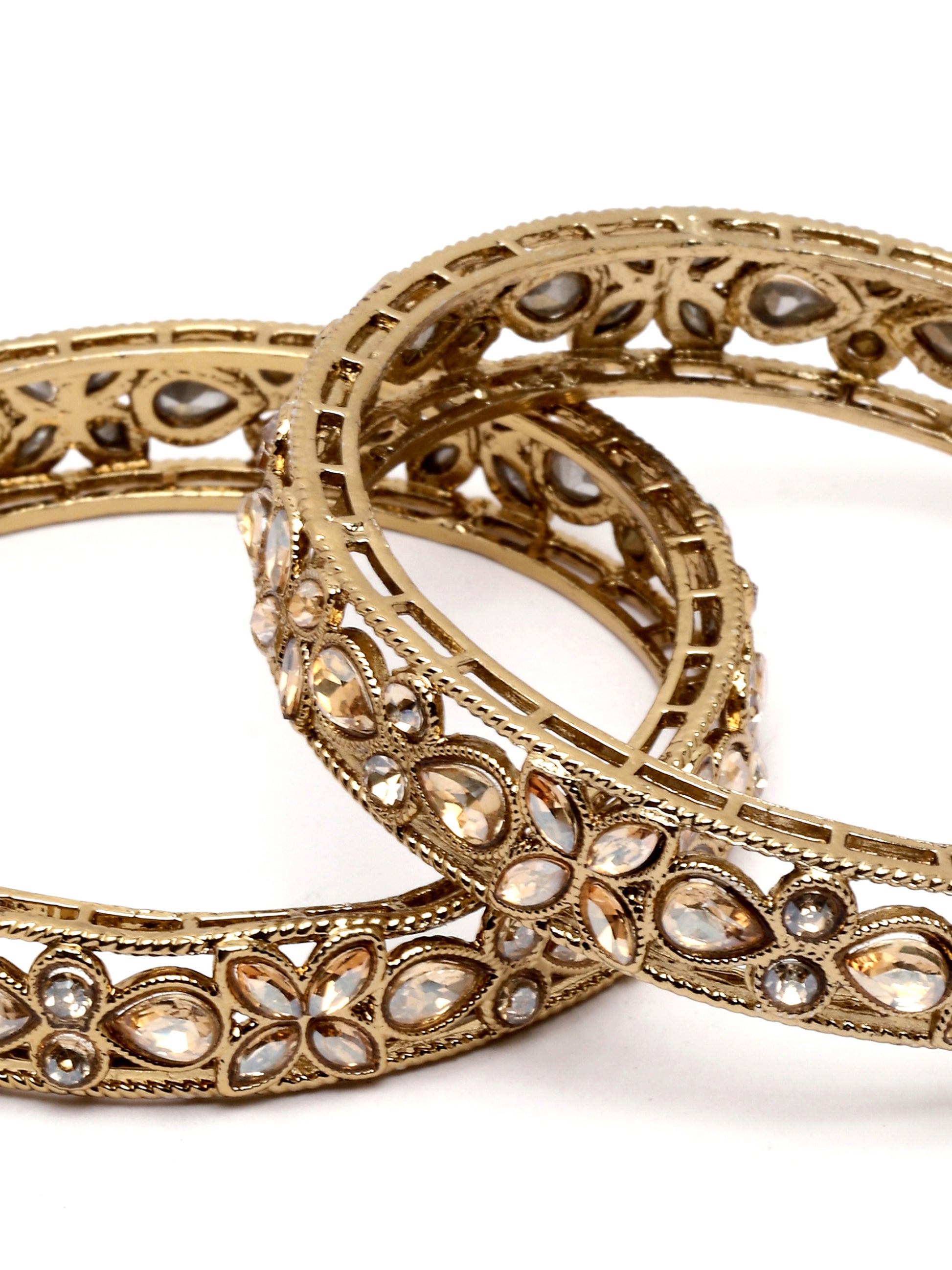 Karatcart Set of 2 Antique Gold Plated Floral Shape Rajwadi Bangles for Women