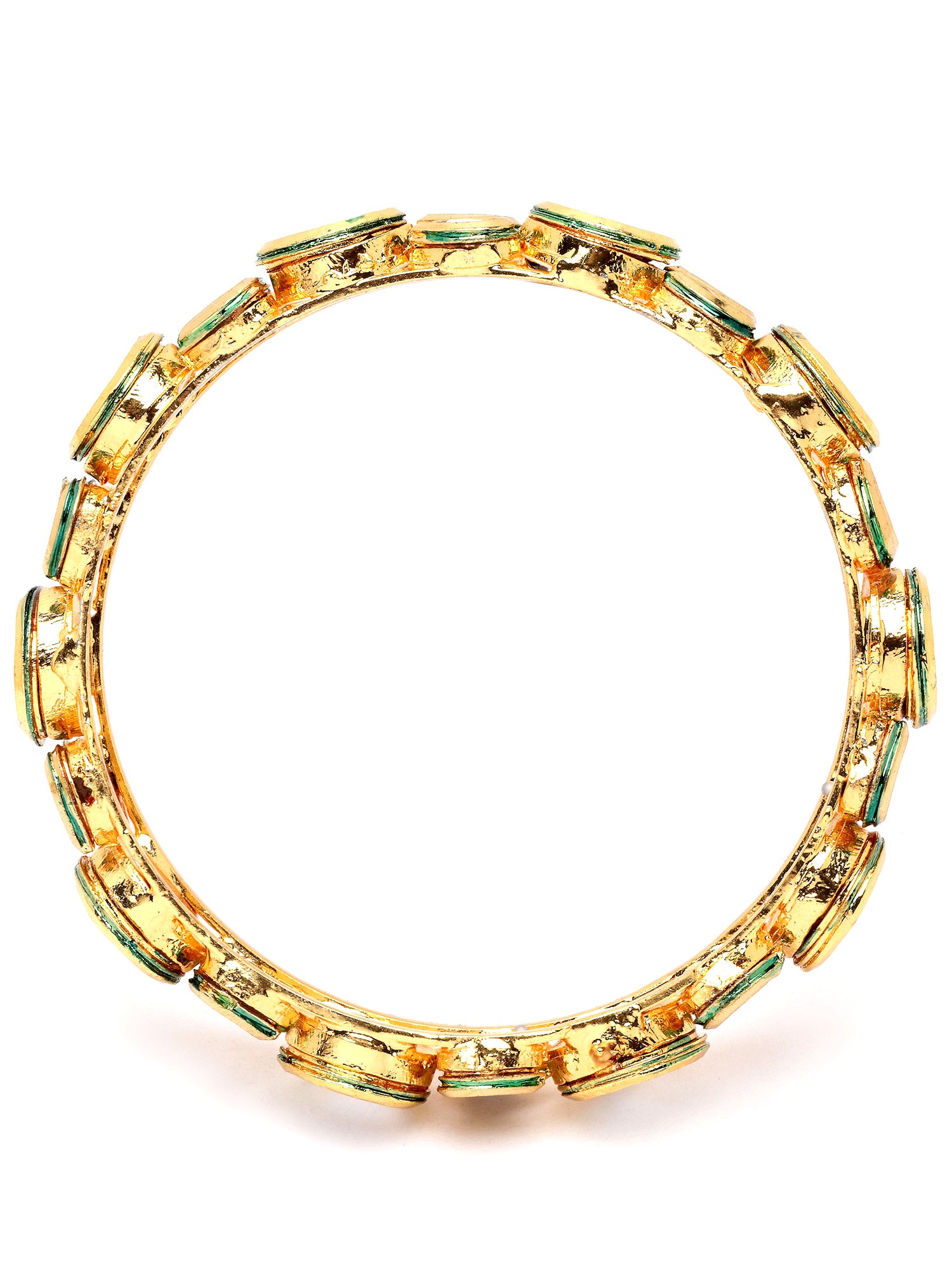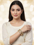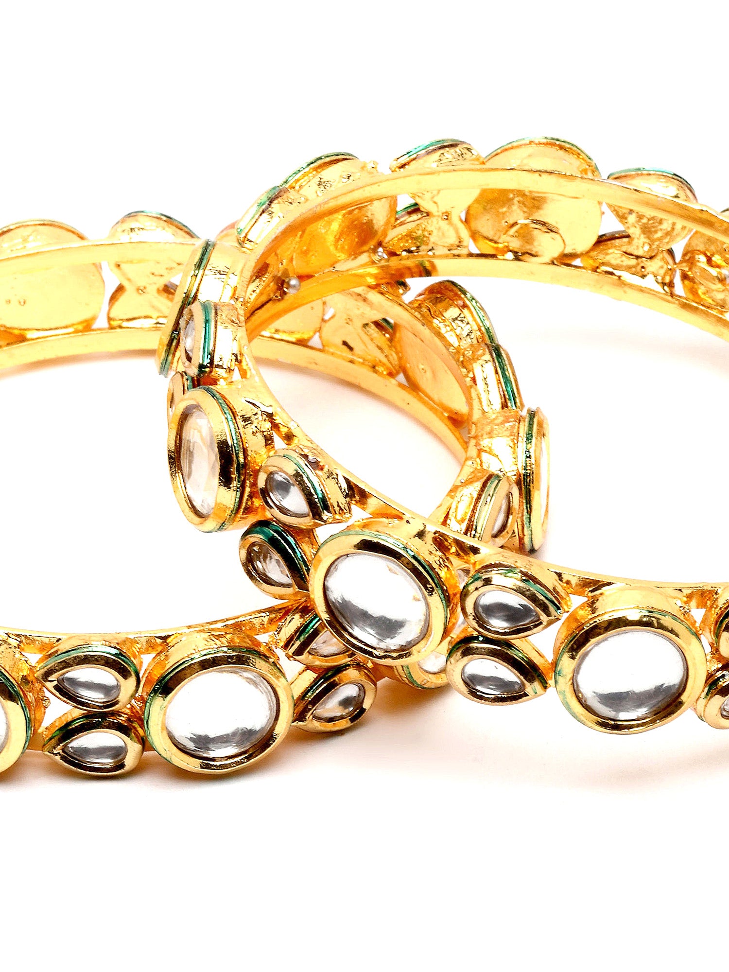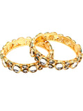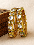 Karatcart Set of 2 Gold Plated Round Polki Kundan Bangles for Women