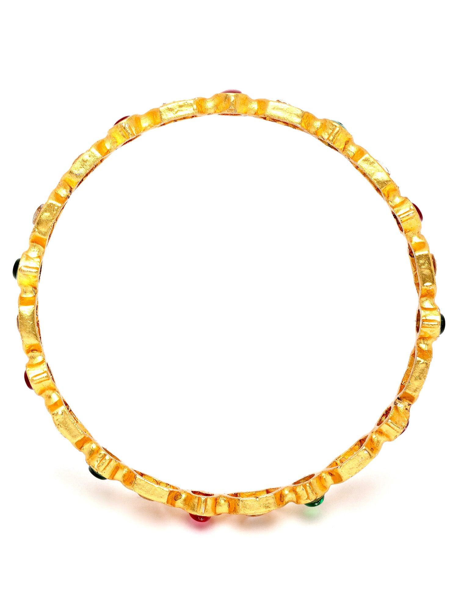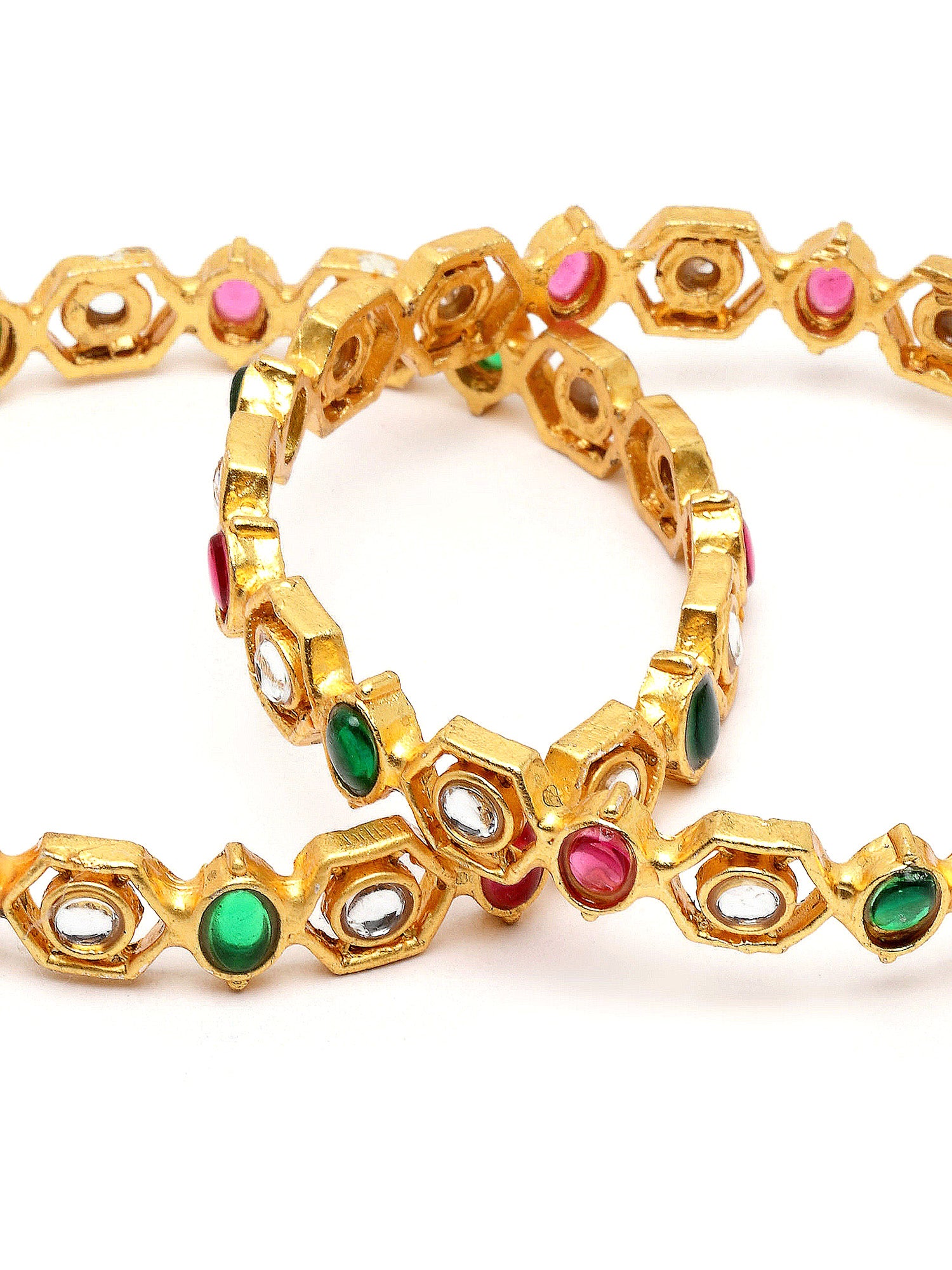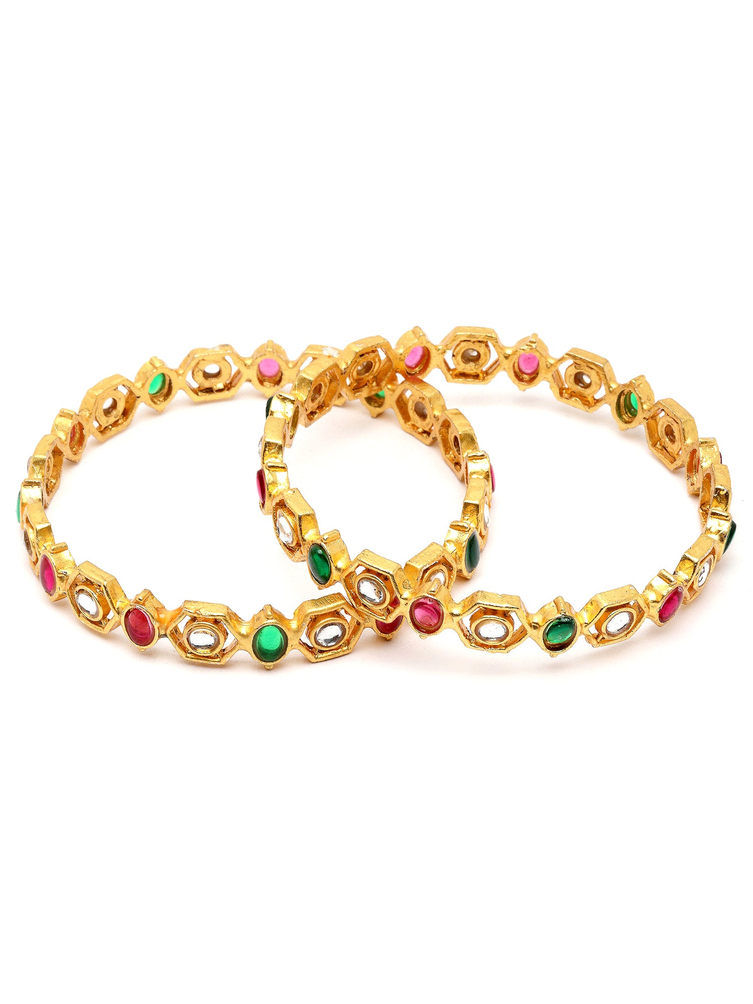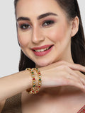 Karatcart Set of 2 Gold Plated Kundan Red and Green Stone Bangles for Women