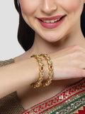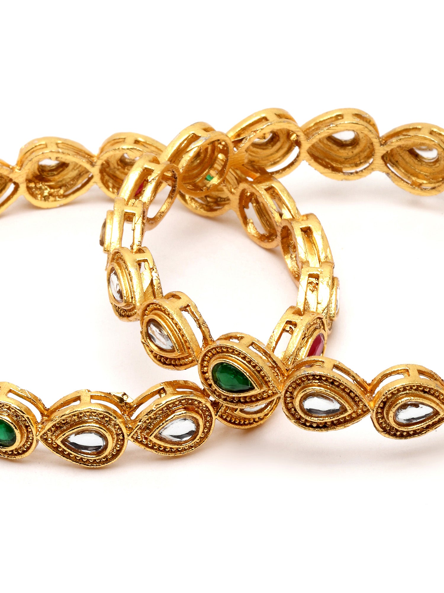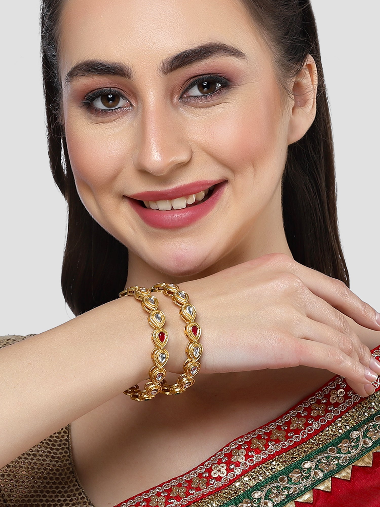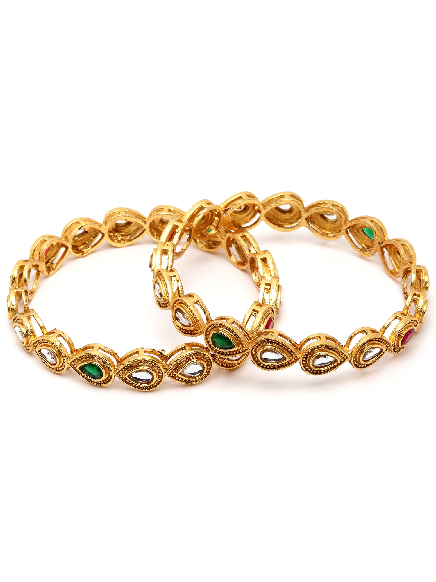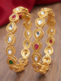 Karatcart Gold Plated Set of 2 Drop Shape Kundan Bangles for Women