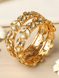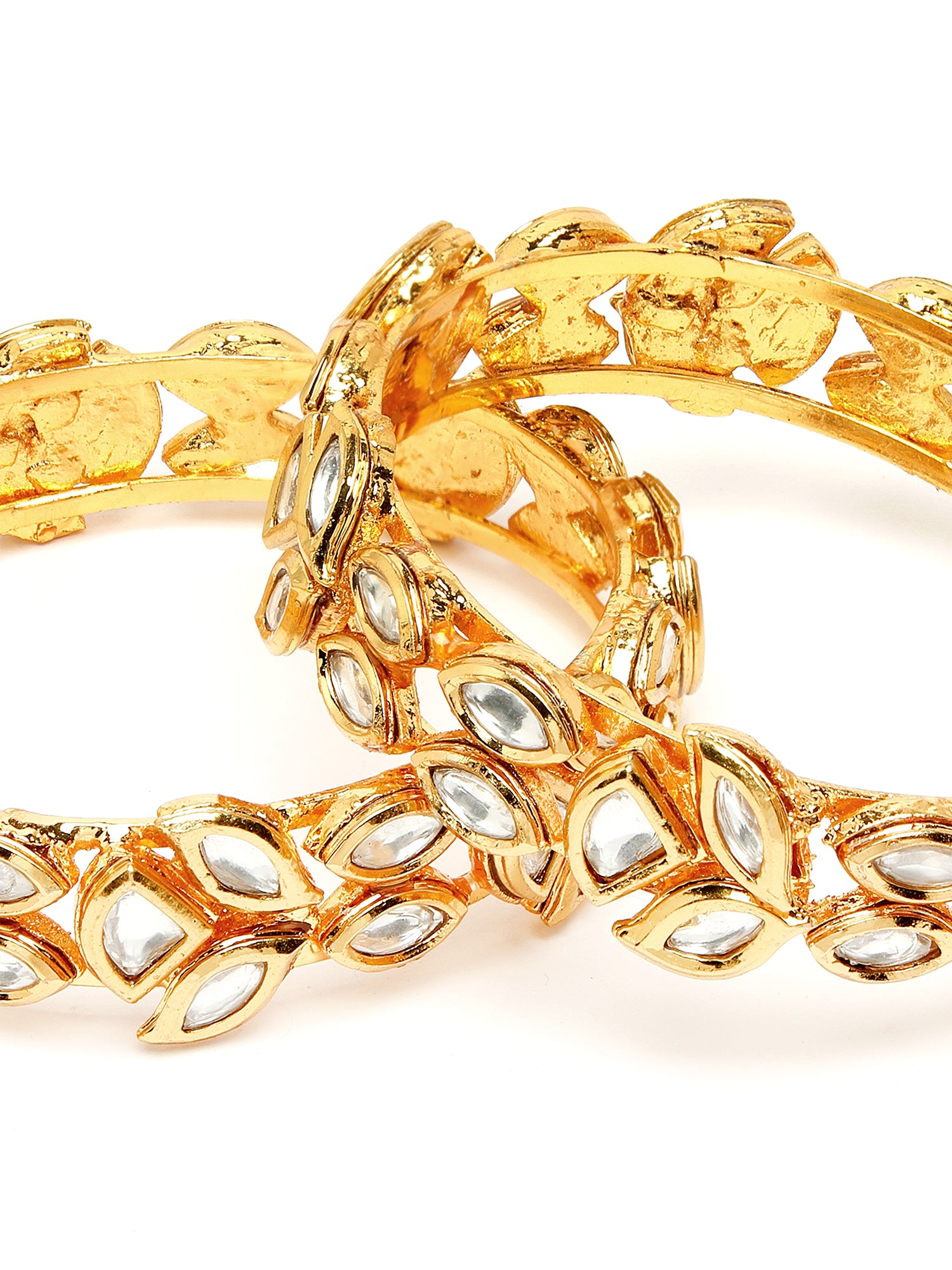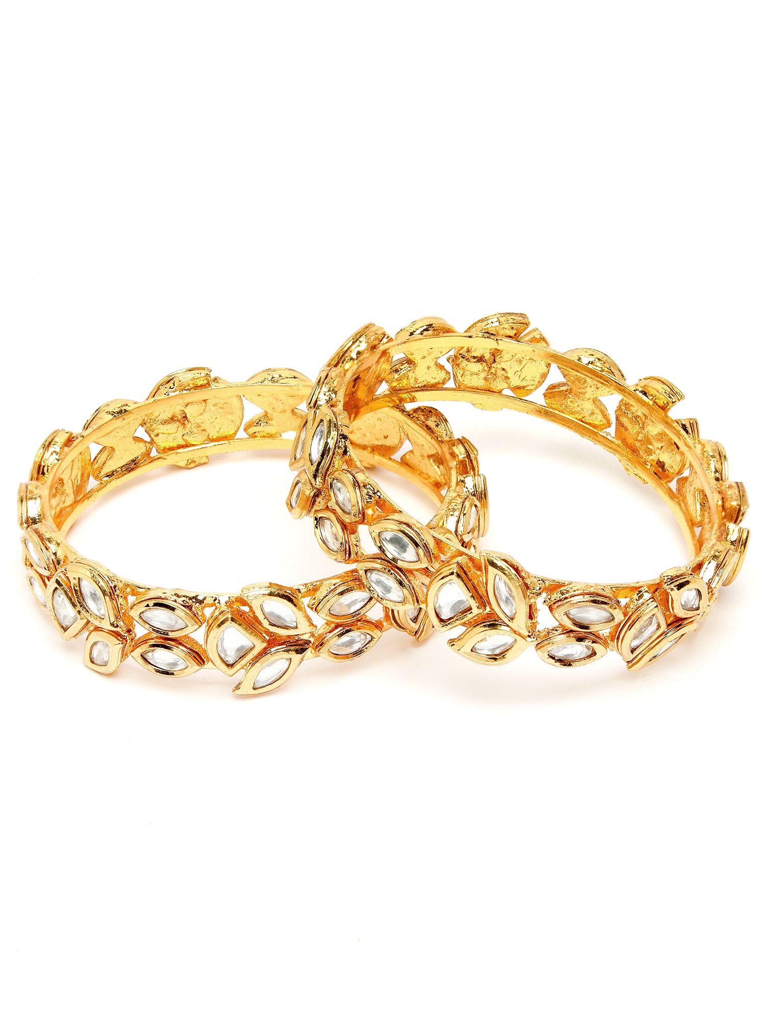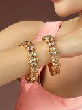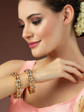 Karatcart Set of 2 Polki Gold-Plated Pearl Studded Bangles for Women