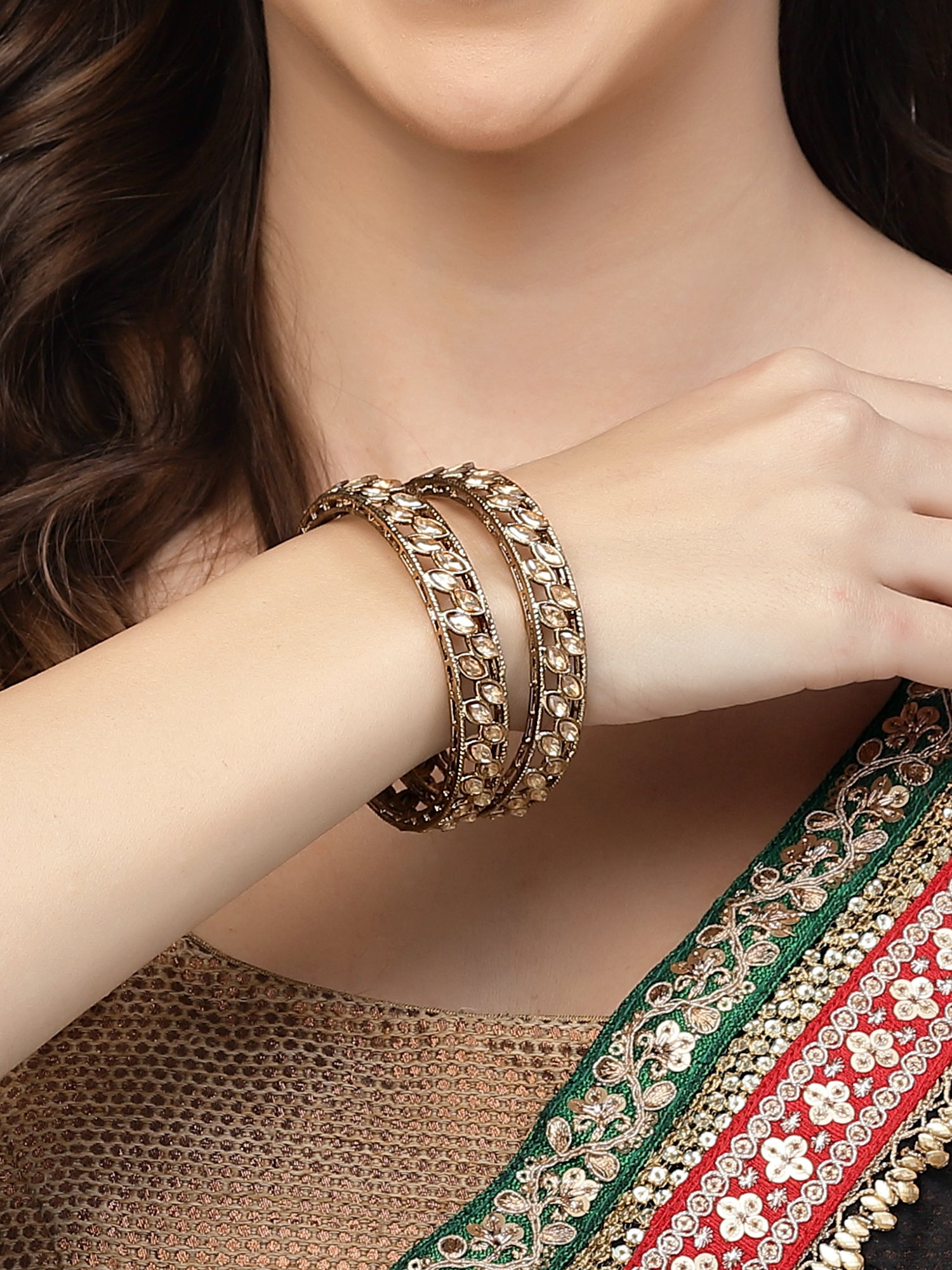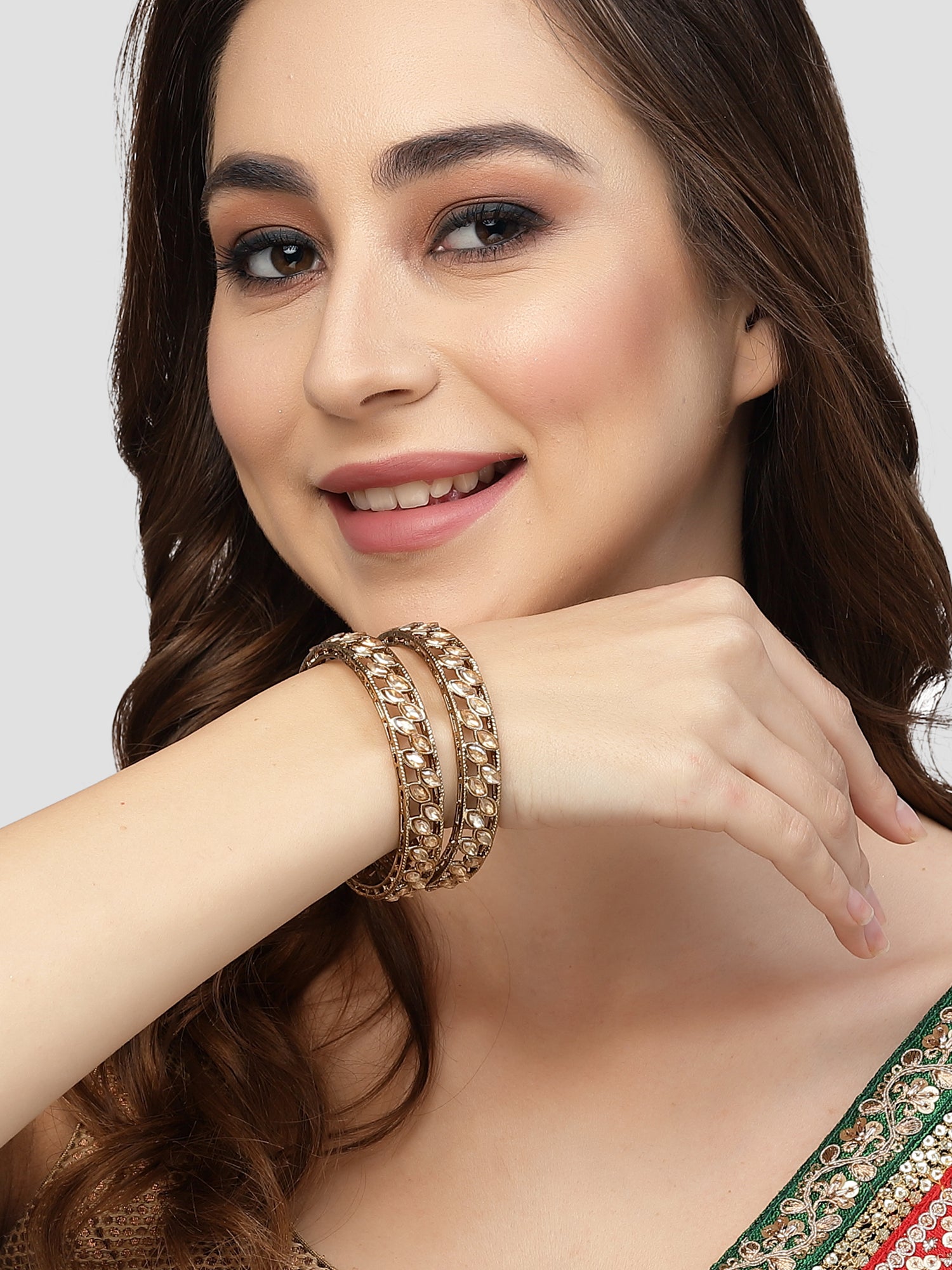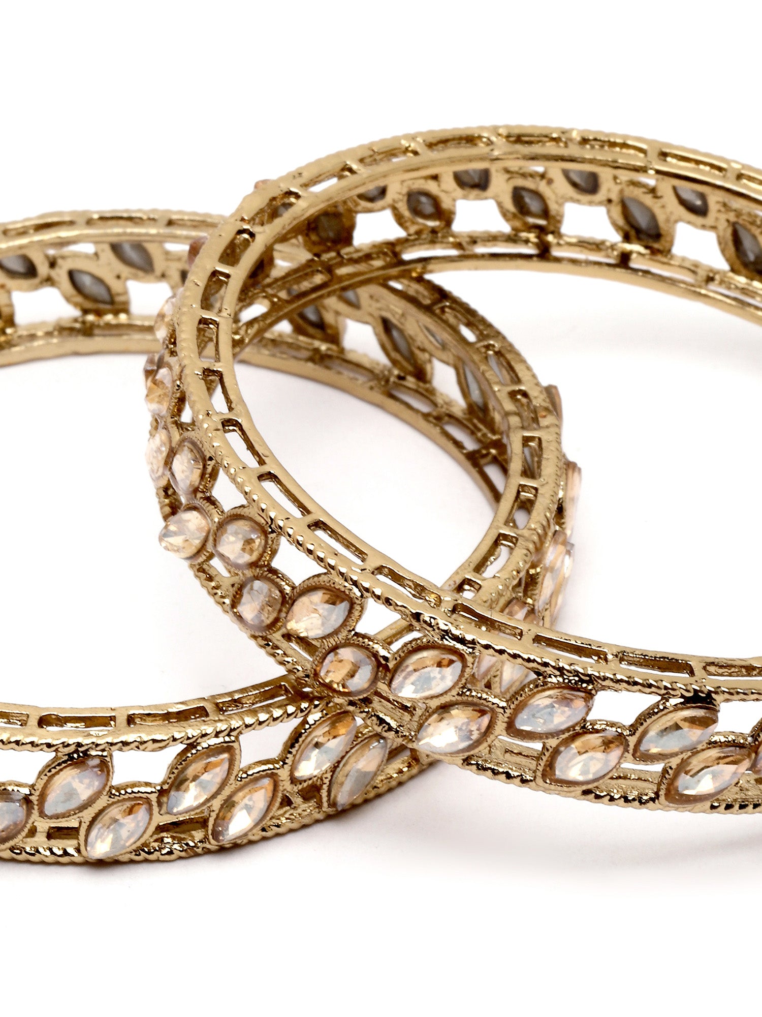 Karatcart Set of 2 Kundan Studded Antique Gold Plated Bangles for Women