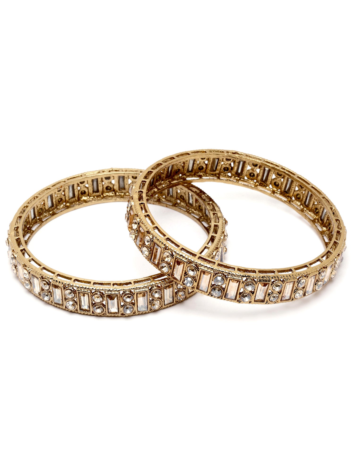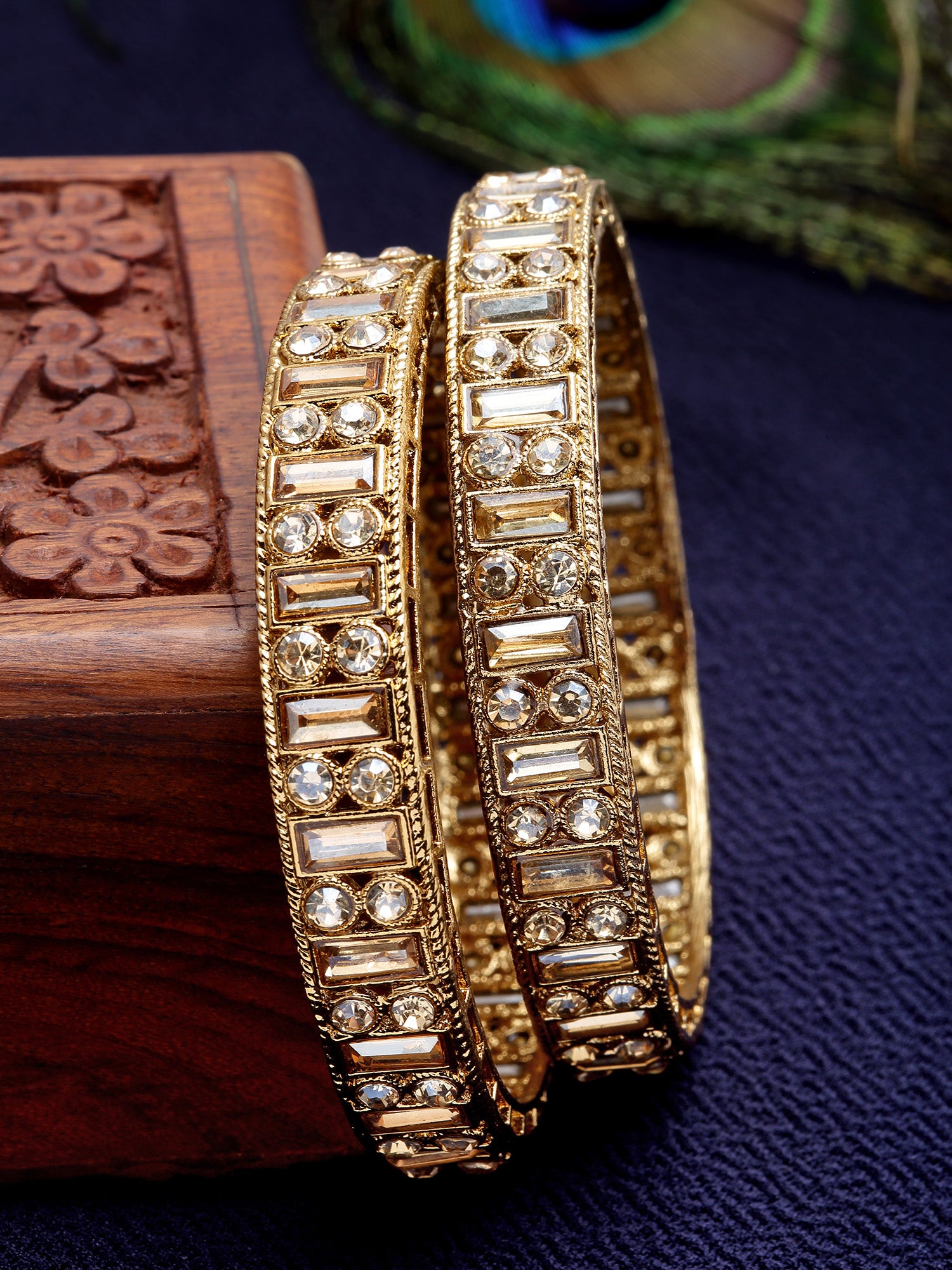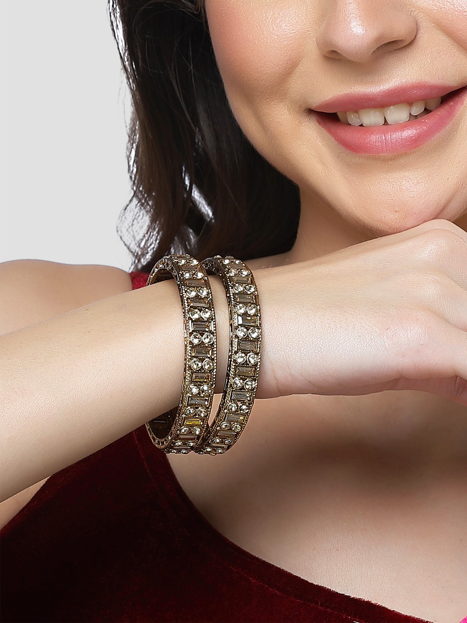 Karatcart Set of 2 Kundan Studded Antique Gold Plated Rajwadi Bangles for Women