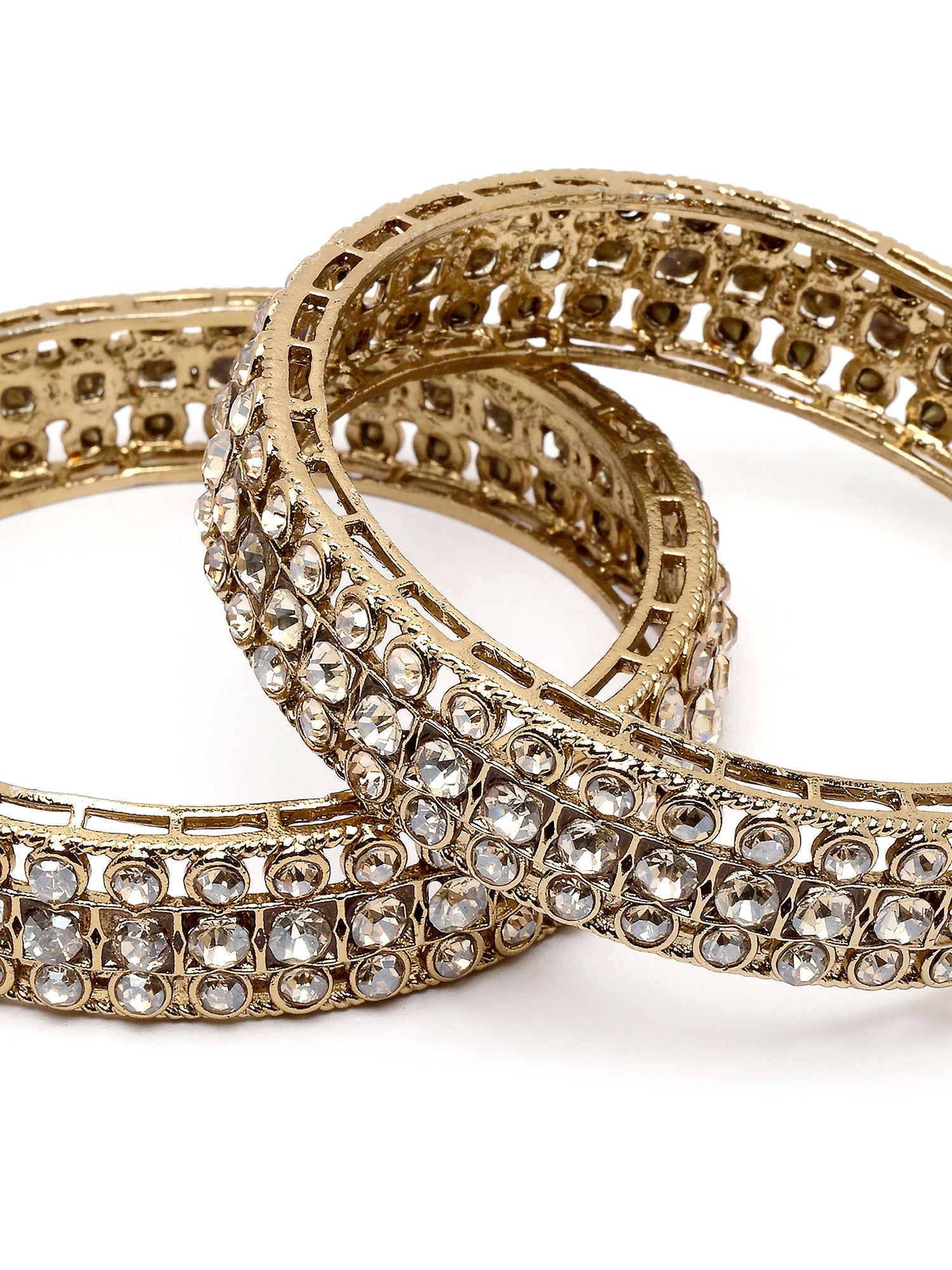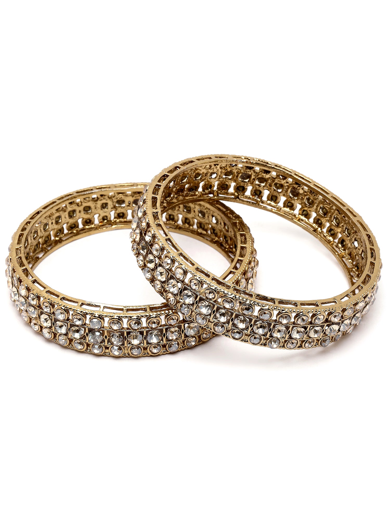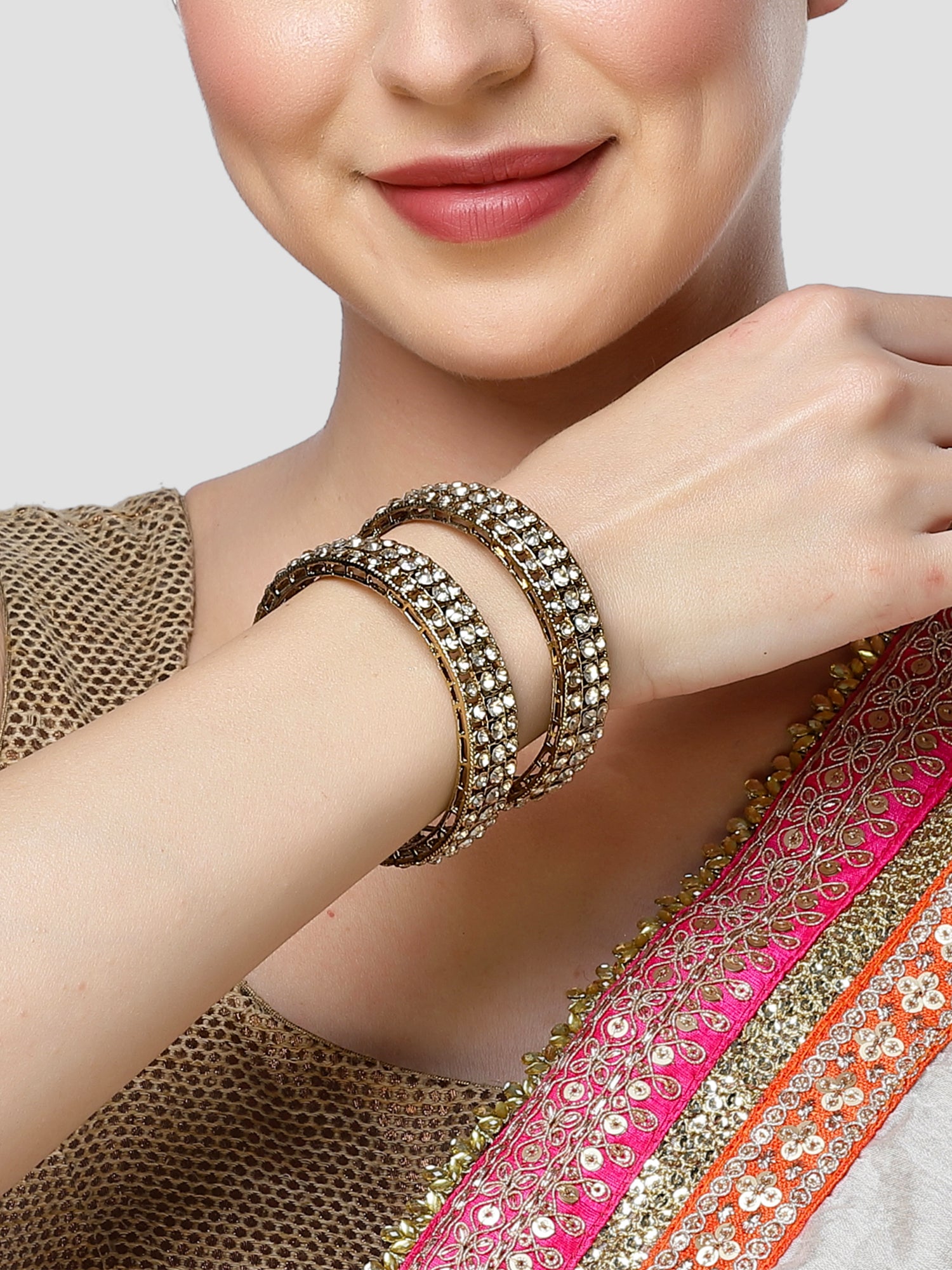 Karatcart Antique Gold Plated Set of 2 Kundan Studded Rajwadi Bangles for Women