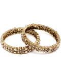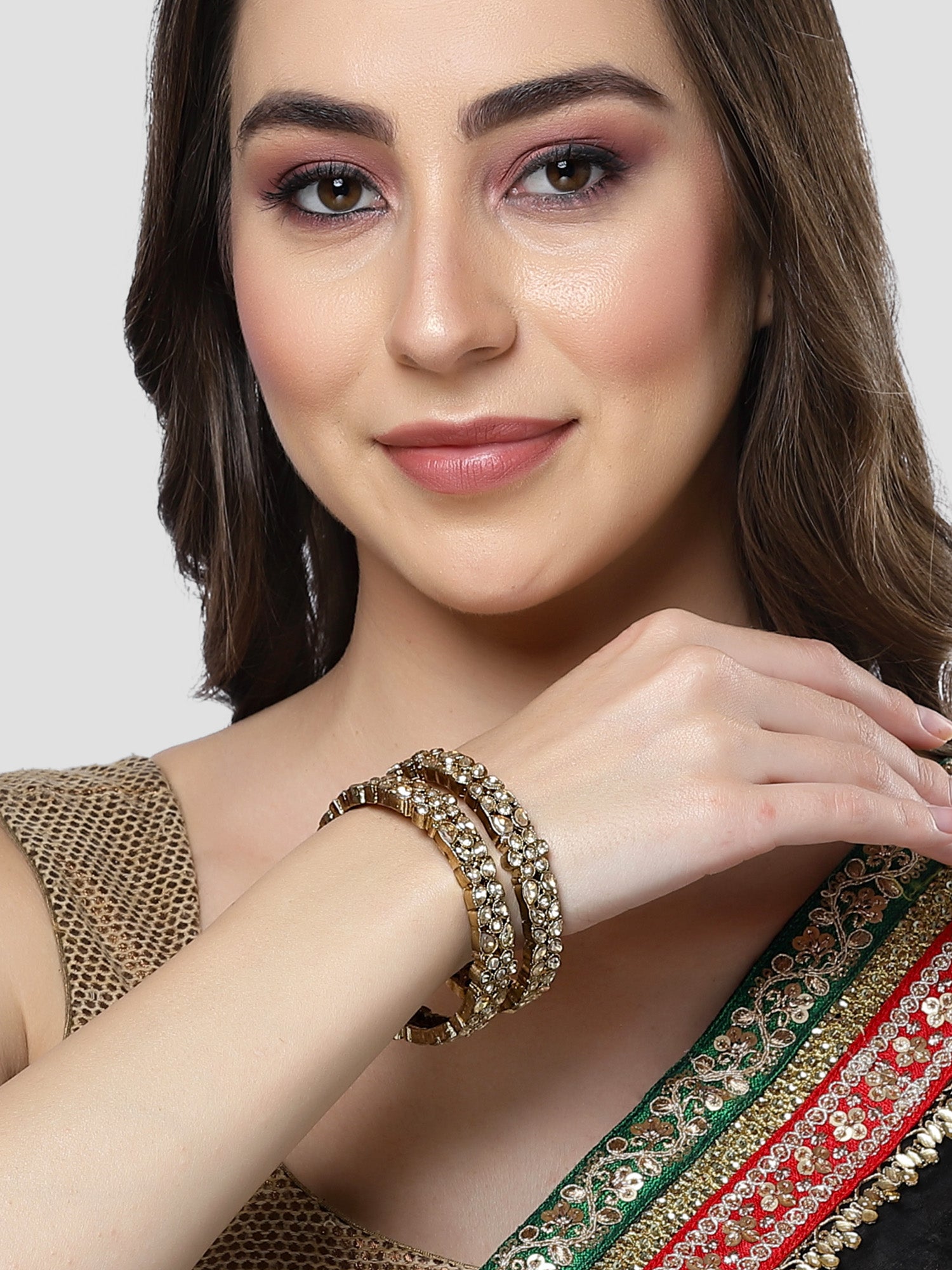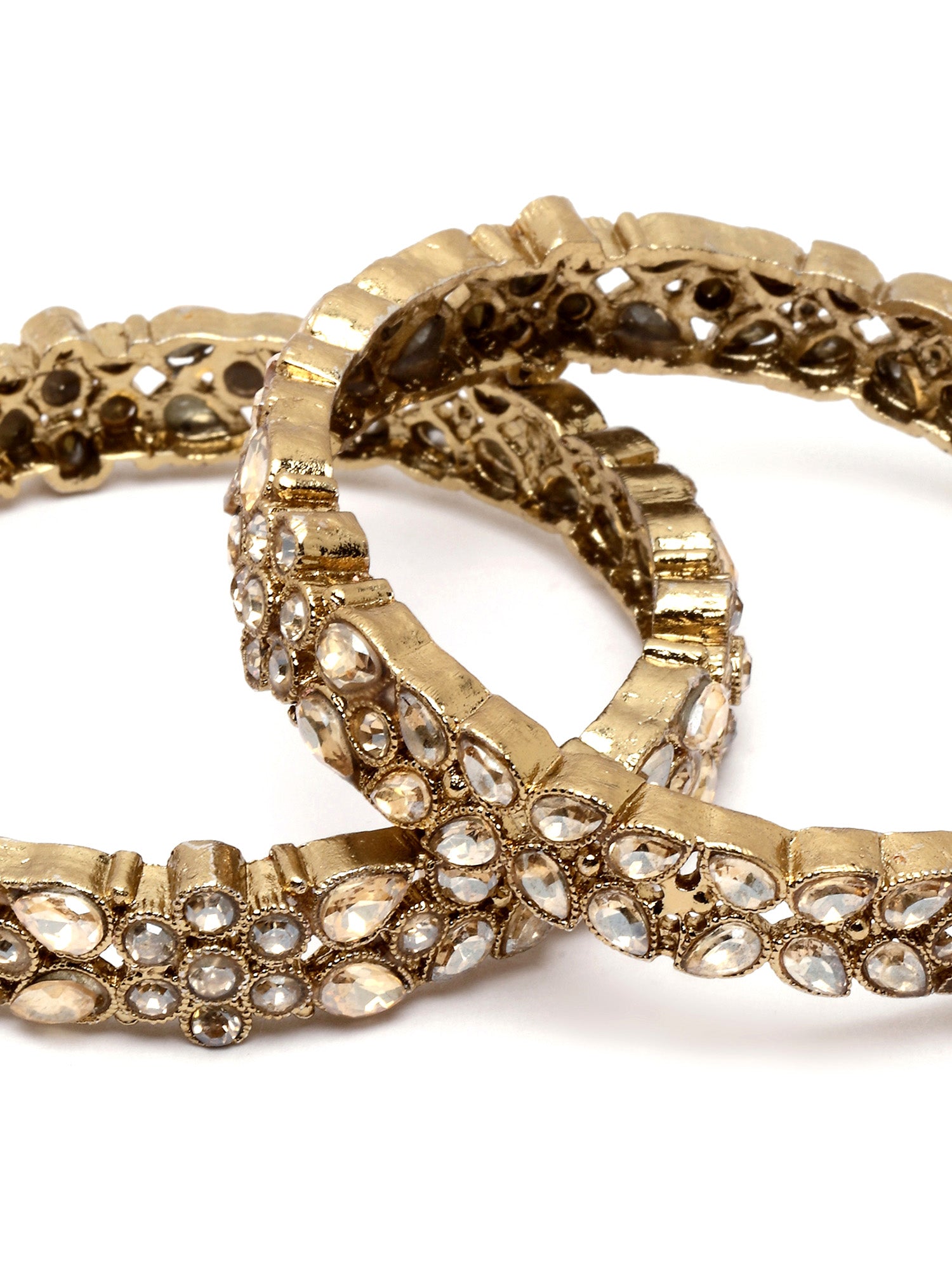 Karatcart Set of 2 Antique Gold Plated Floral Shape Kundan Rajwadi Bangles for Women