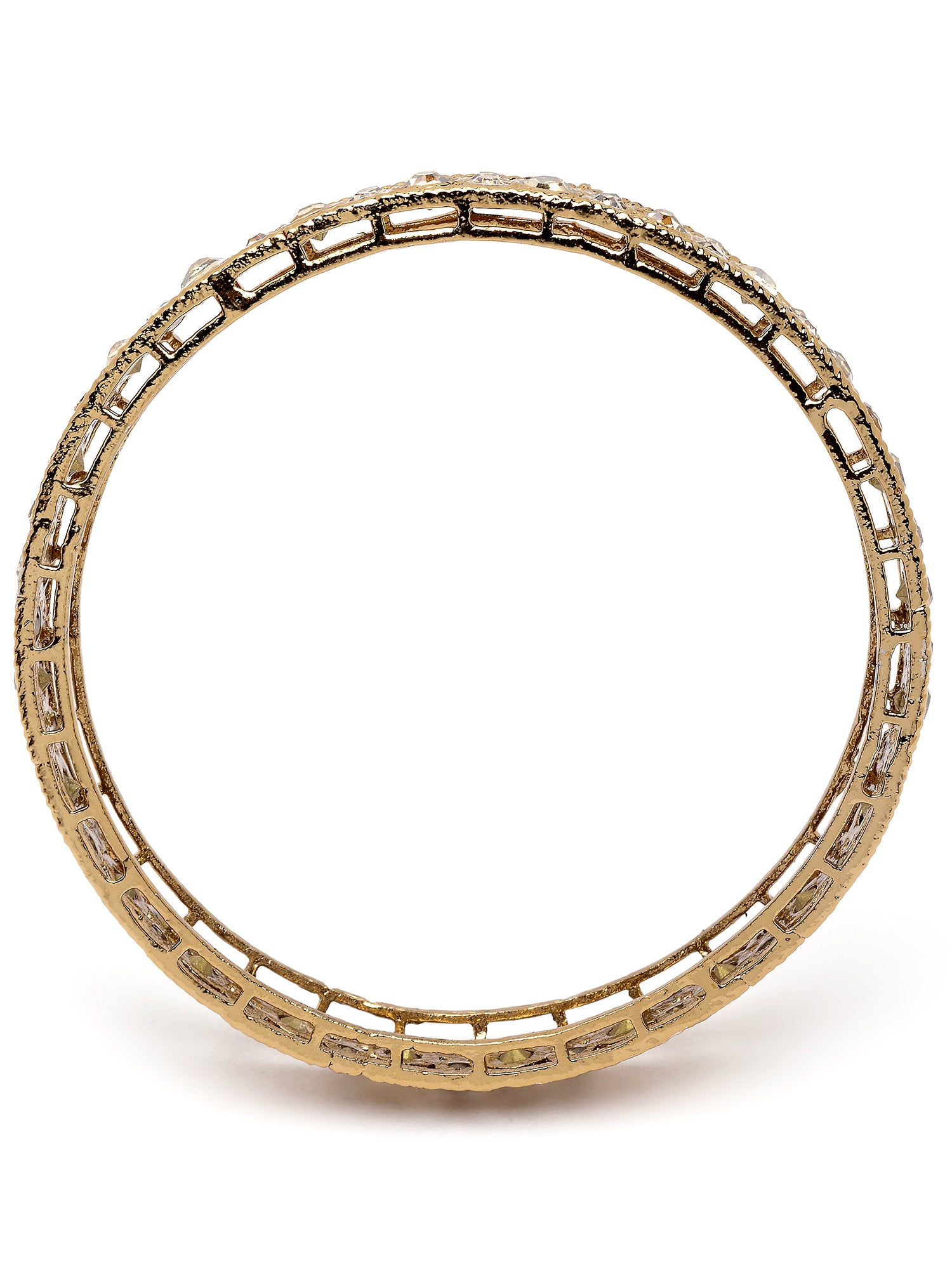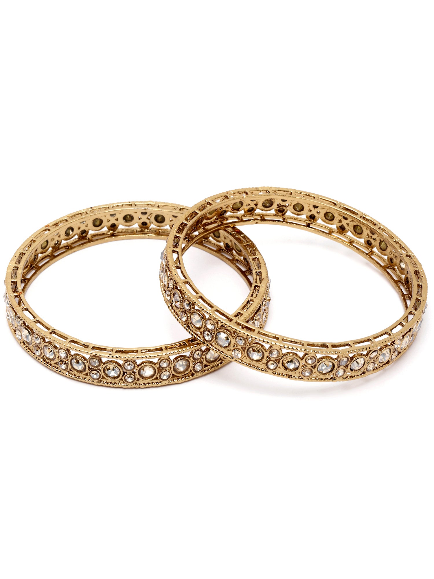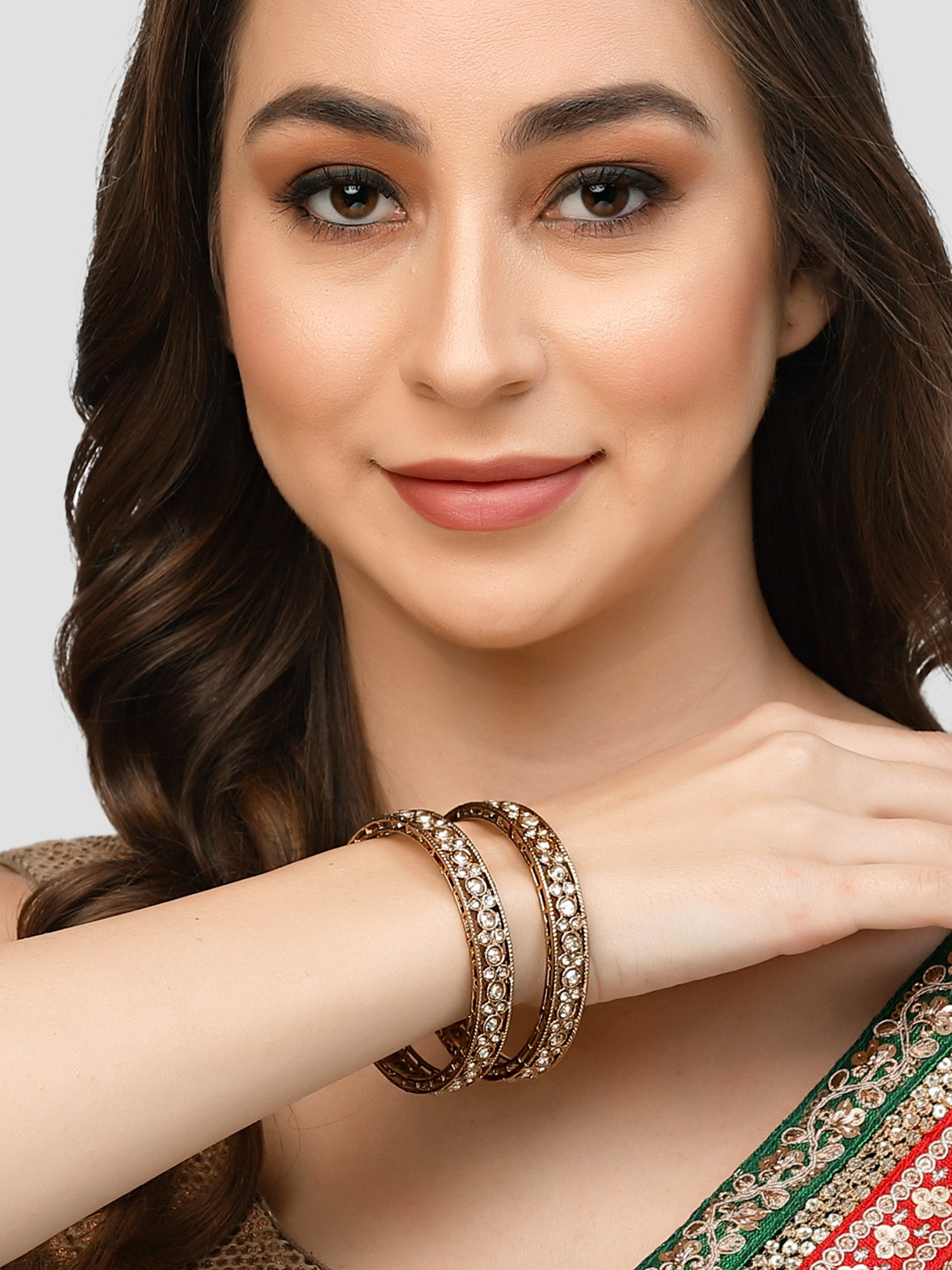 Karatcart Set of 2 Antique Gold Plated Round Shape Kundan Rajwadi Bangles for Women