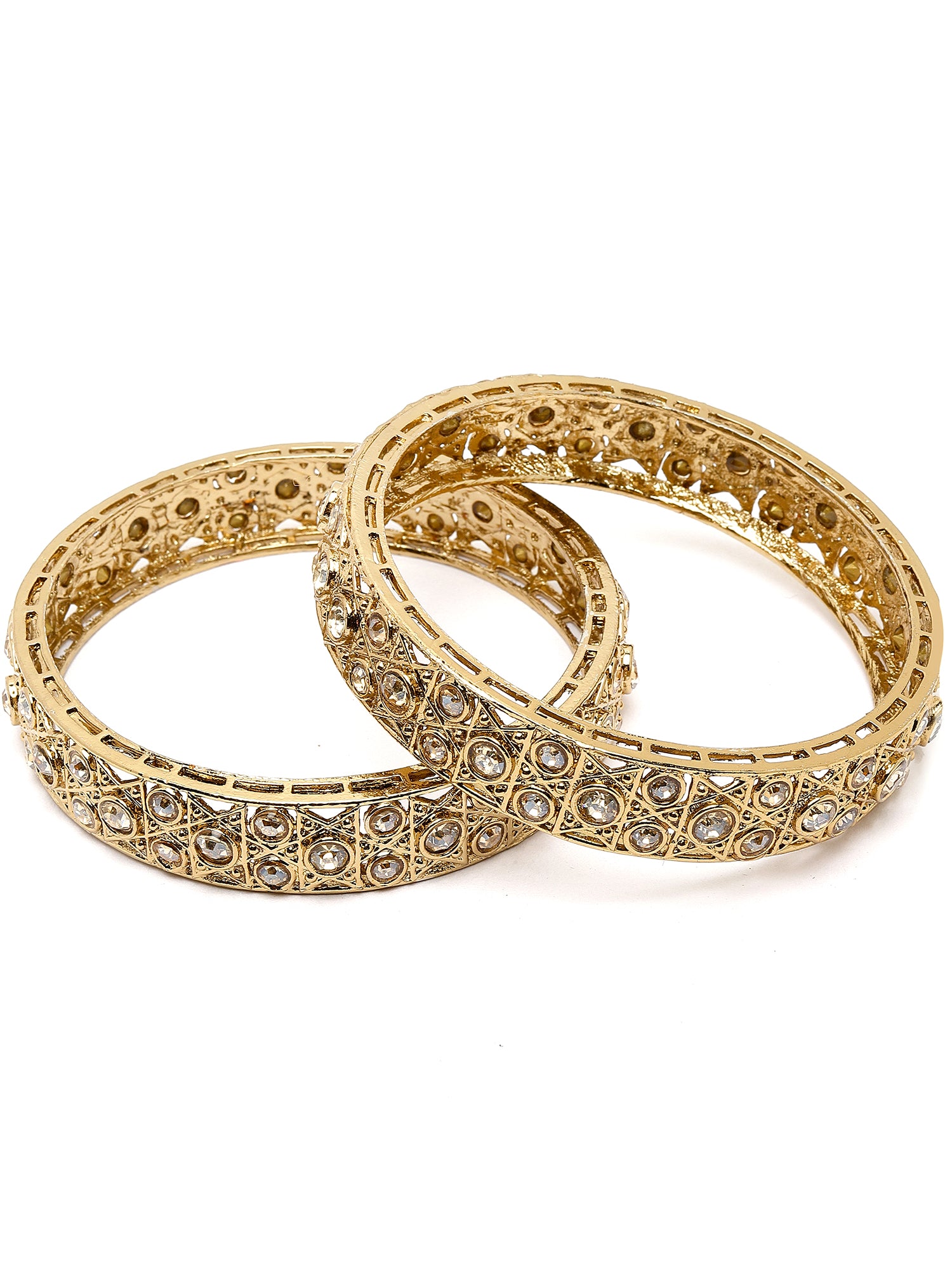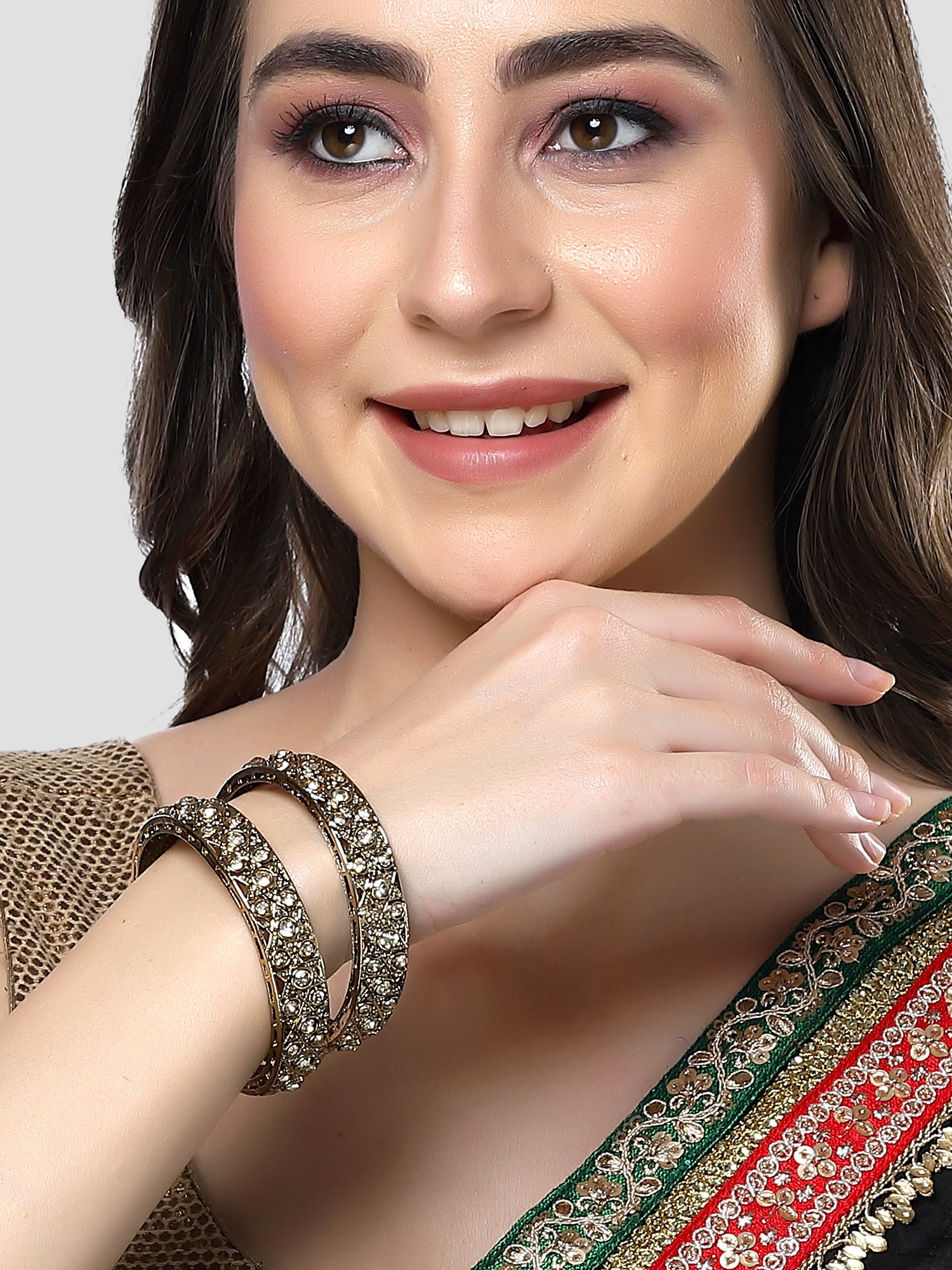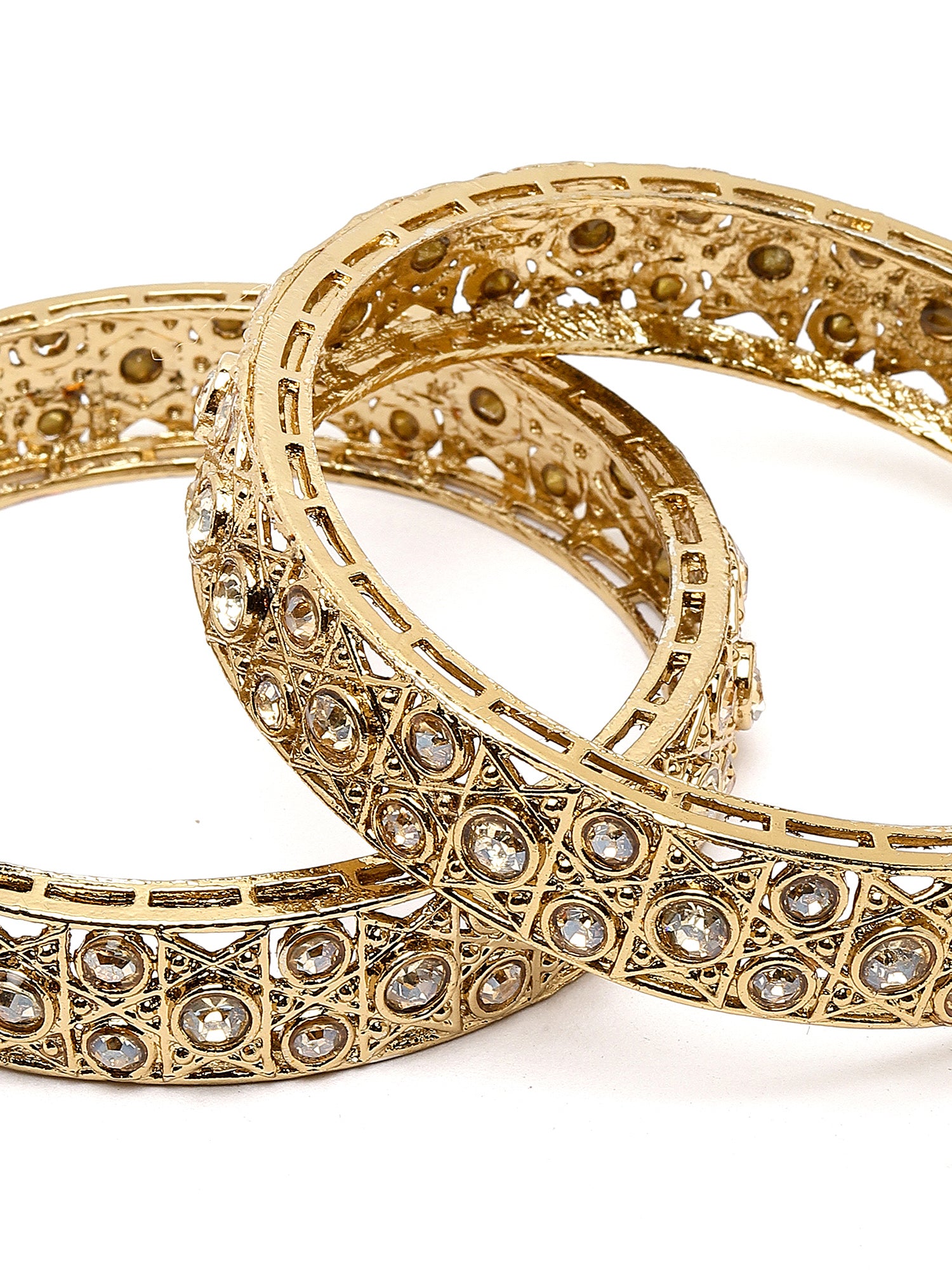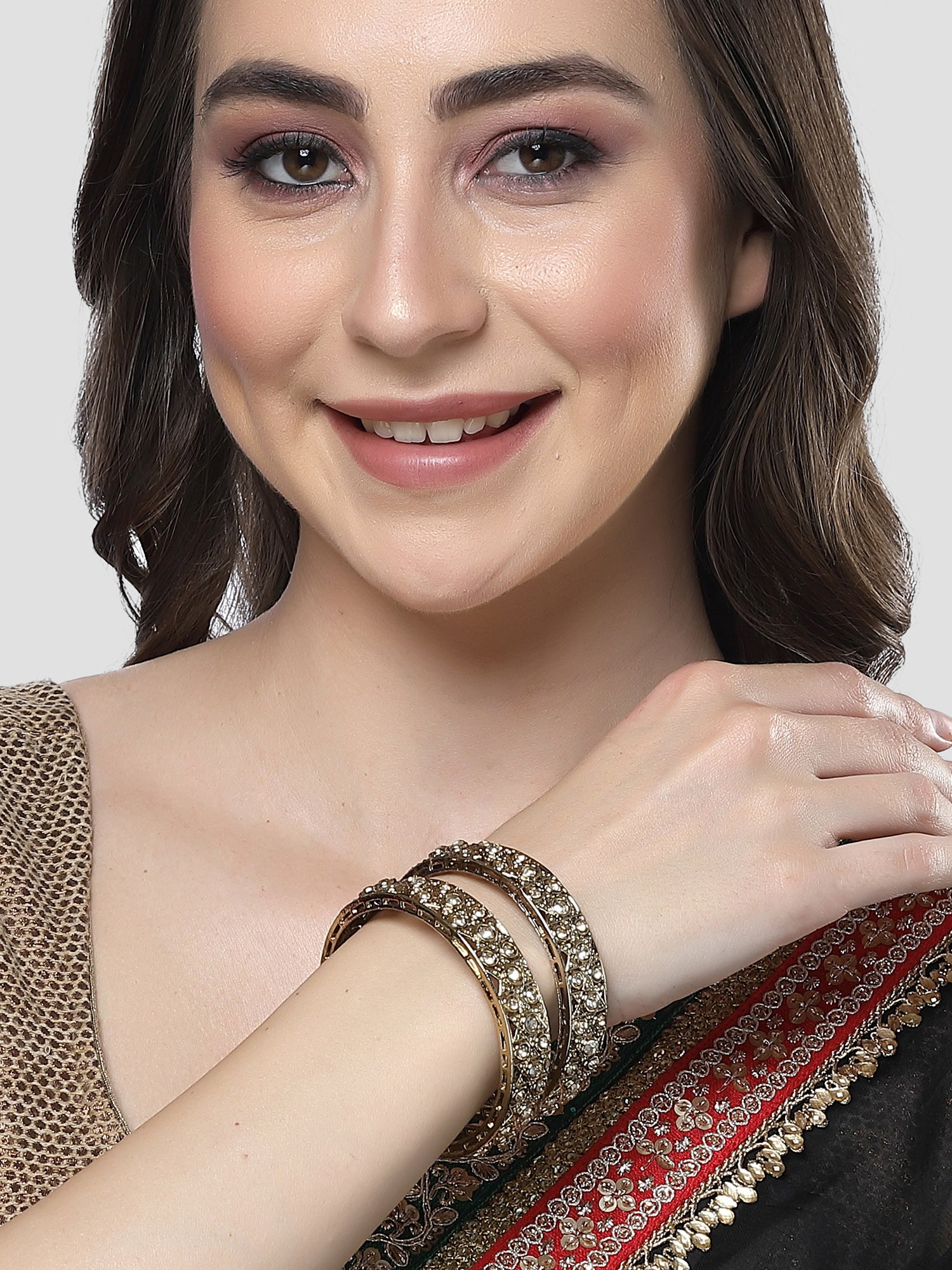 Karatcart Antique Gold Plated Star Design Kundan Studded Bangles for Women