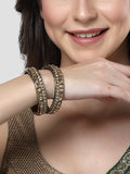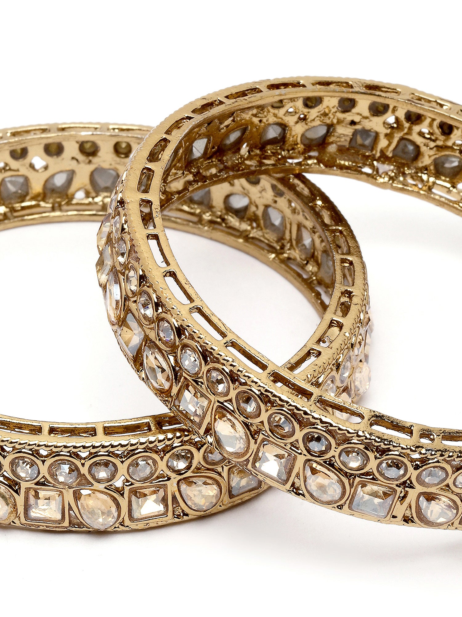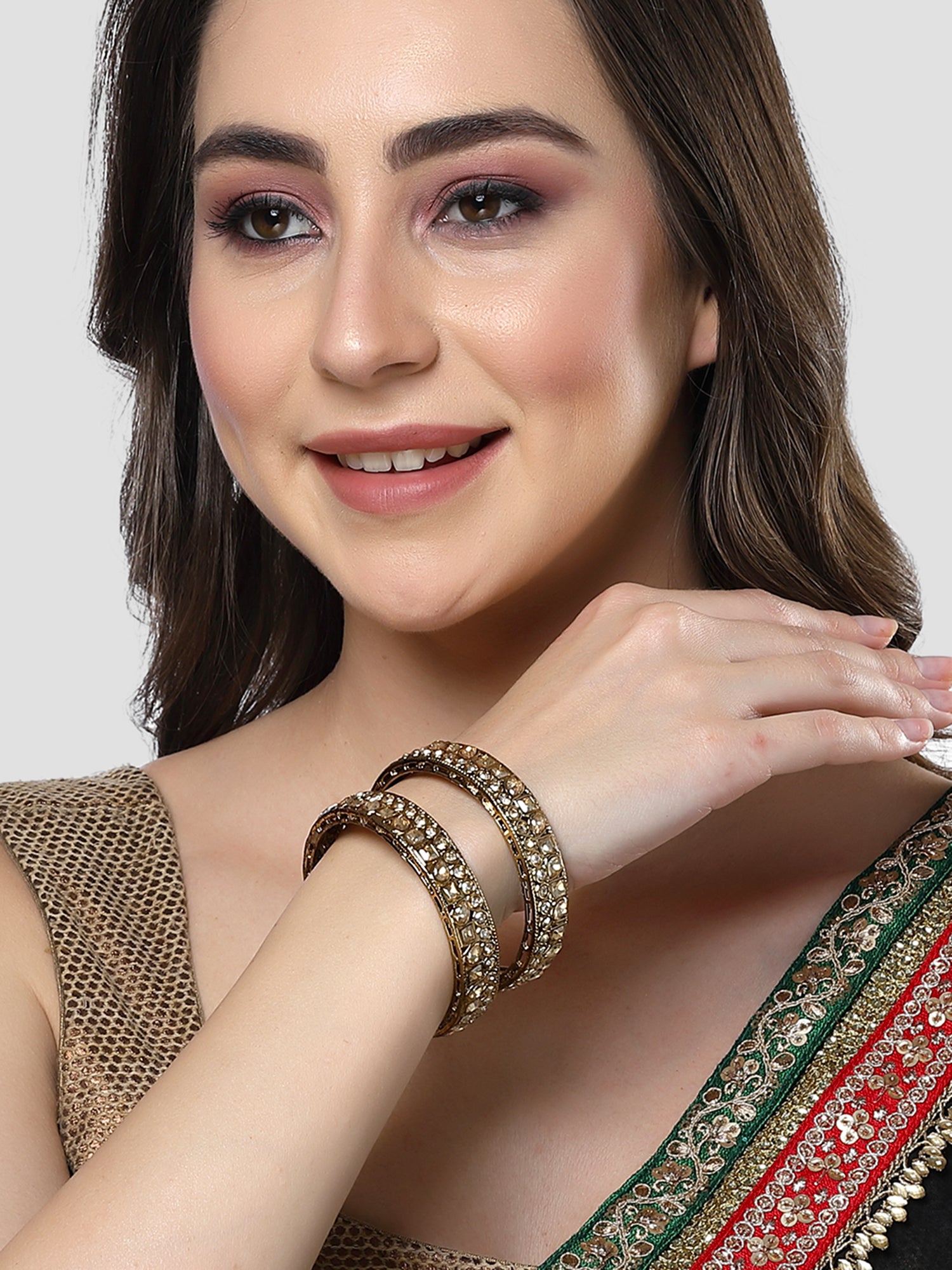 Karatcart Set of 2 Golden Kundan Studded Antique Gold Plated Bangles for Women