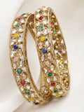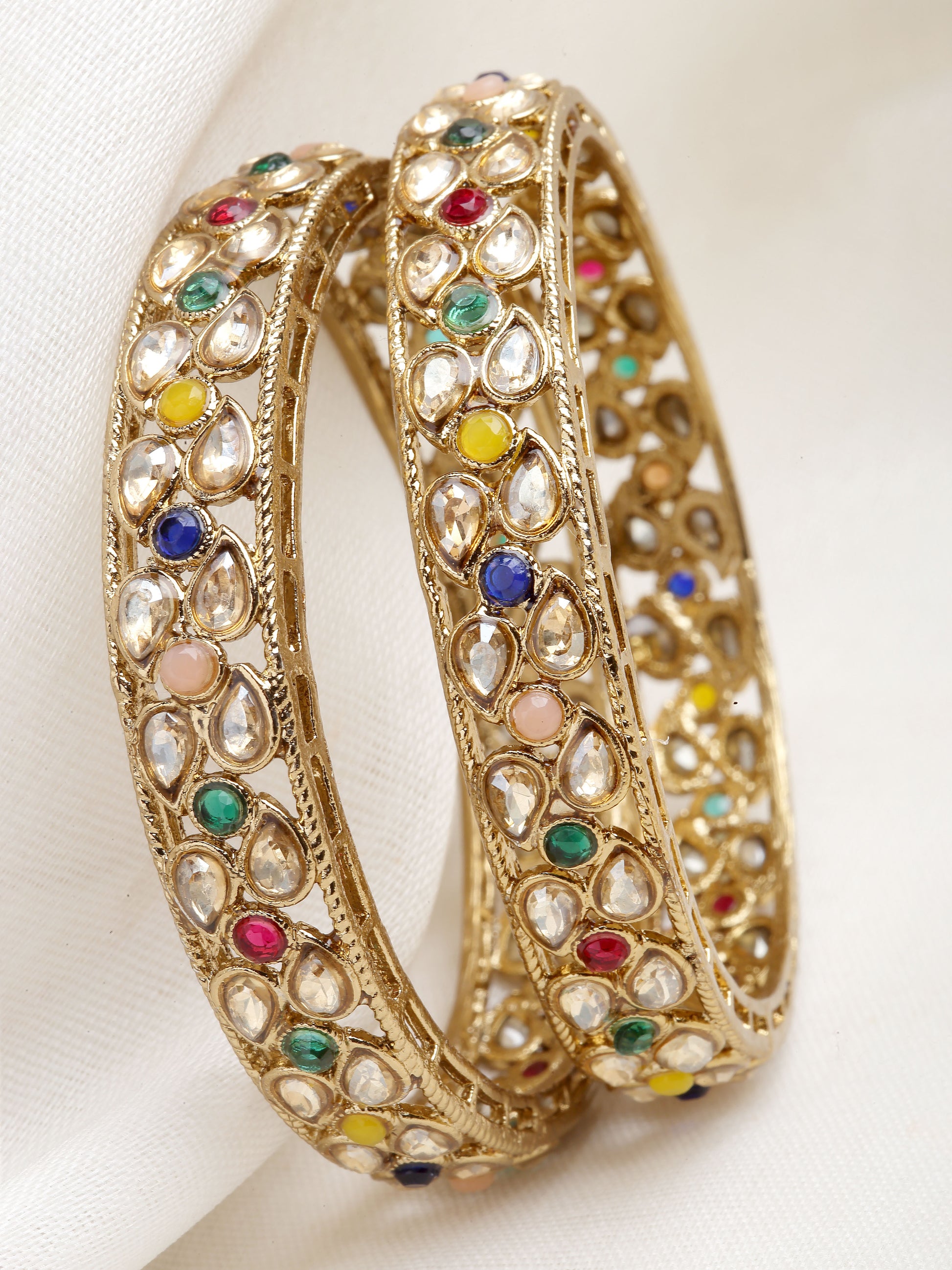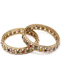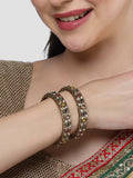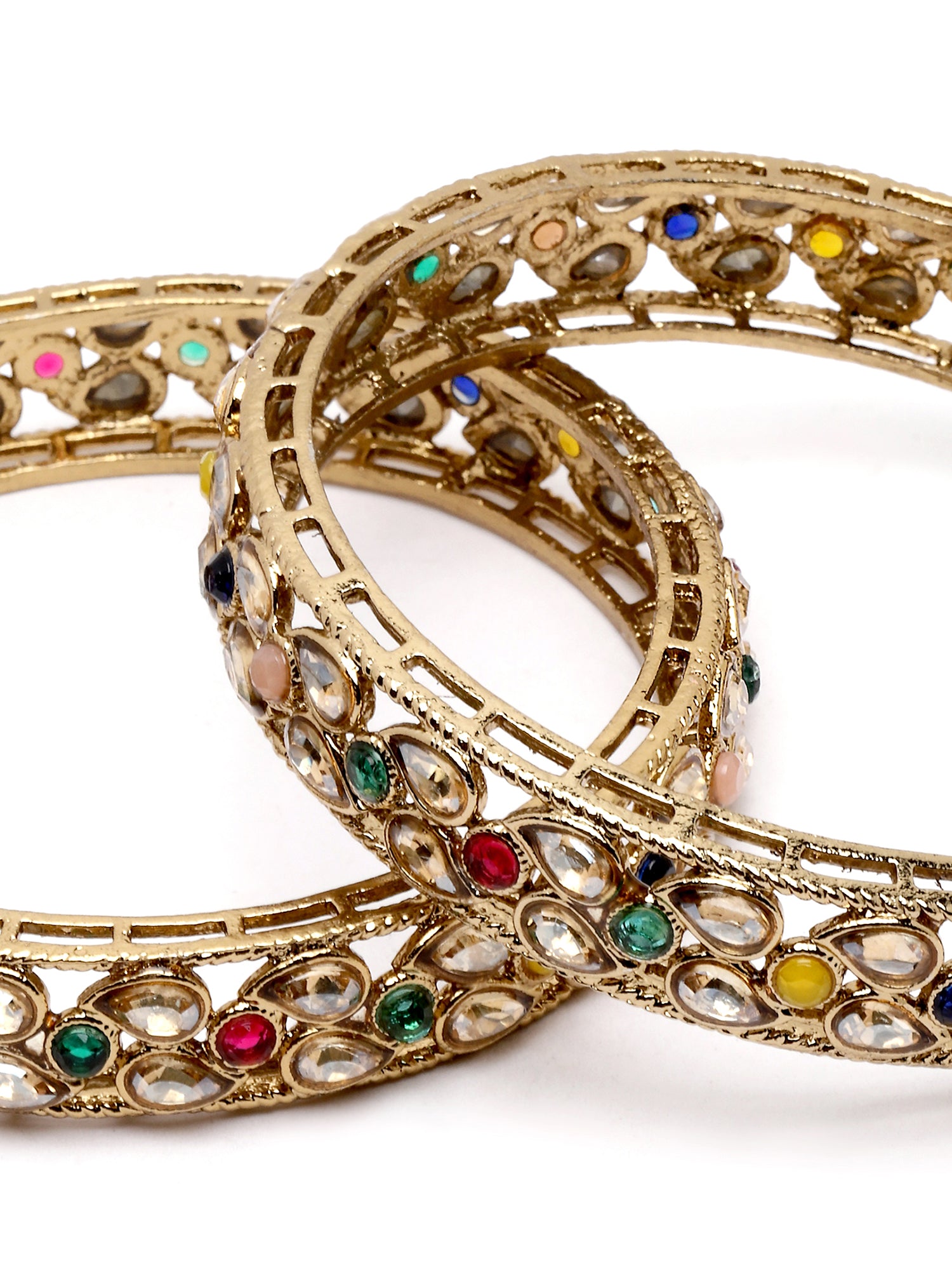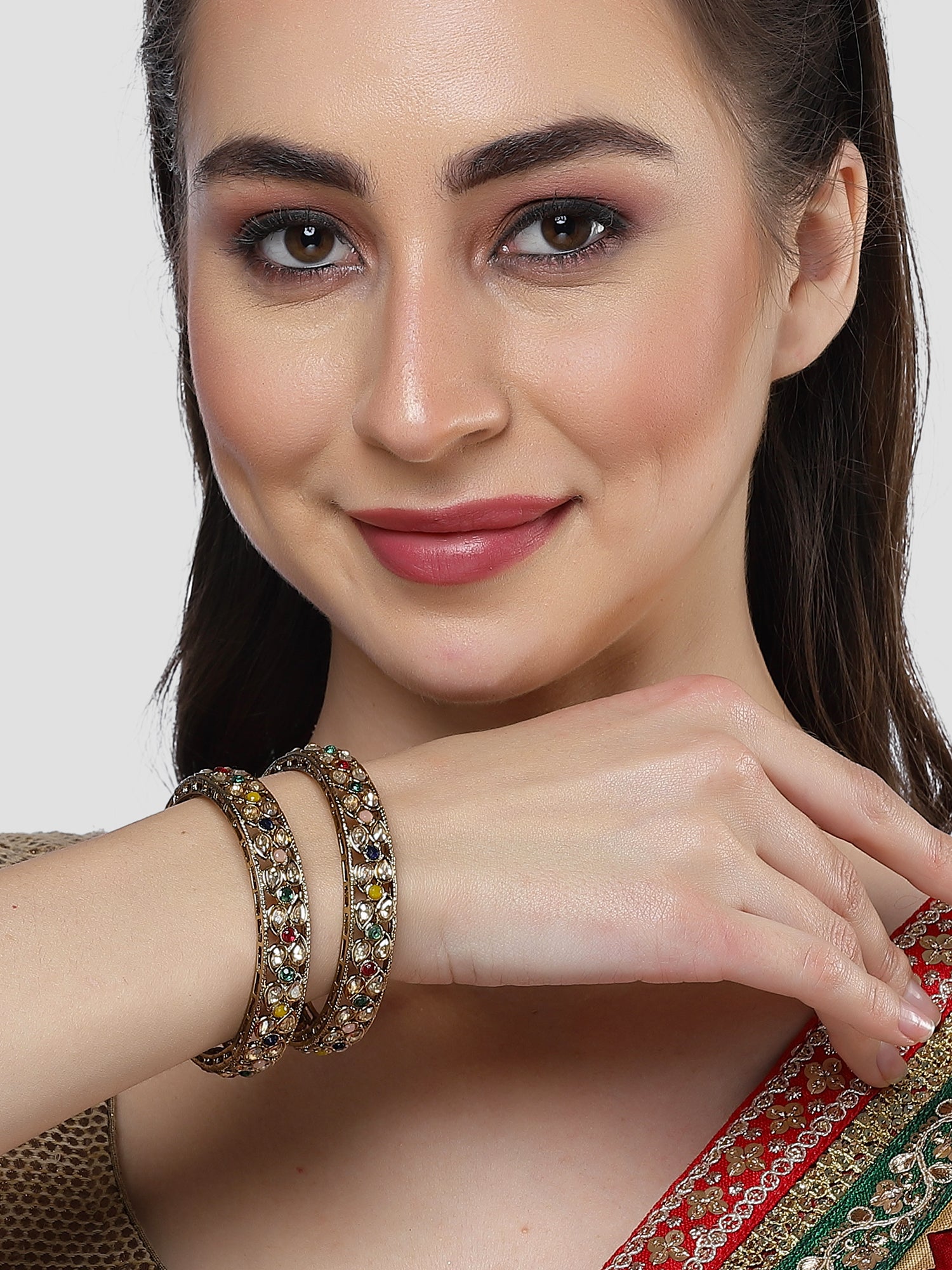 Karatcart Antique Gold Plated Set of 2 Multicolor Kundan Studded Bangles for Women