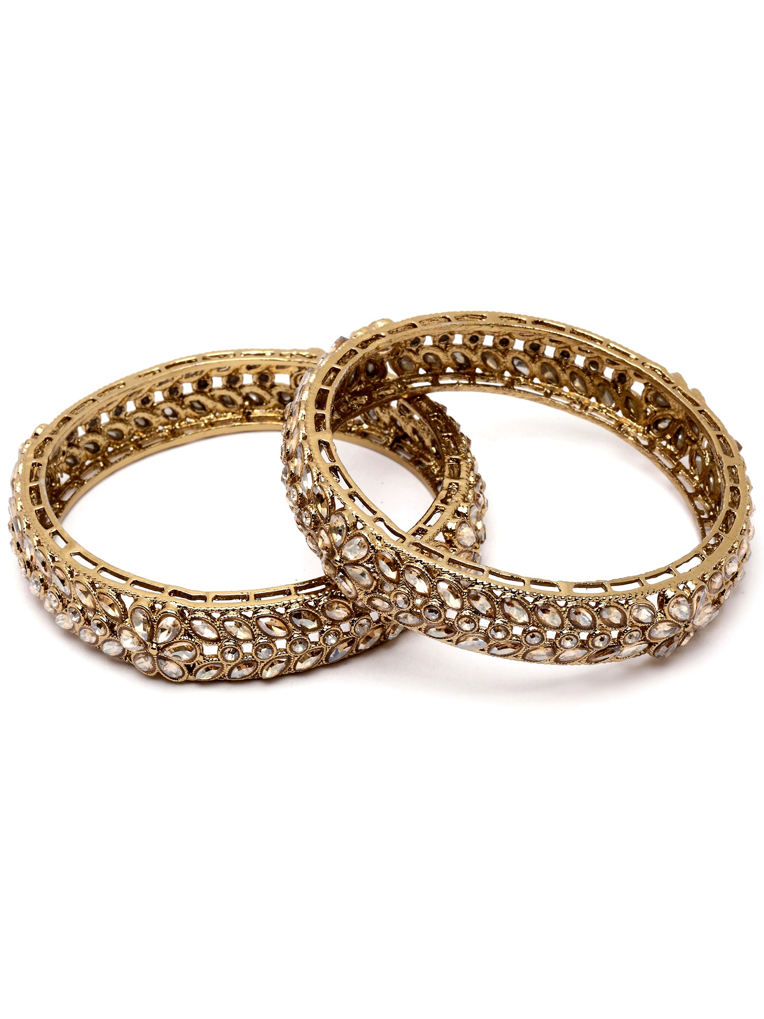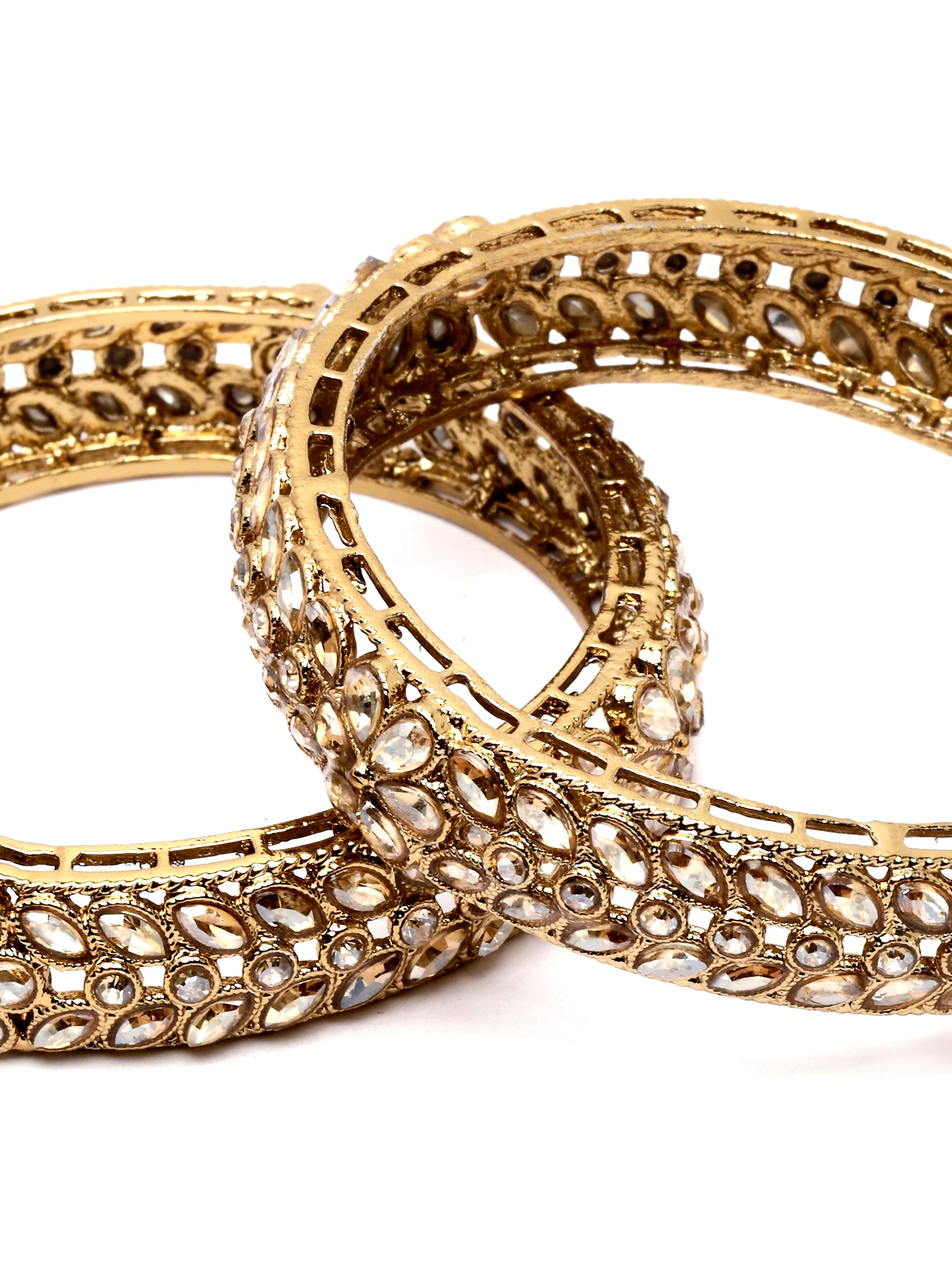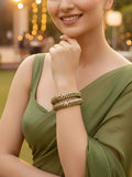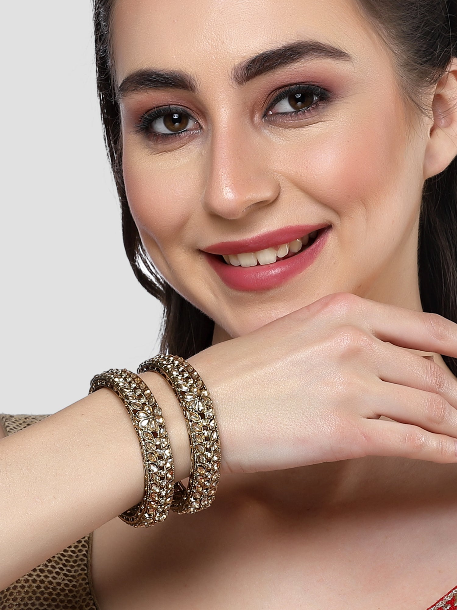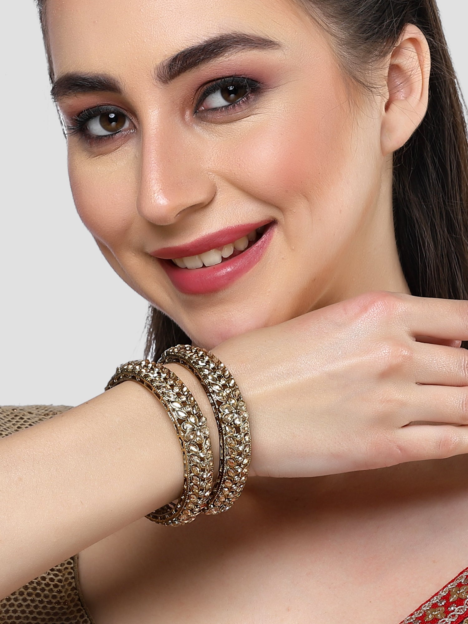 Karatcart Gold Plated Leaf Design Golden Kundan Studded Set of 2 Bangles Set for Women