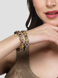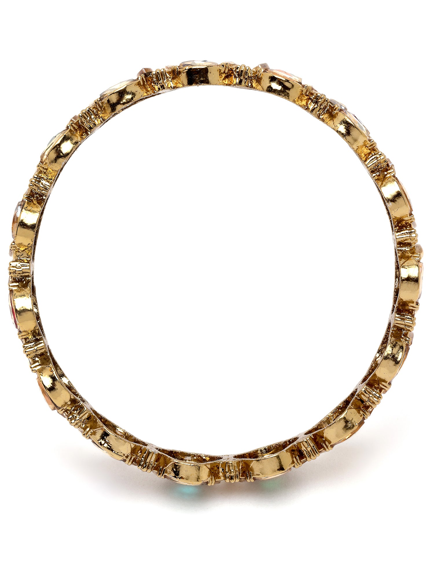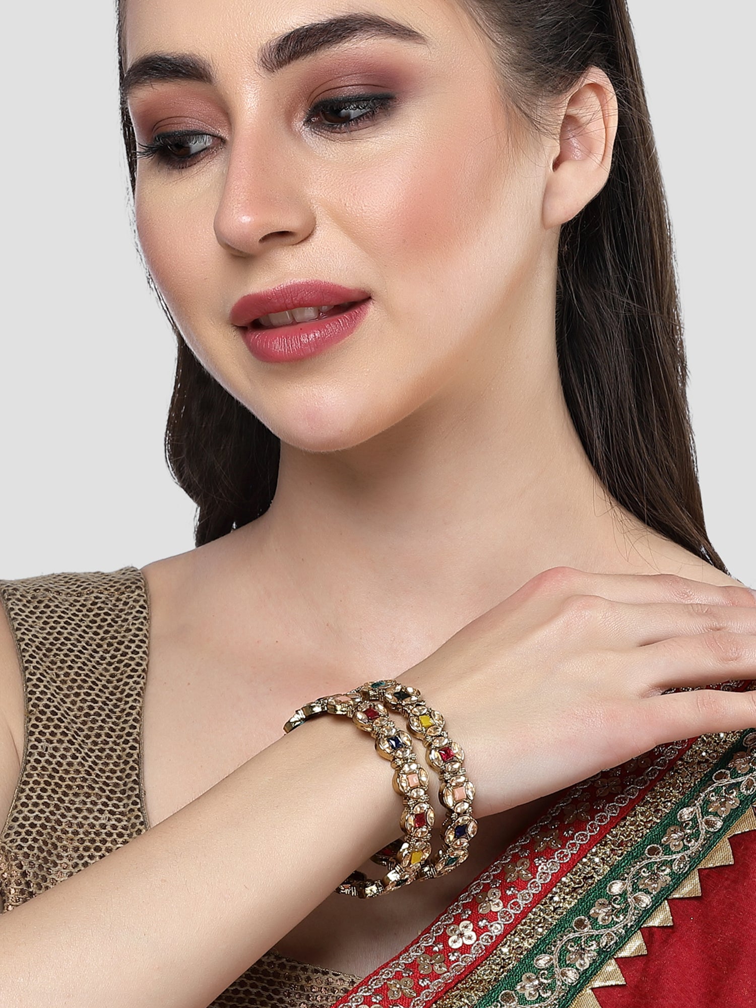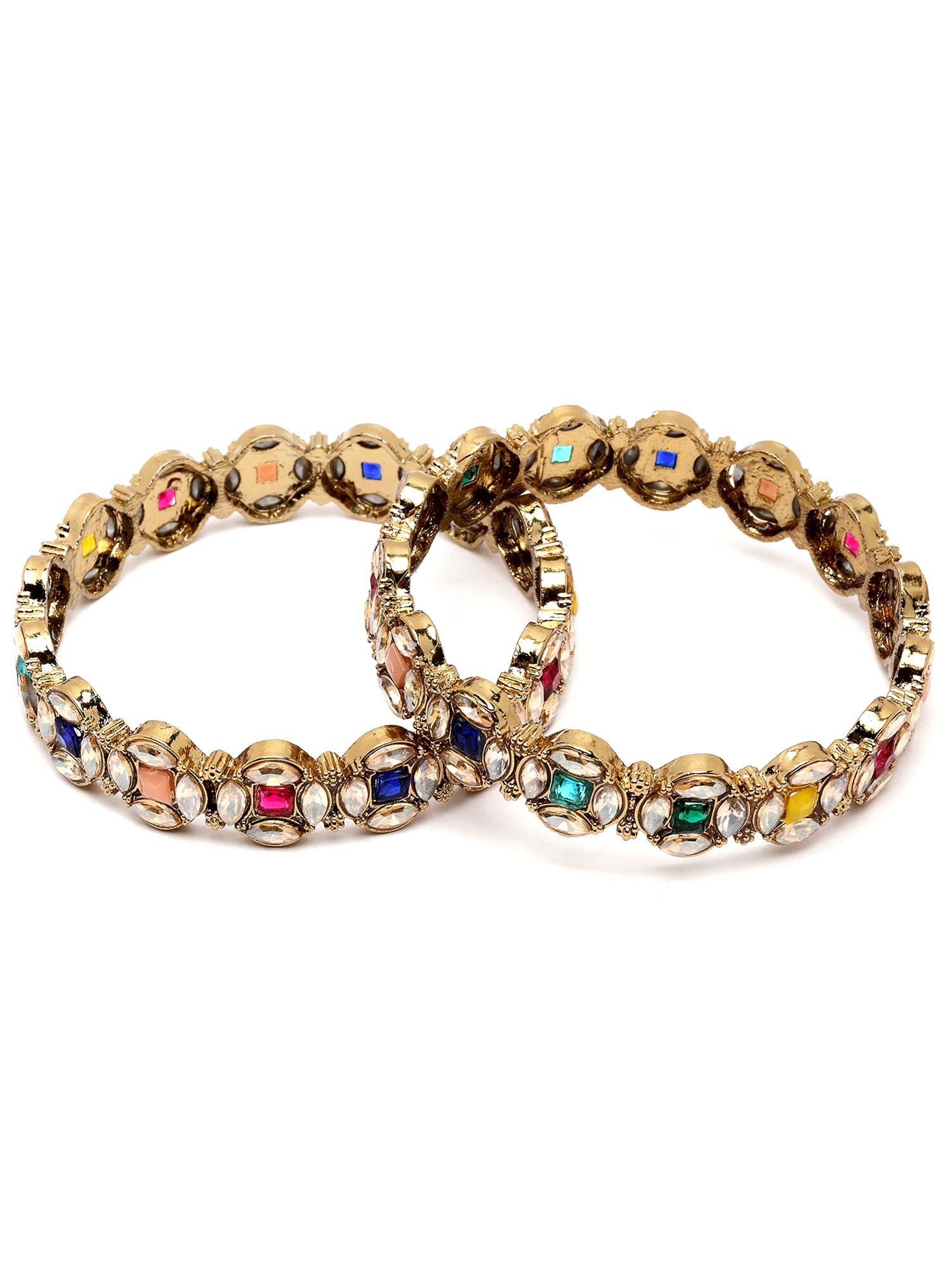 Karatcart Set of 2 Antique Gold Plated Multicolor Kundan Studded Bangles for Women