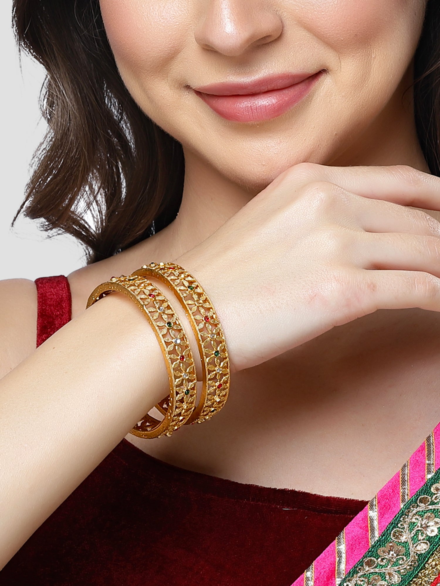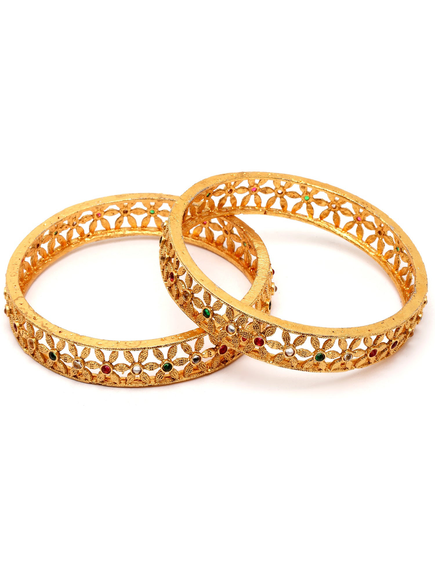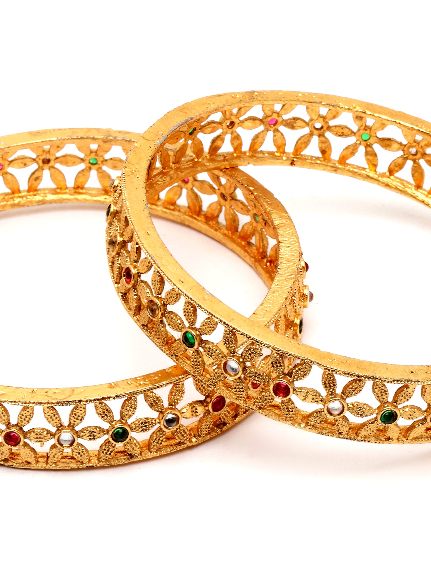 Karatcart Gold Plated Floral Design Multicolor Stone Studded Bangles for Women