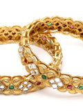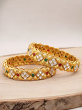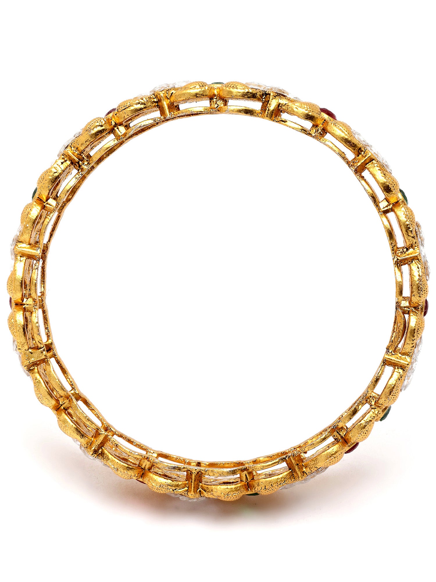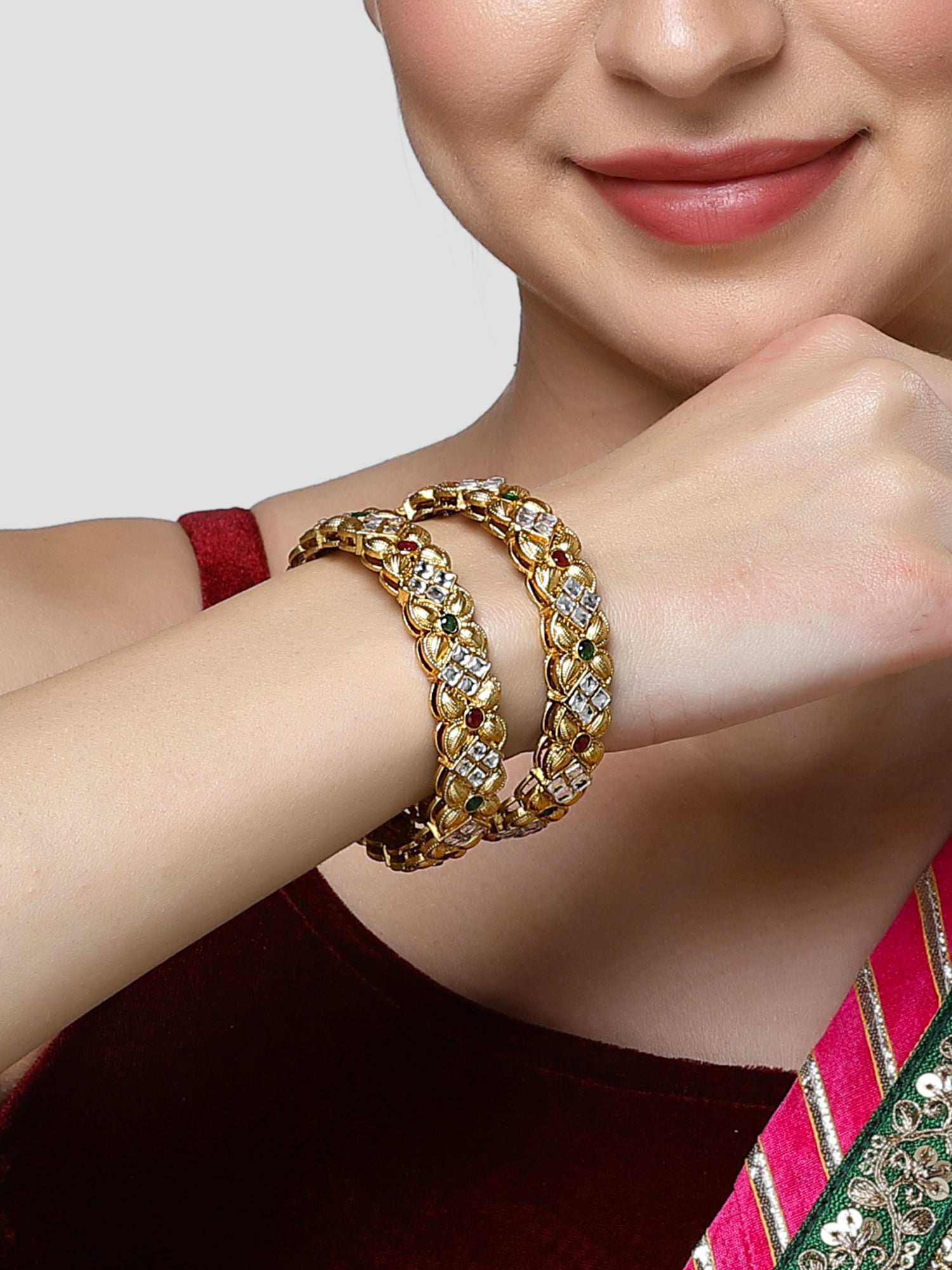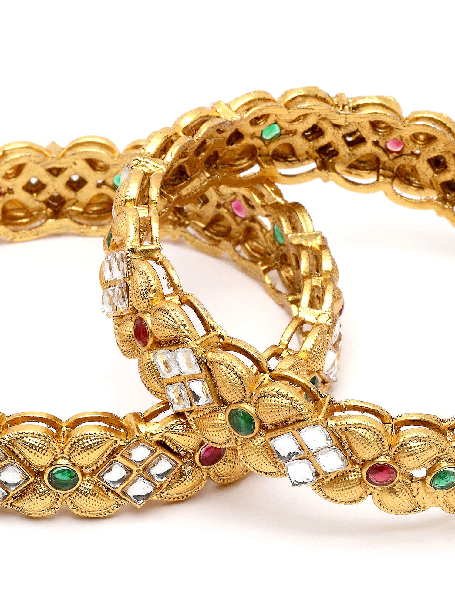 Karatcart Antique Gold Plated Floral Design Multicolor Stone Studded Bangles for Women