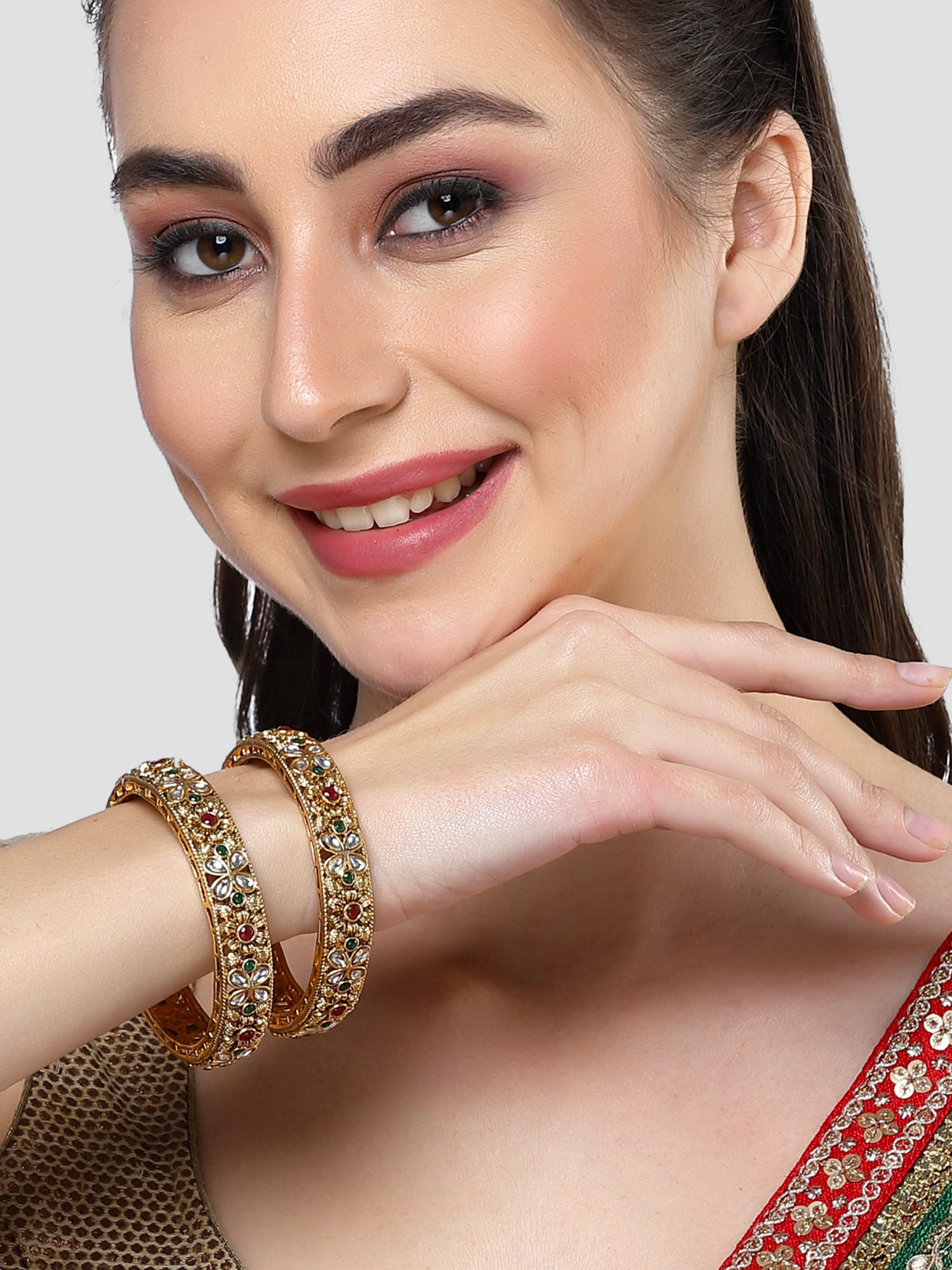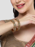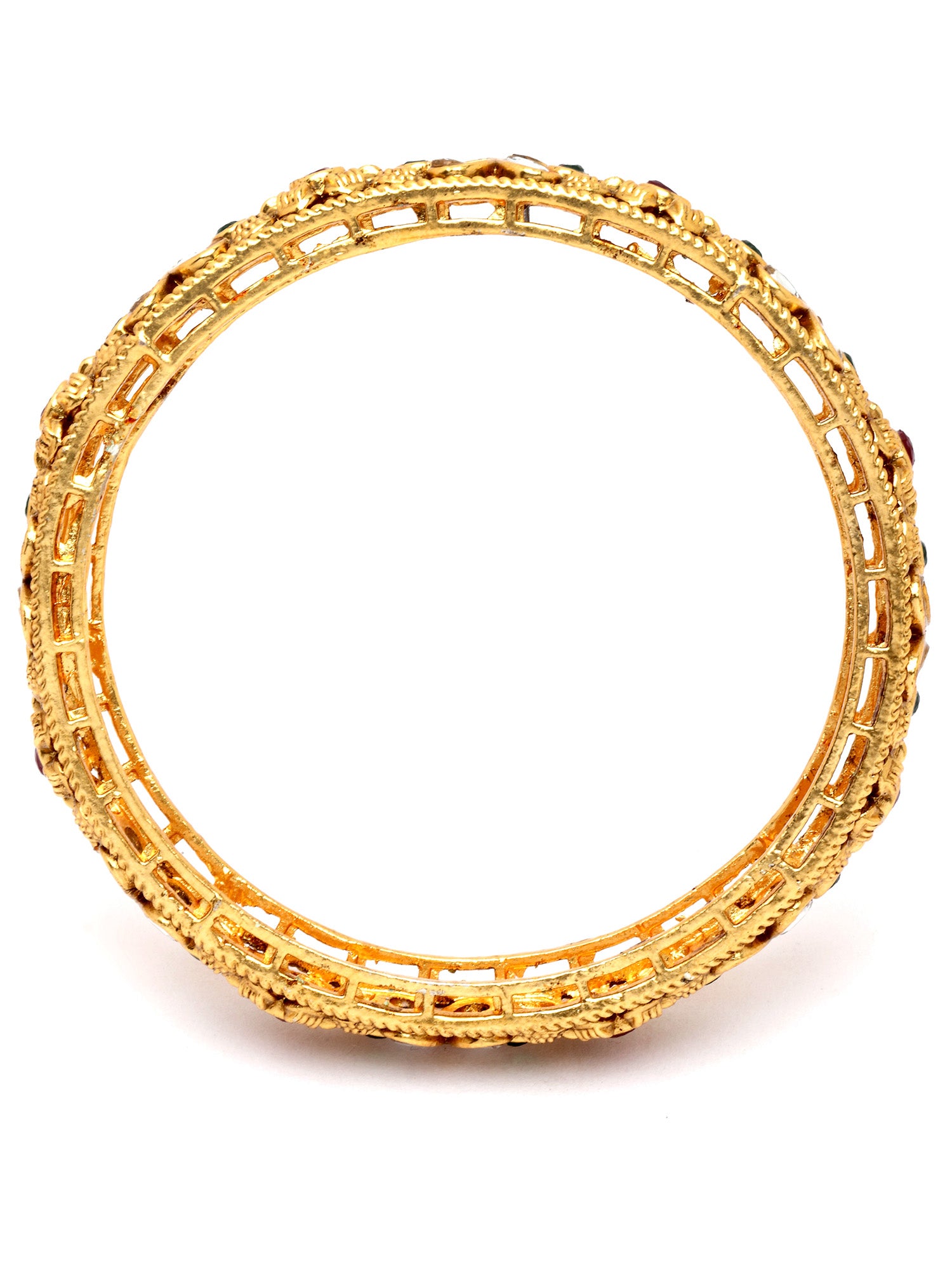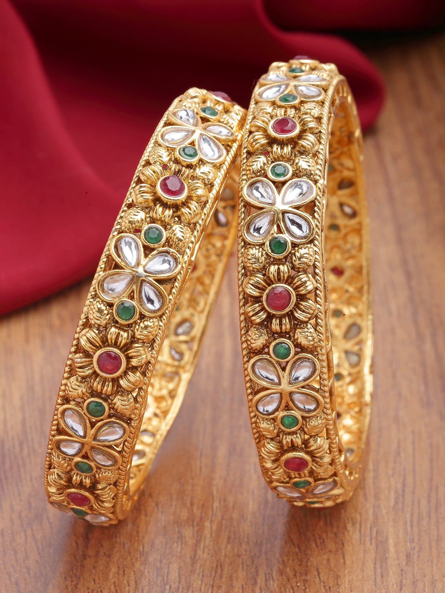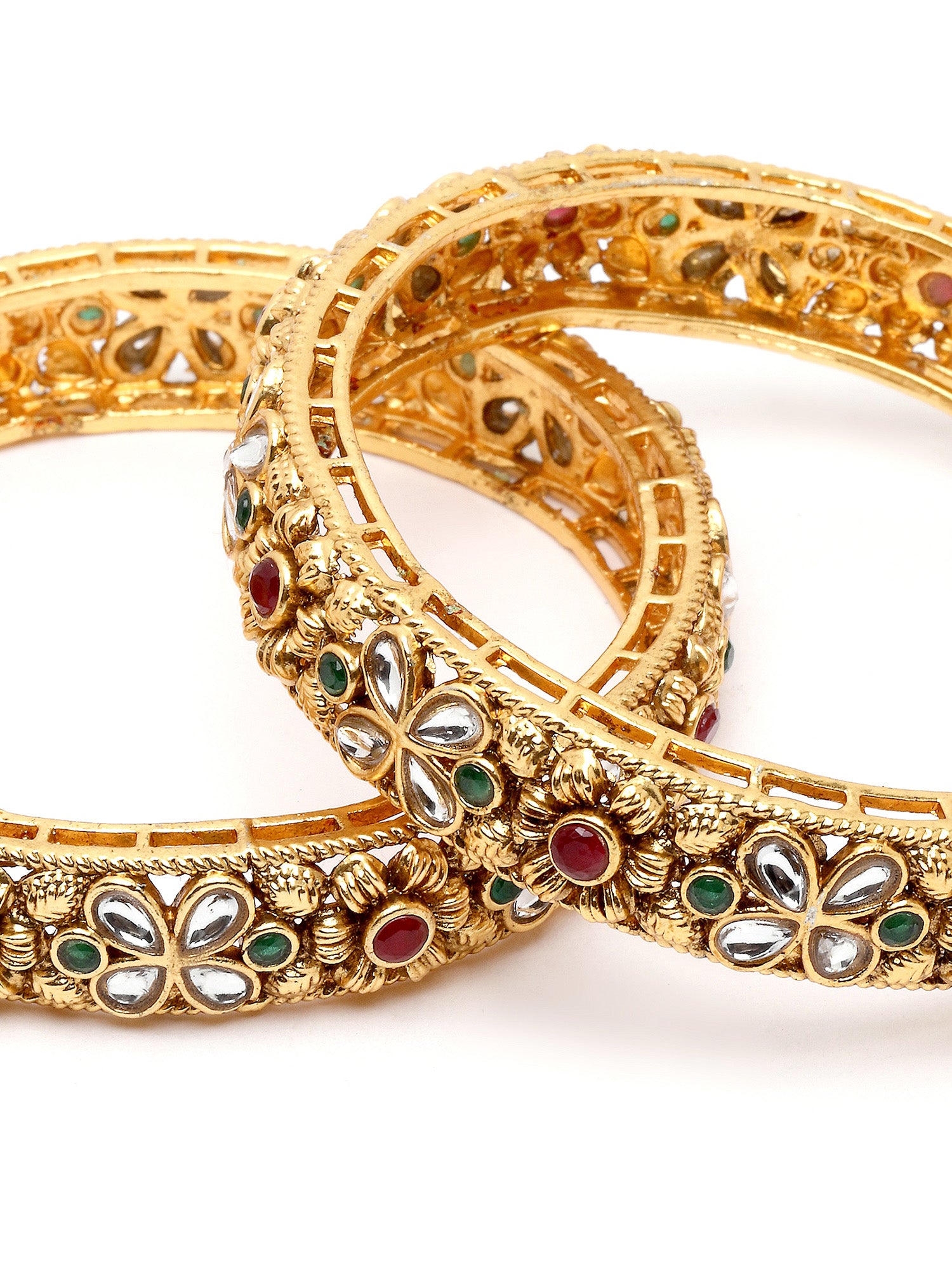 Karatcart Antique Gold Plated Floral Design Red Stone Studded Bangles for Women