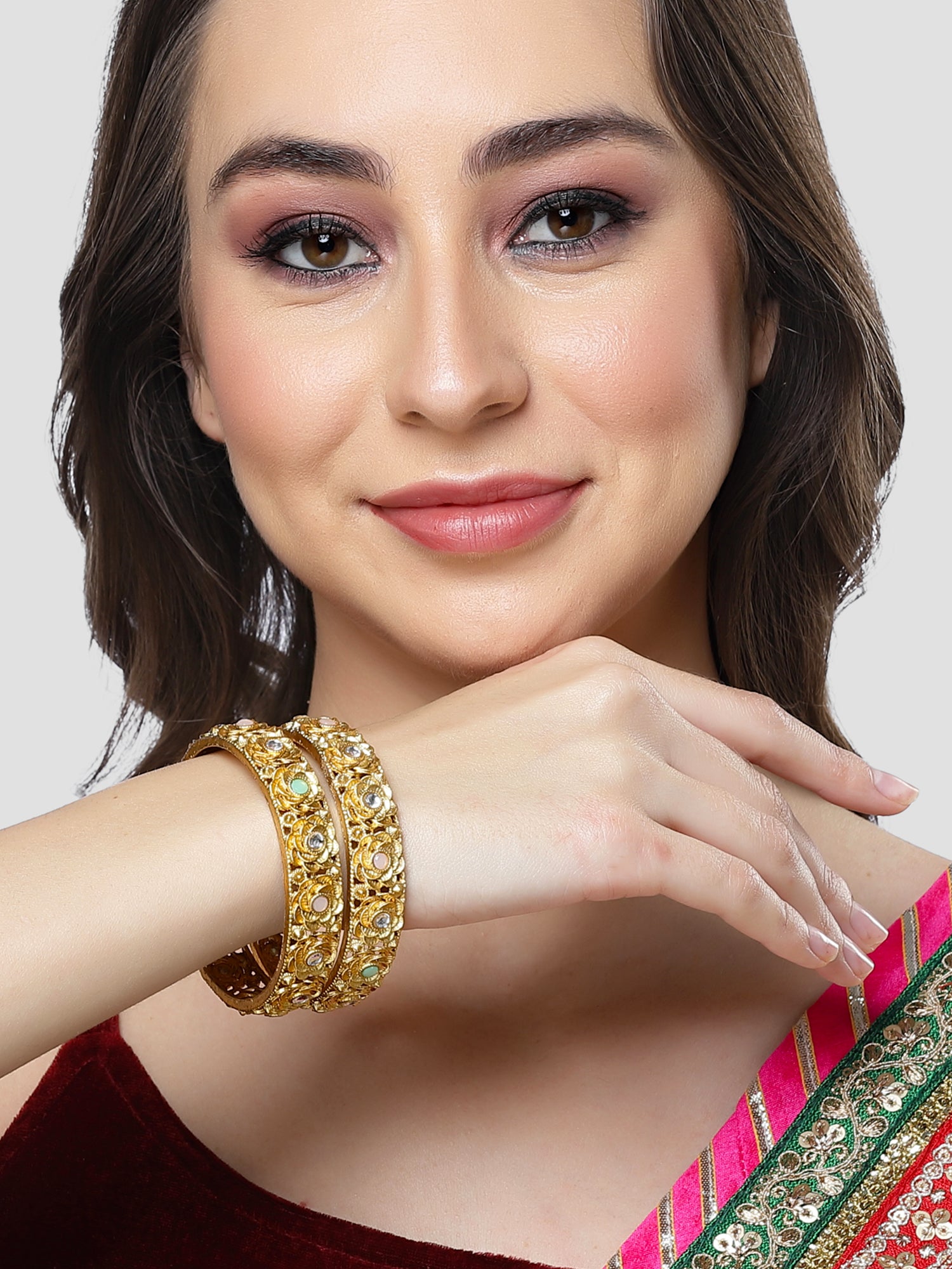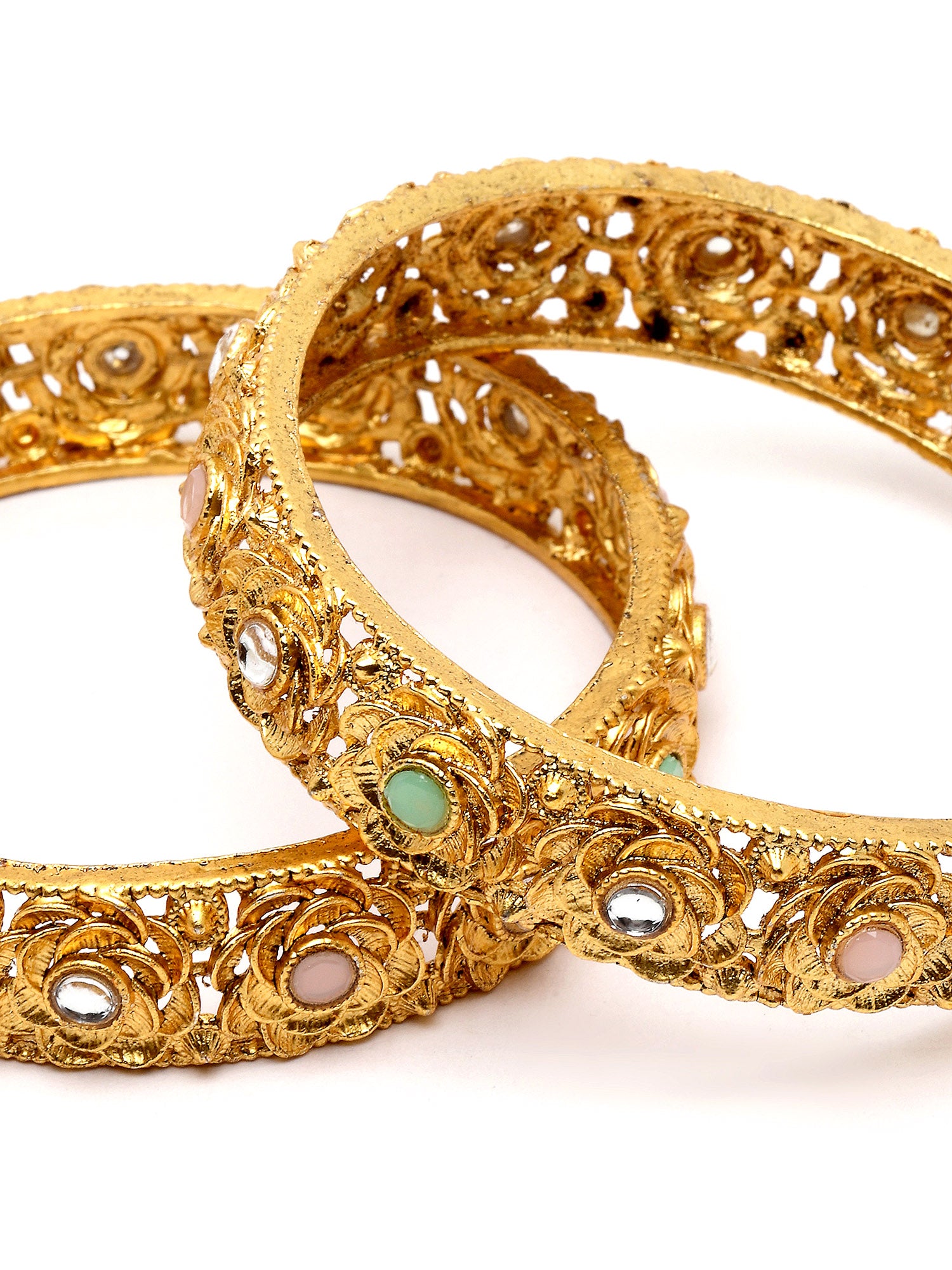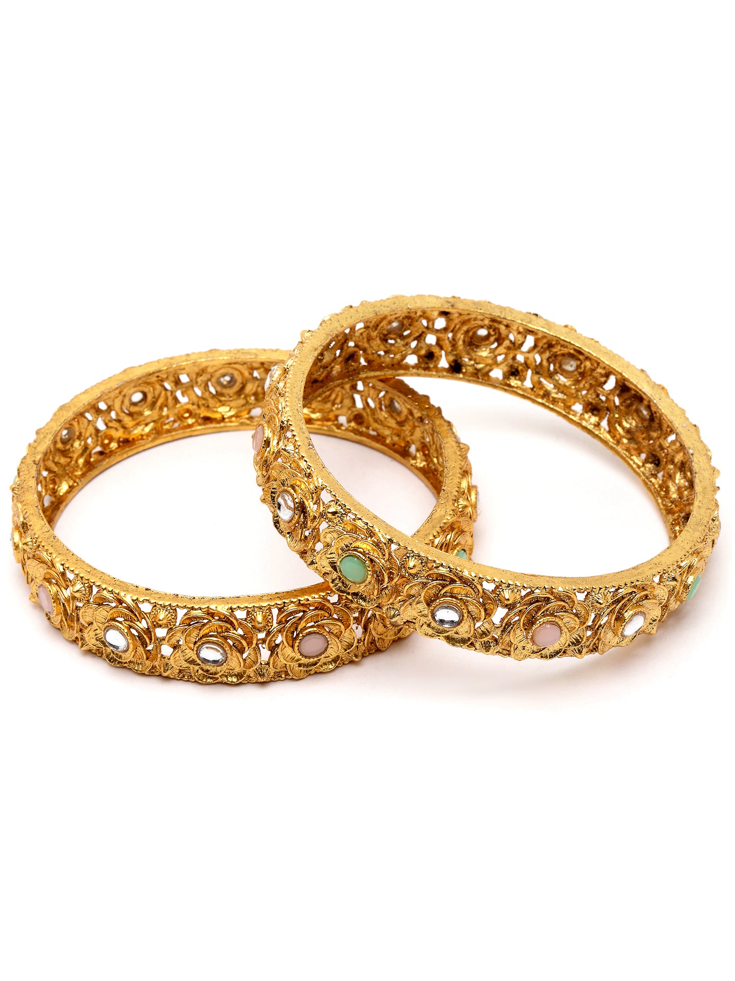 Karatcart Gold Plated Set of 2 Floral Design Multicolor Stone Studded Bangles for Women