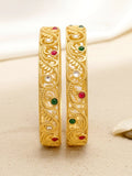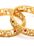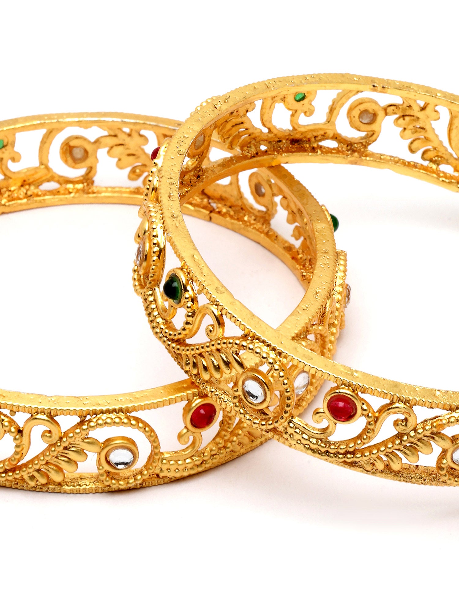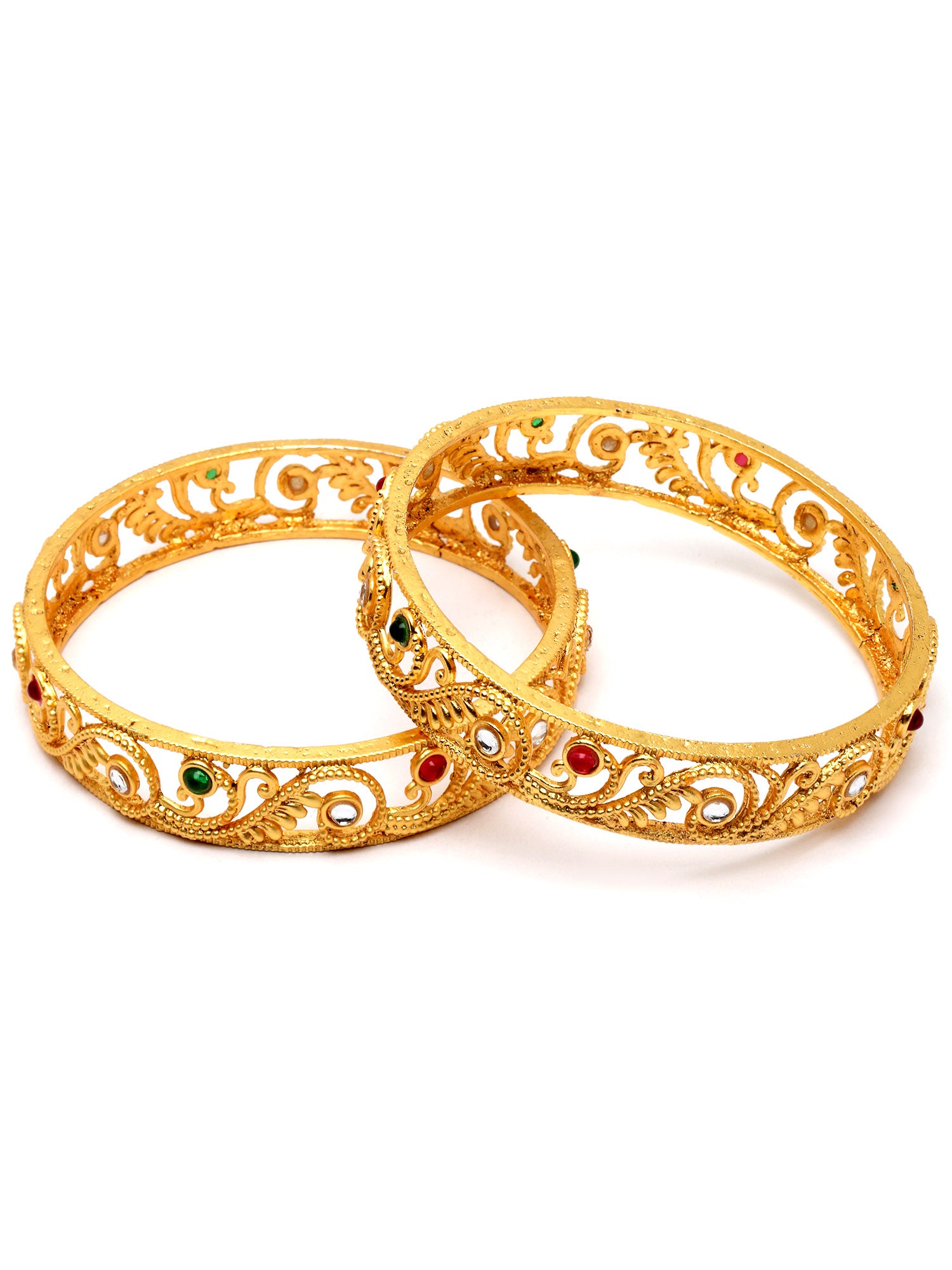 Karatcart Gold Plated Set of 2 Swirl Design Multicolor Stone Studded Bangles for Women
