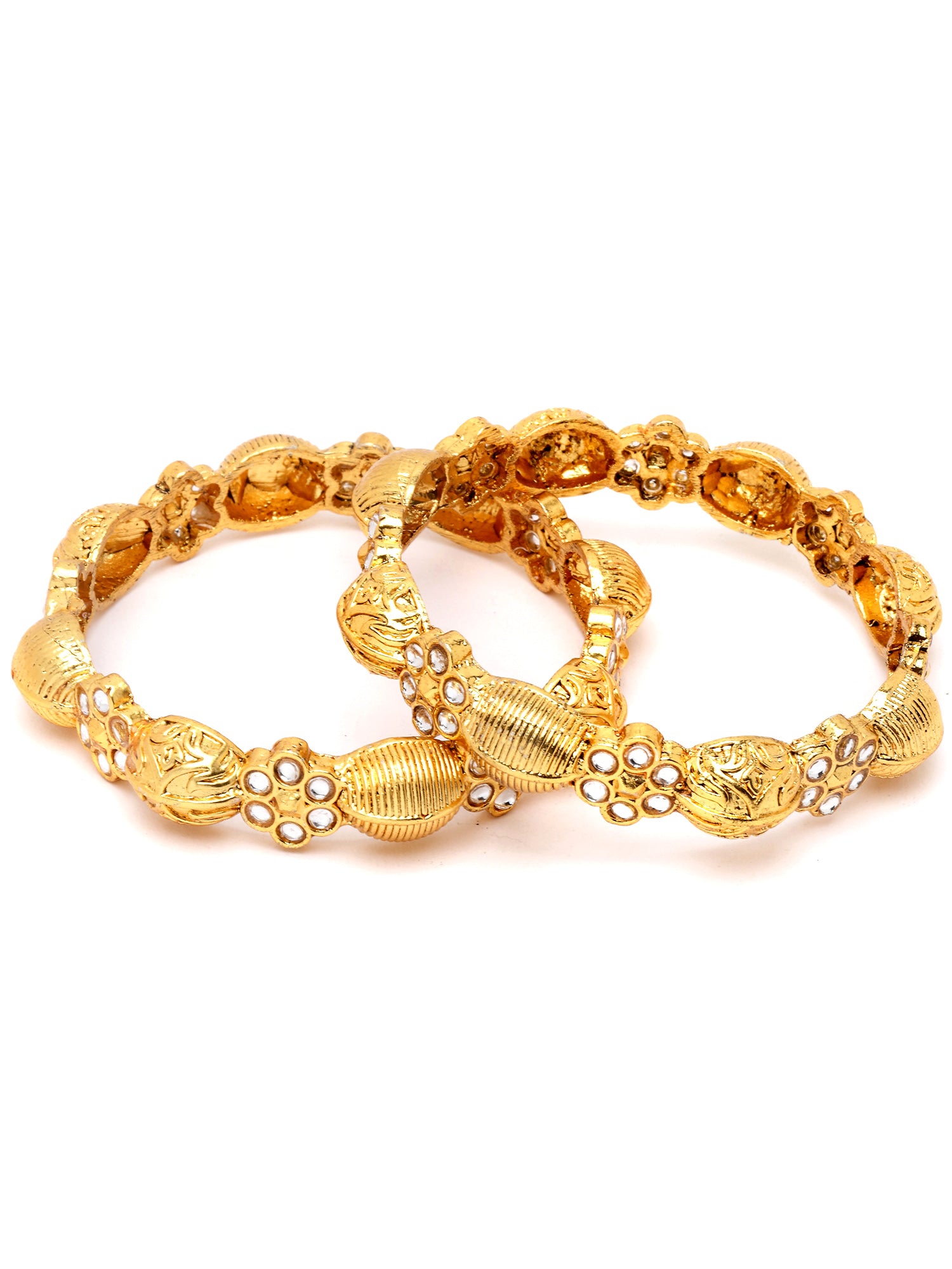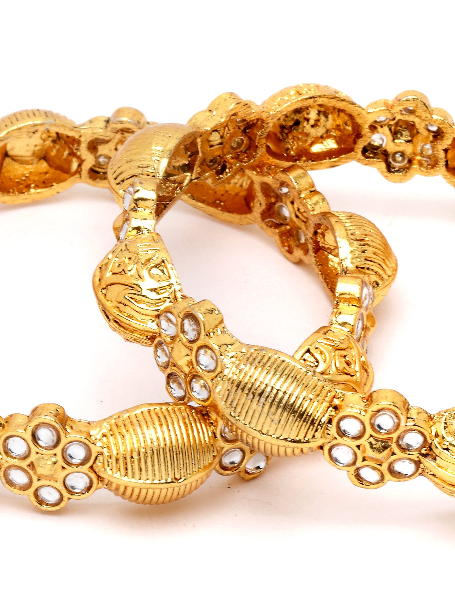 Karatcart Gold Plated Set of 2 Kundan Temple Bangles for Women