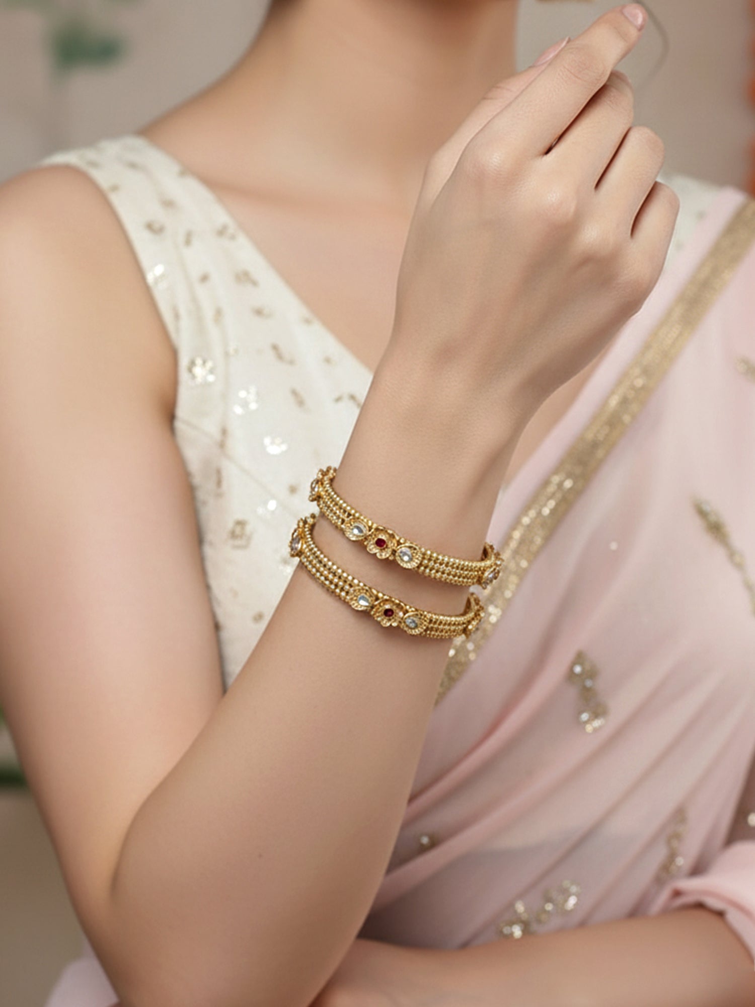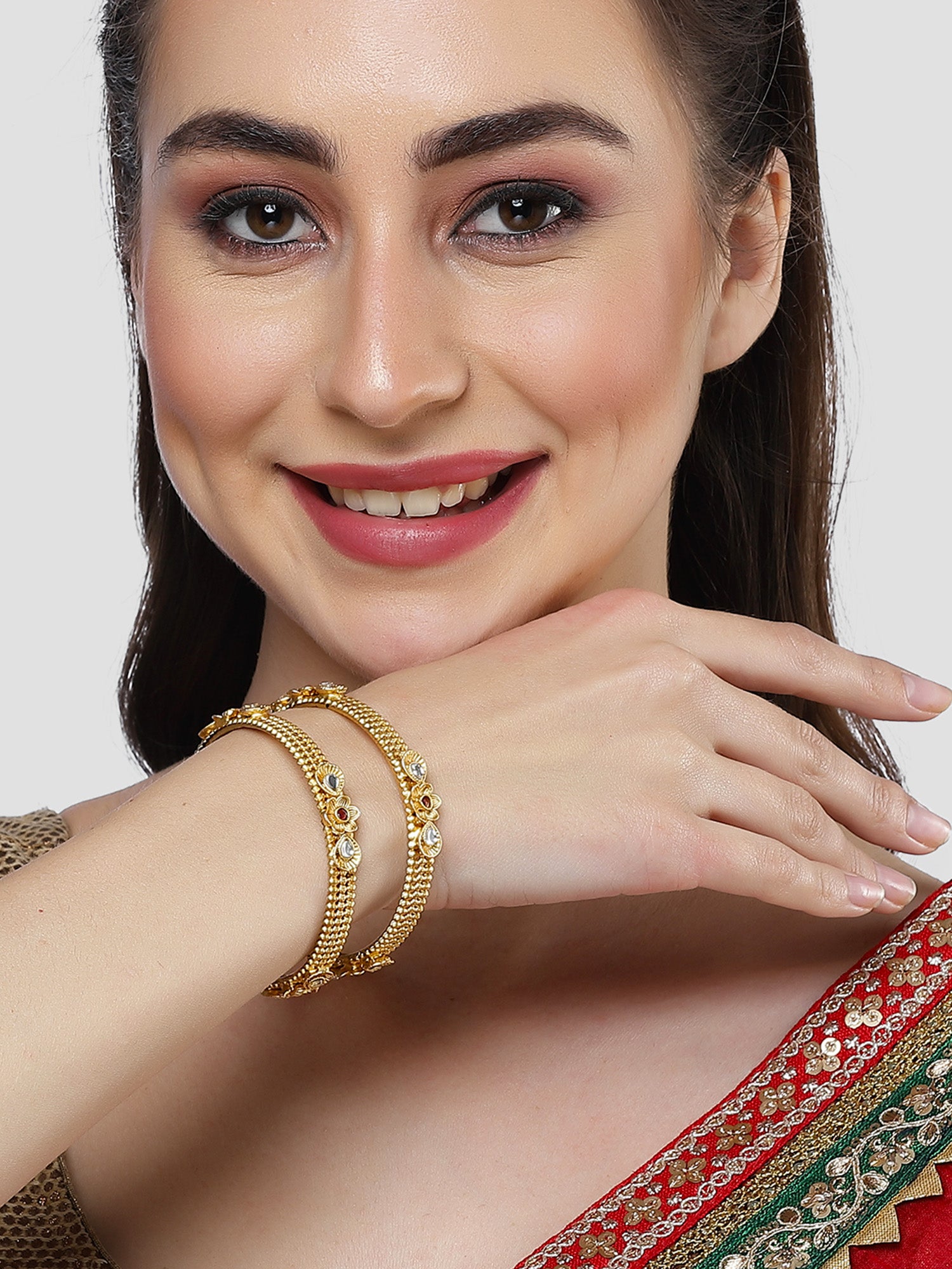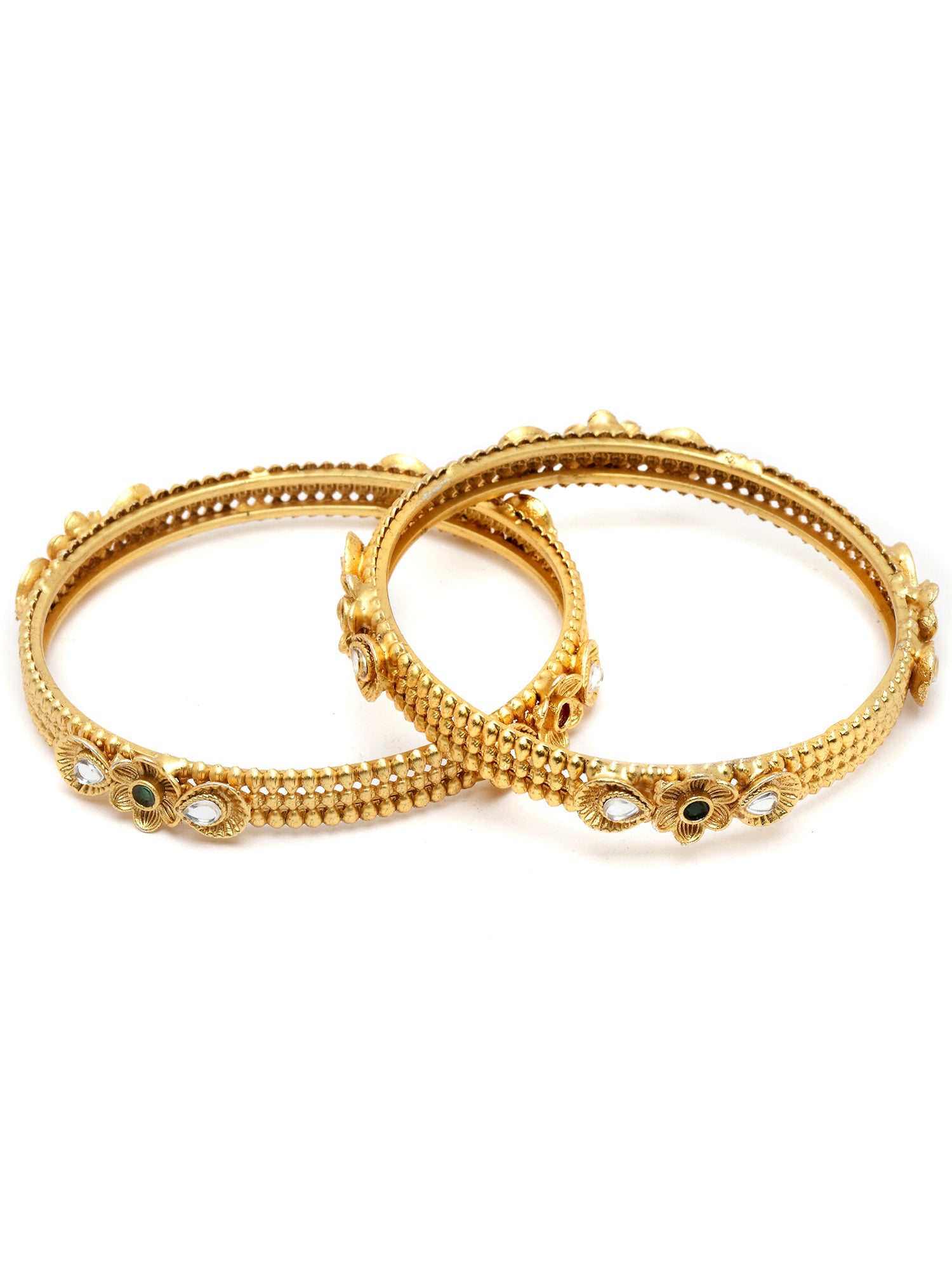 Karatcart Gold Plated Set of 2 Floral Design Bangles Set for Women