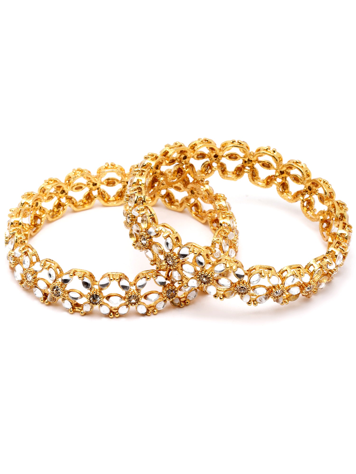 Karatcart Set of 2 Gold Plated Floral Design Bangles Set for Women